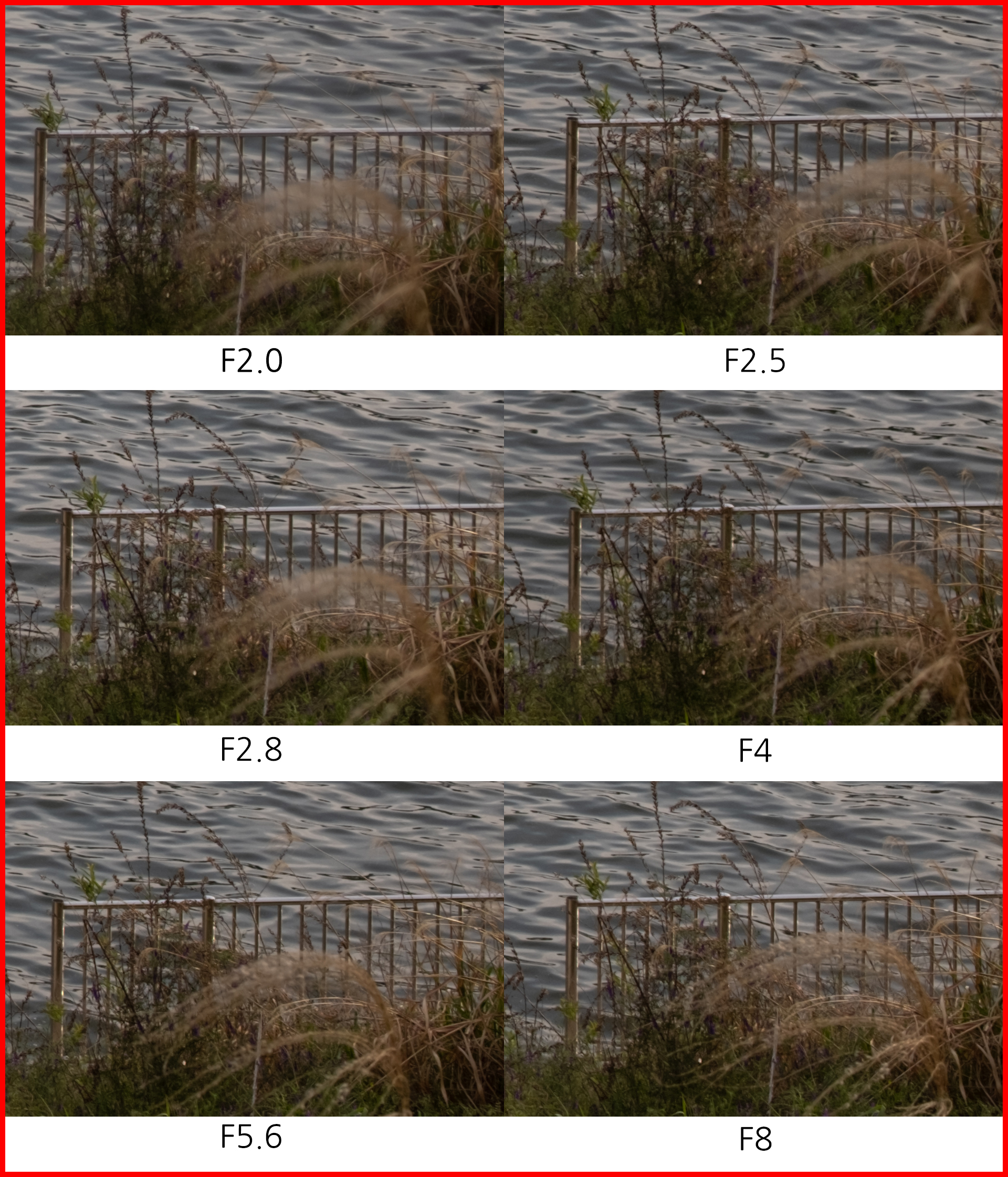 아래는 조리개 값에 따른 결과물의 차이를 비교한 것입니다.
