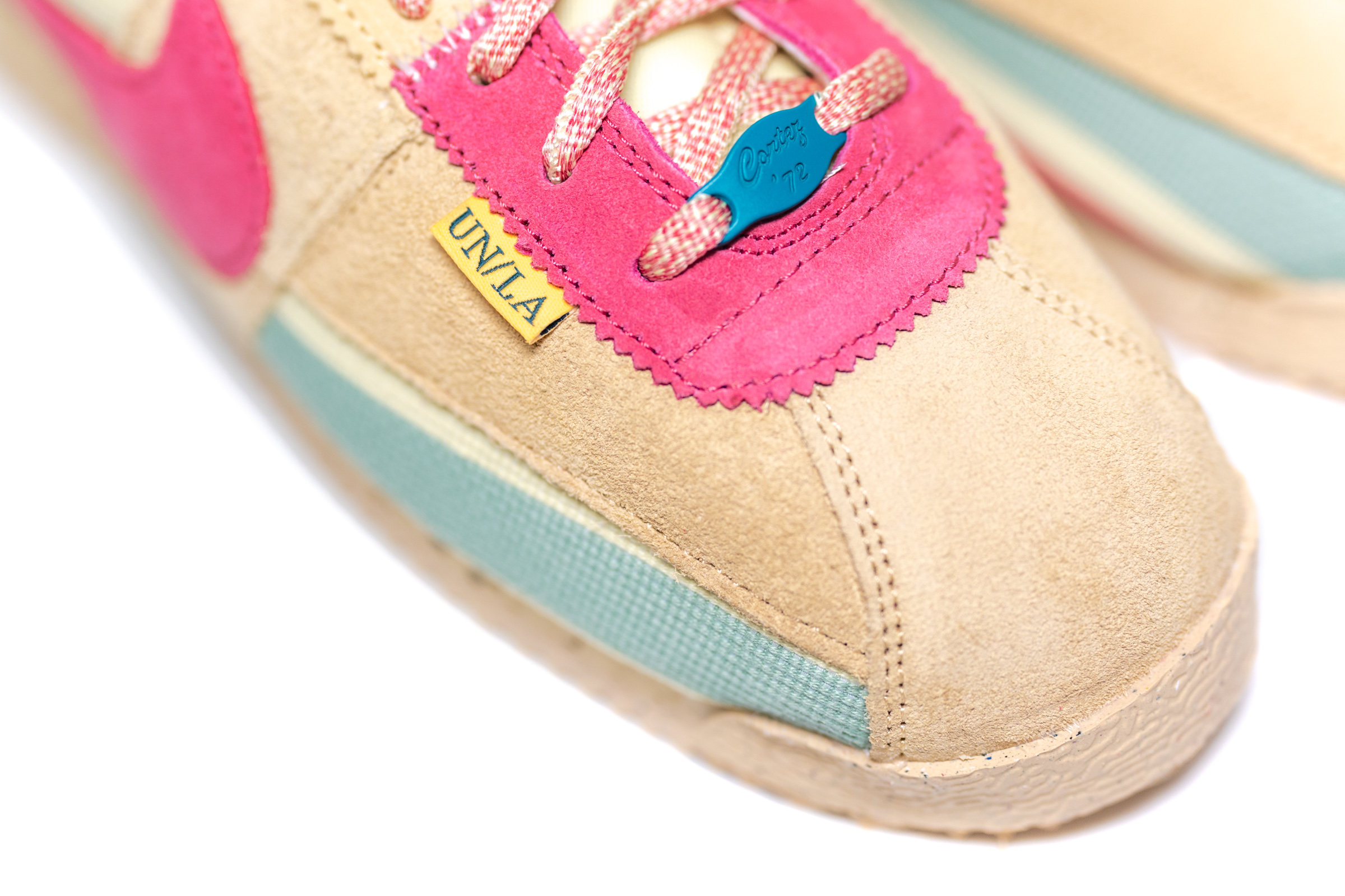 베이지색과 핫핑크 그리고 하늘색. 세 가지 컬러로 이뤄져 있습니다. 파츠를 잘게 쪼갰지만 웬만한 사람이면 코르테즈라는 것을 알아차릴 수 있을만큼 그 형태를 잘 구현했습니다. 밑창까지 전체적으로 베이지색이 많은 부분을 차지해 빈티지한 인상을 풍깁니다. 핑크색과 하늘색 역시 빛바랜 느낌이고요.