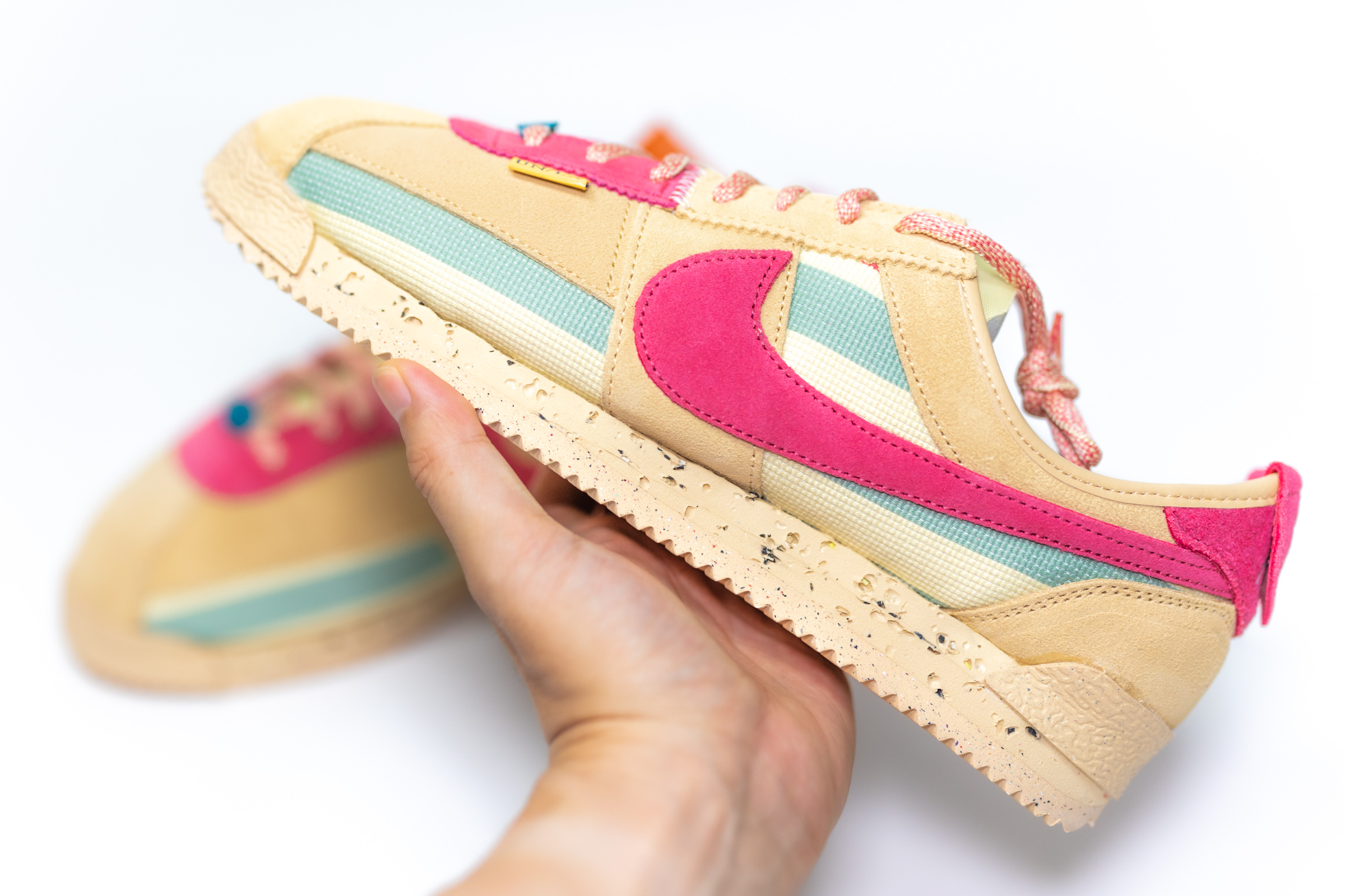 20년 전쯤 유행했었죠. 특히나 교복에 코르테즈를 신은 여학생들이 많았던 것으로 기억합니다. 동글동글 귀여운 실루엣 때문이겠죠. 나이키 X 유니온 조던 1이 큰 인기를 끈 이후 둘의 협업은 늘 주목을 받습니다. 조던 4, 덩크, 최근에 조던 2 정도가 기억에 남네요. 이번엔 철지난 코르테즈를 가지고 와서 좀 의외긴 합니다.