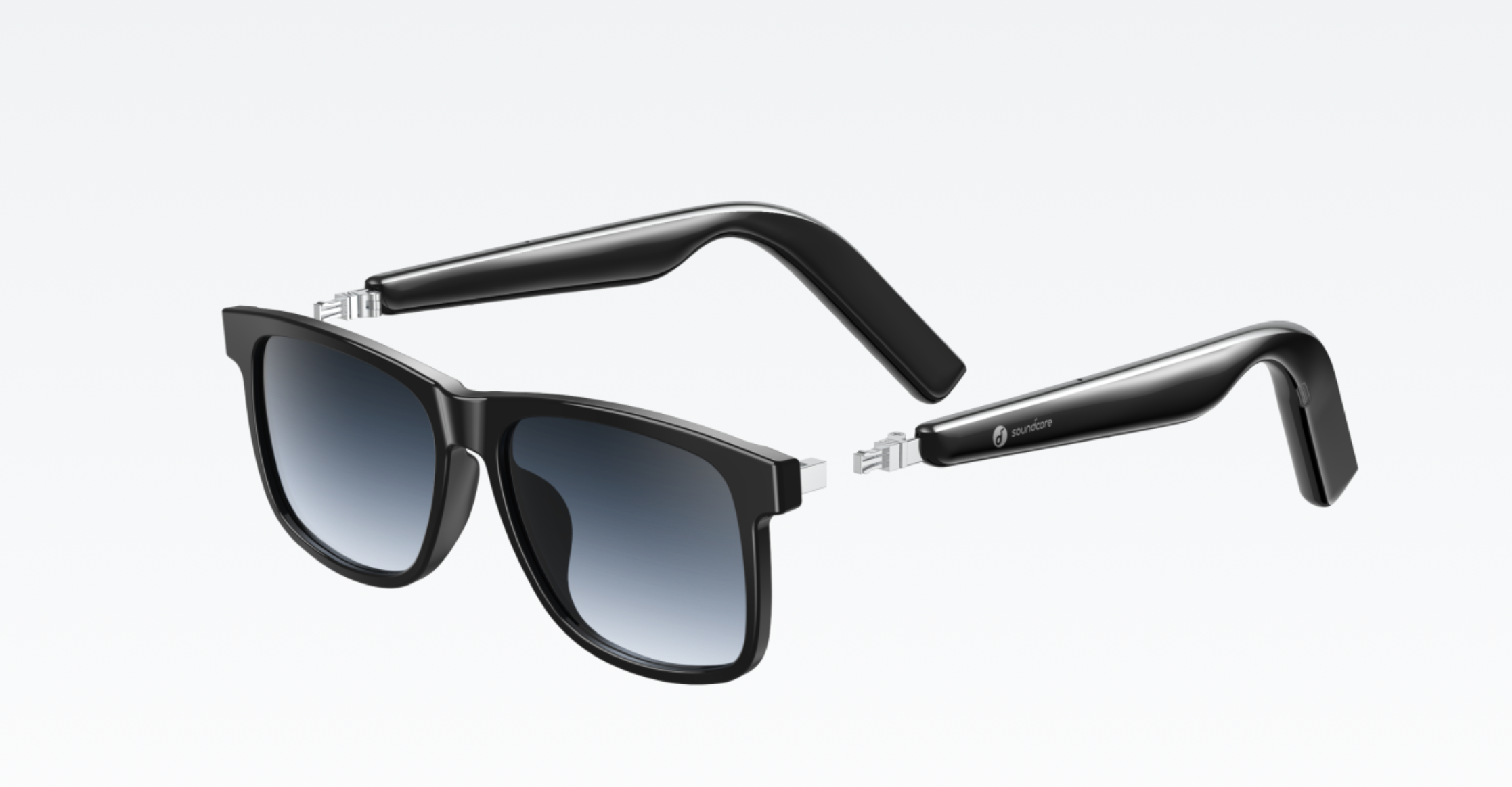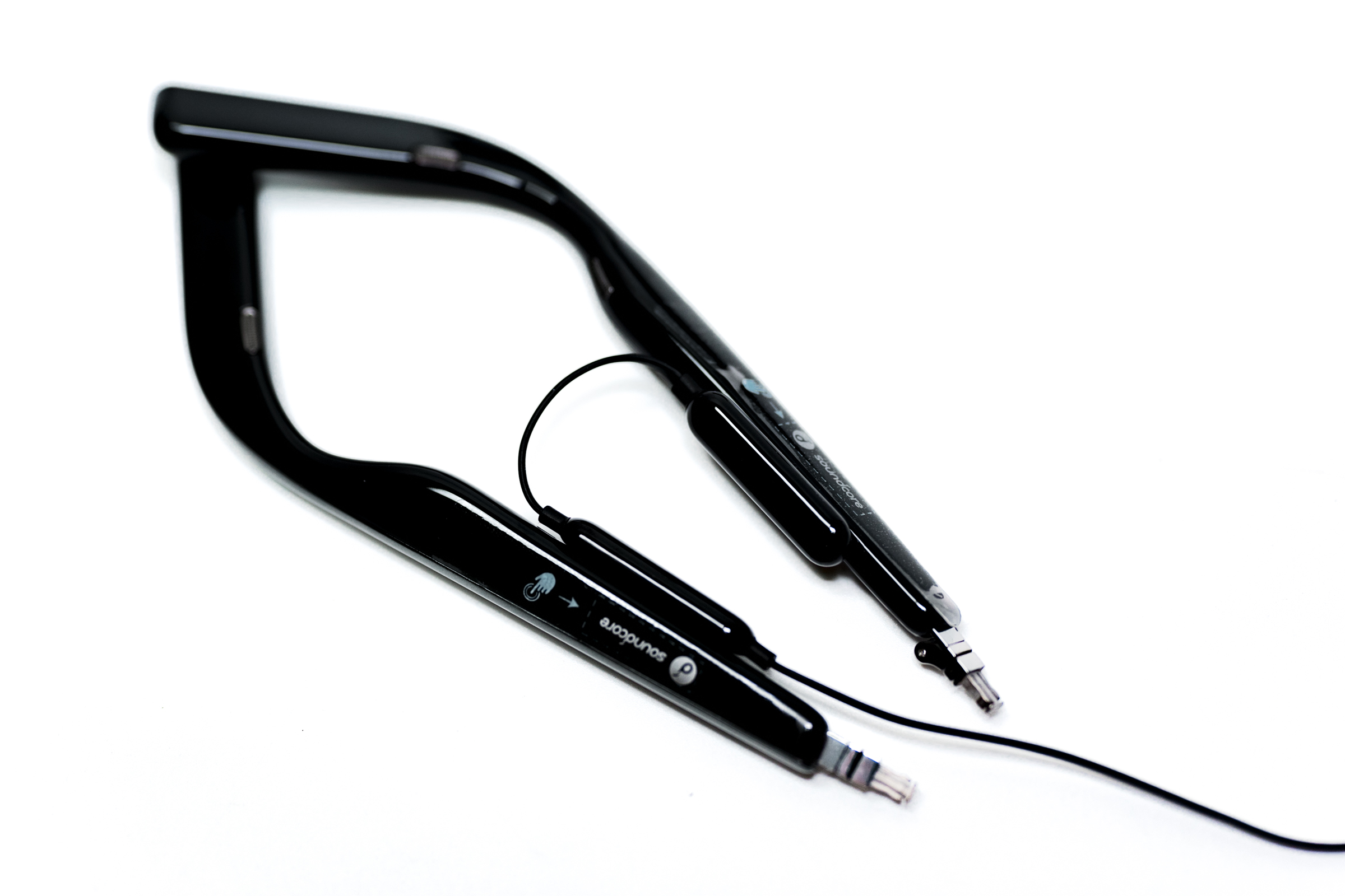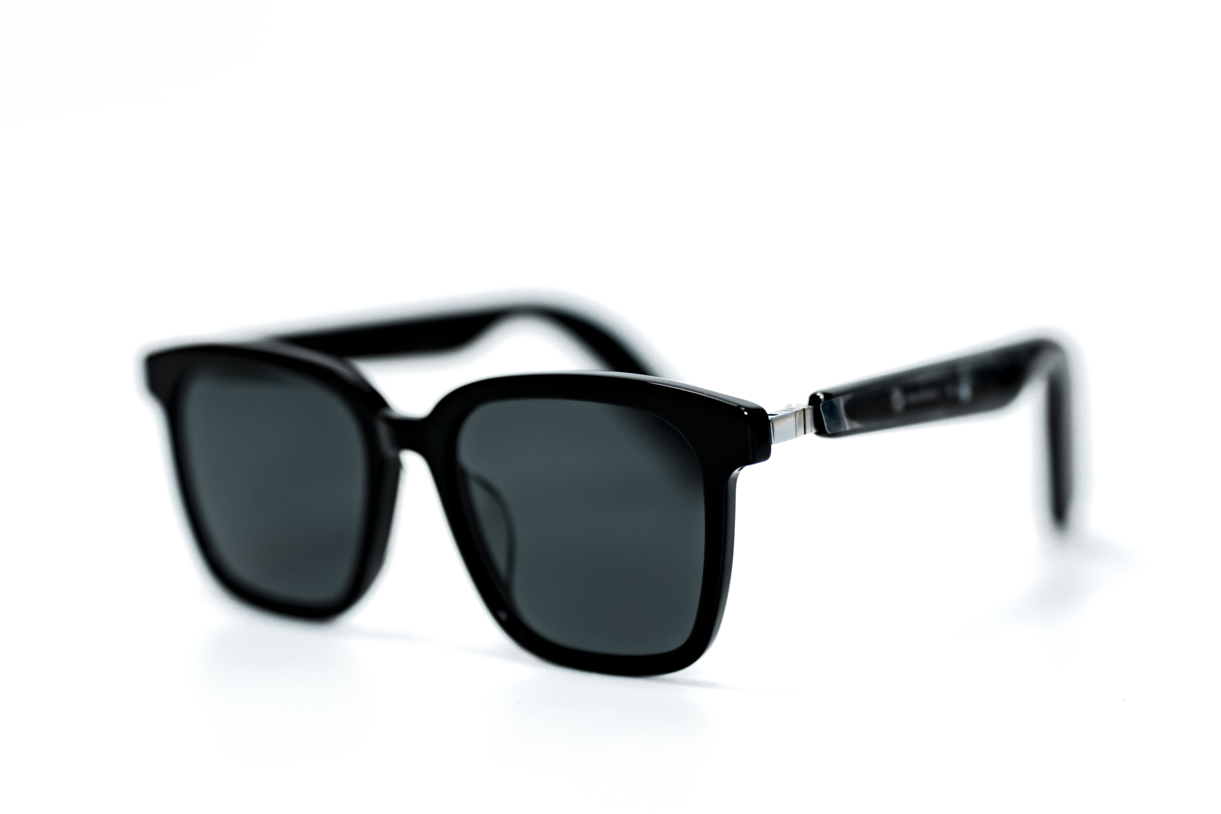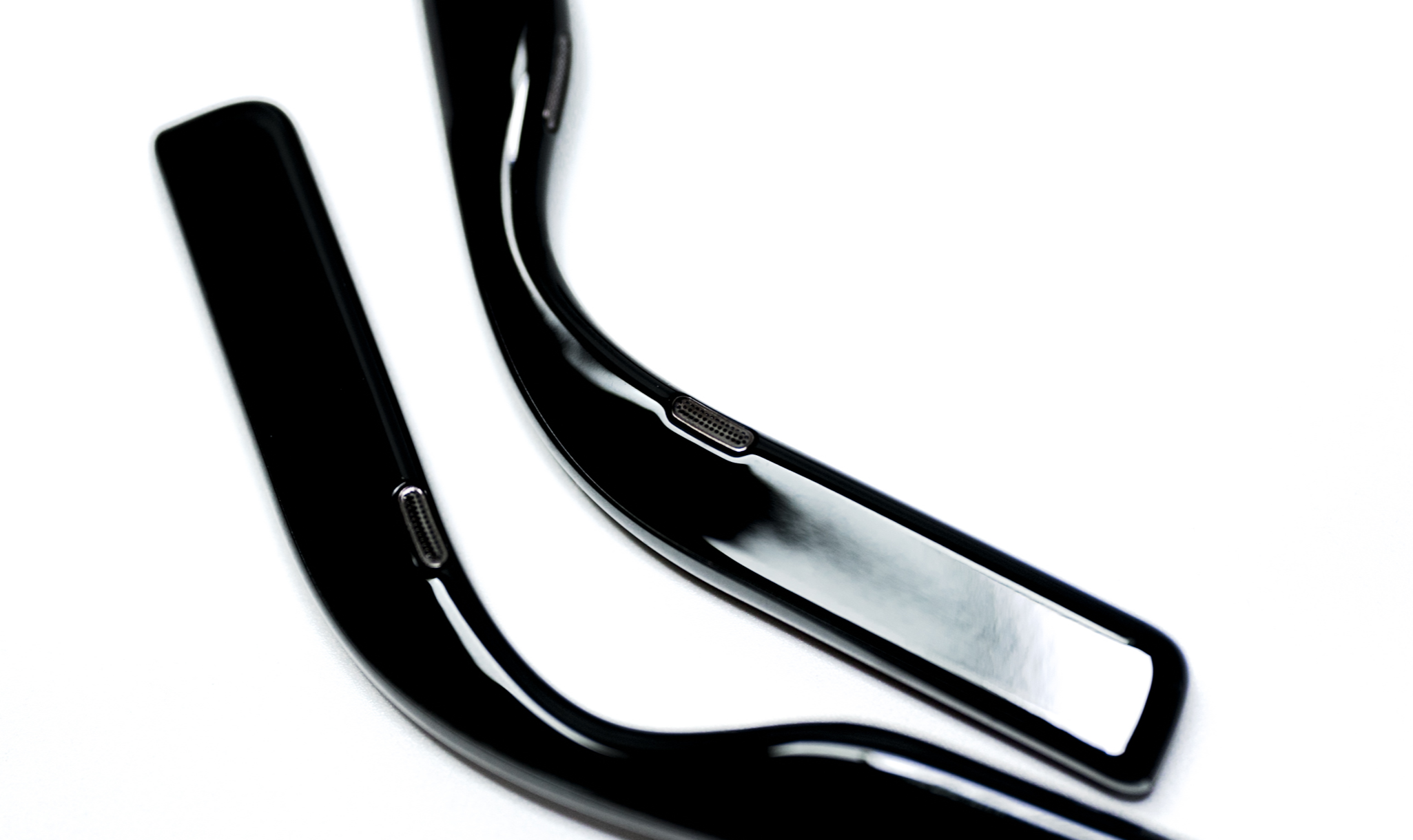 사운드코어 프레임의 본체는 바로 이 두 개의 안경 다리입니다. 부러진 뿔테 안경의 다리 같지만 이 안에 네 개의 스피커, 무선 통신 모듈, 배터리 등이 탑재돼 있습니다. 타사의 초창기 오디오+선글라스 제품들은 본체의 부피와 무게가 일반적인 안경에 비해 부담스러웠는데 이 정도면 큰 이질감 없이 착용할 수 있겠습니다.