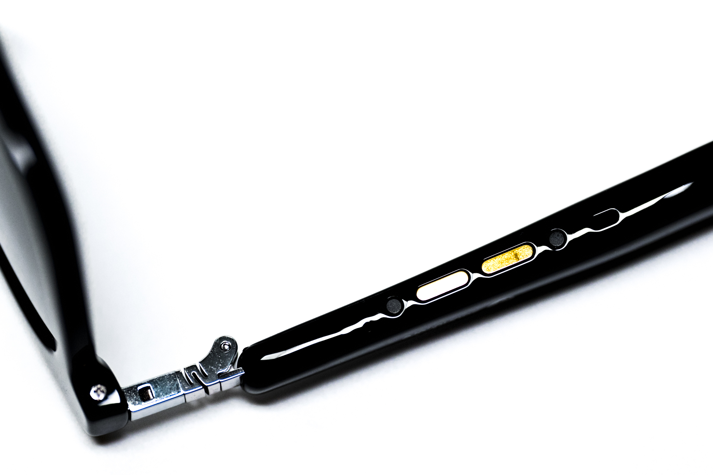 프레임과 결합하는 부분입니다. 메탈 소재로 되어 있어 탈착 중 손상 우려가 적고 별도 도구 없이 누르고 당겨서 결합/분리가 가능한 것이 장점입니다. 판매 중인 프레임을 검색해보니 레이밴 스타일의 선글라스와 메탈 소재 안경테가 있어서 벌써 구매욕구가 생깁니다.
