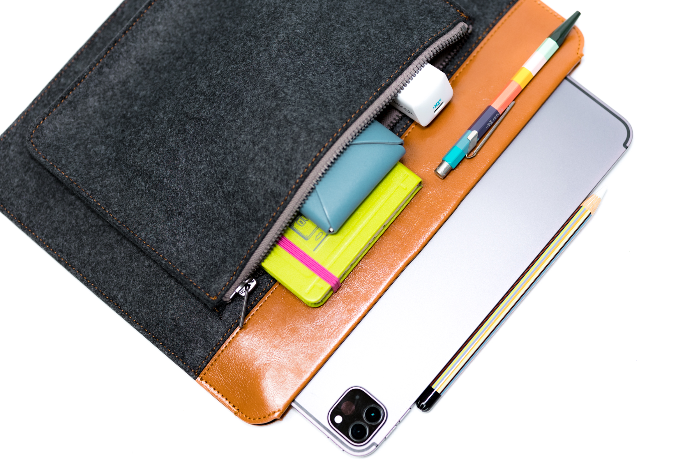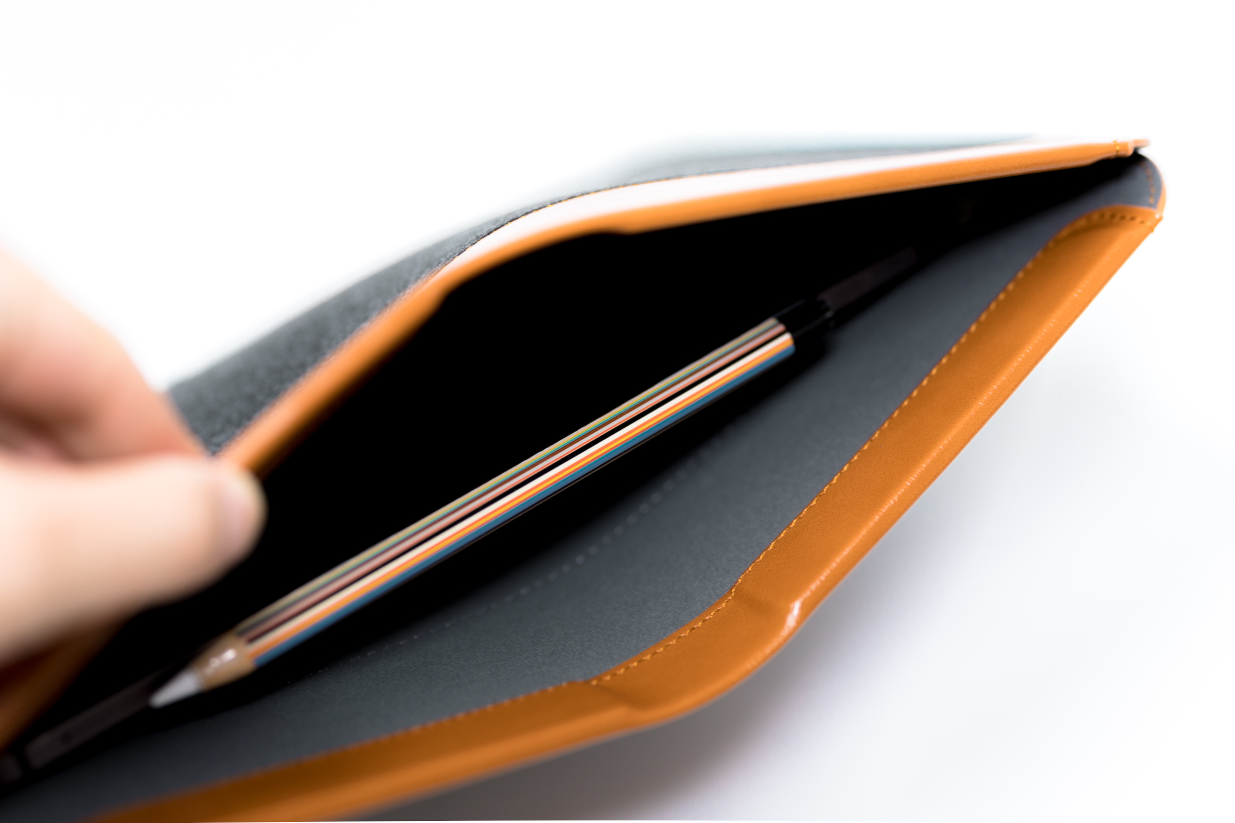 무엇보다 디자인의 만족도가 가장 큽니다. 투박한 파우치를 사용하지 않아도 제품을 안전하게 보호할 수 있고 종종 아이패드 프로 하나만 챙겨 나갈 때는 가방 없이 파우치 하나만 들고 나가도 무리가 없습니다. 지갑, 휴대폰 등의 소품을 포켓에 넣을 수 있어서 클러치처럼 활용할 수도 있고요.