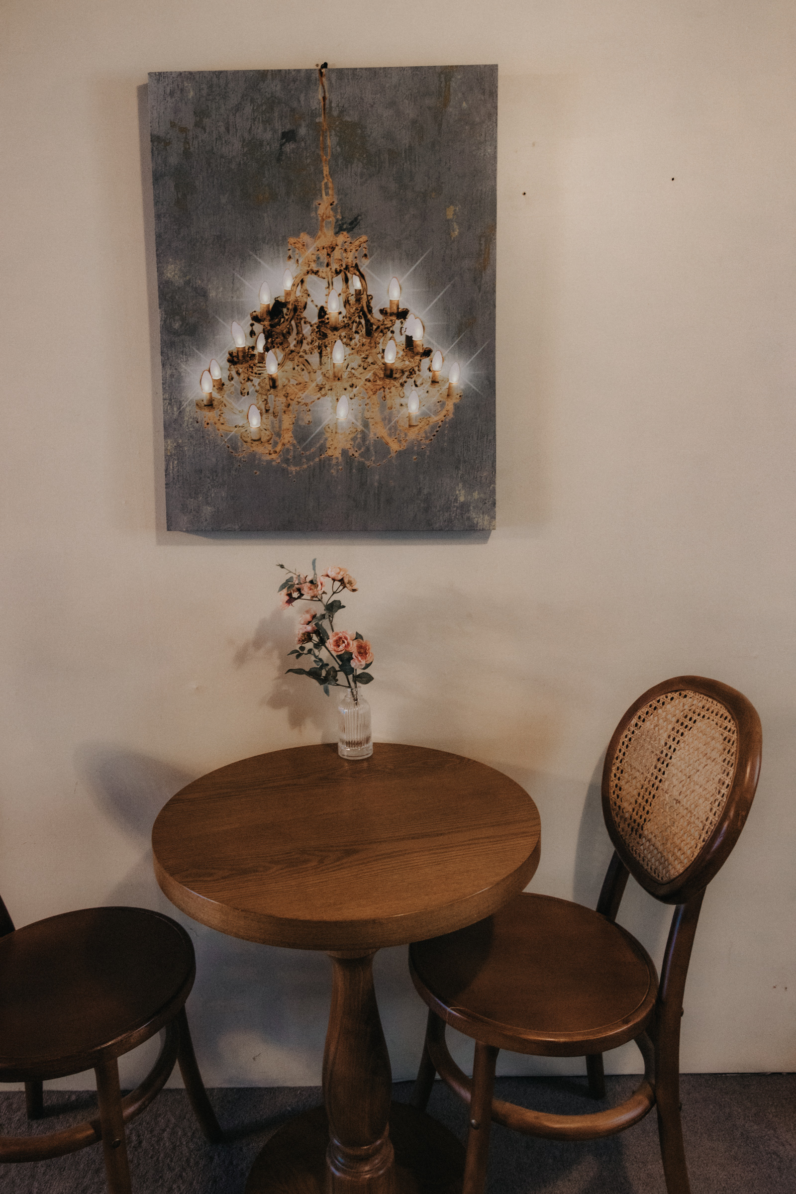 마음에 들었던 2층 공간. 어둑어둑한 조명부터 옛 배경의 영화/드라마를 연상 시키는 벽지와 가구들이 인상적입니다. 평일 오후라 운 좋게 2층을 한동안 독차지 했습니다. 연인/친구들과 사진 찍기도 좋아 보였어요.
