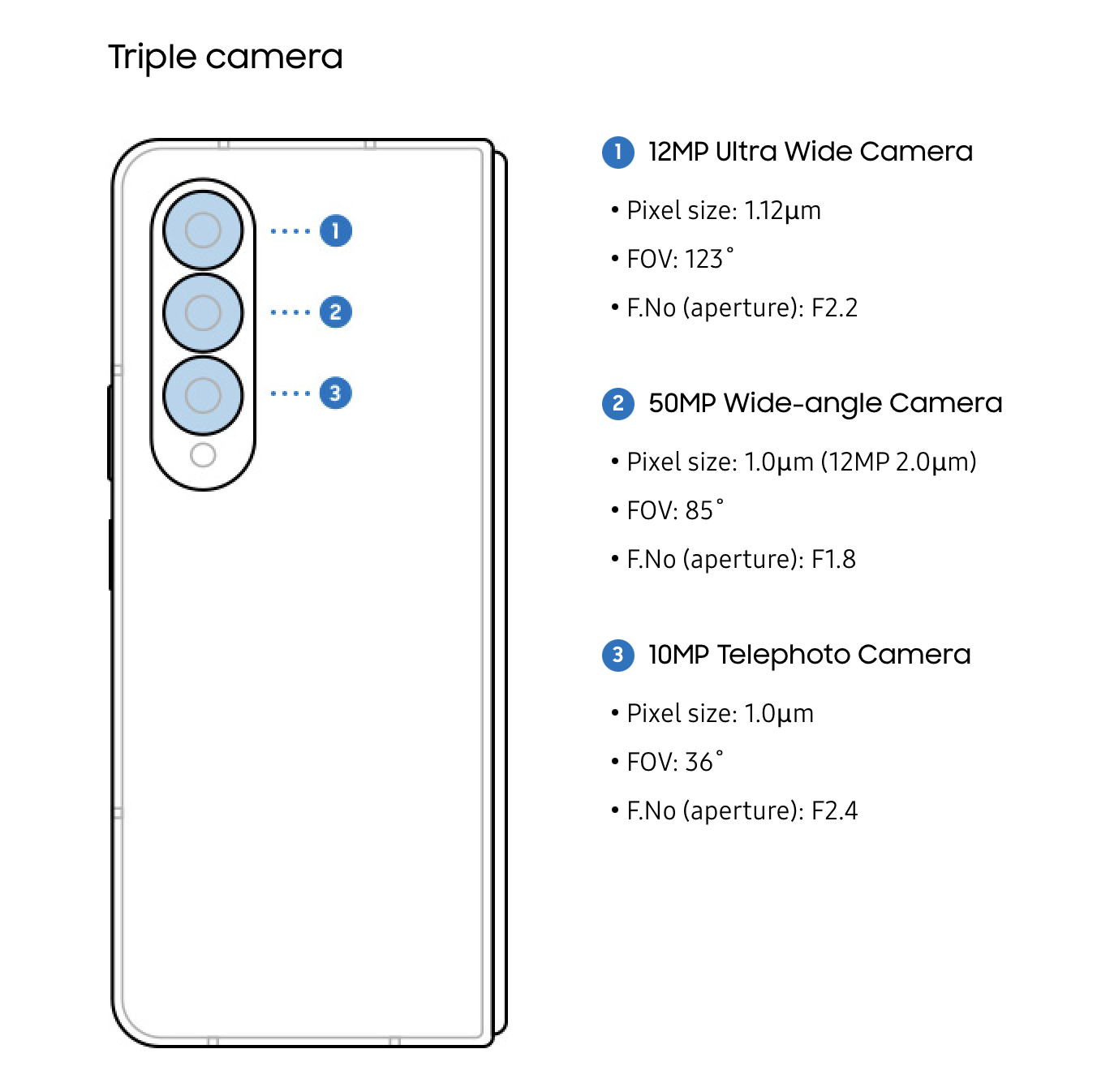 다양한 장치와 기능들 중 카메라에 대해 중점적으로 이야기하려고 합니다. 사흘간의 대여 기간이 이 제품을 제대로 경험하기에는 너무 짧기도 했고, 업무상 스마트폰 카메라에 관심이 많아서요. 예전 시리즈에서도 그랬는지 모르지만, 이번 Z 폴드 4에서는 '프로급 카메라'를 제품 소재의 중요한 키워드로 내세웠습니다. 그간 Z 시리즈는 S 시리즈보다 카메라는 한 세대 이전 또는 한 단계 낮은 등급의 모듈을 사용한 것으로 알고 있는데 이번엔 달라졌을지 궁금했어요. 갤럭시 Z 폴드 4의 카메라 사양은 아래와 같습니다.