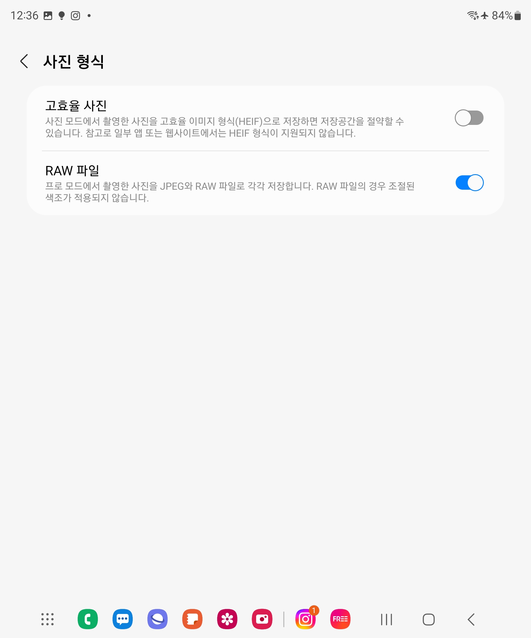 카메라 앱은 제가 최근까지 테스트했던 S21, S22 모델과 거의 동일합니다. 디지털 카메라의 인텔리전트 자동 모드에 해당하는 장면별 최적 촬영, HEIF/RAW 촬영 지원, GIF 즉시 촬영, 야간 촬영 모드 등이 새롭게 보였습니다. 하지만 신규/특화 기능을 제외하면 전반적인 UI는 기존 갤럭시 폰과 동일합니다.