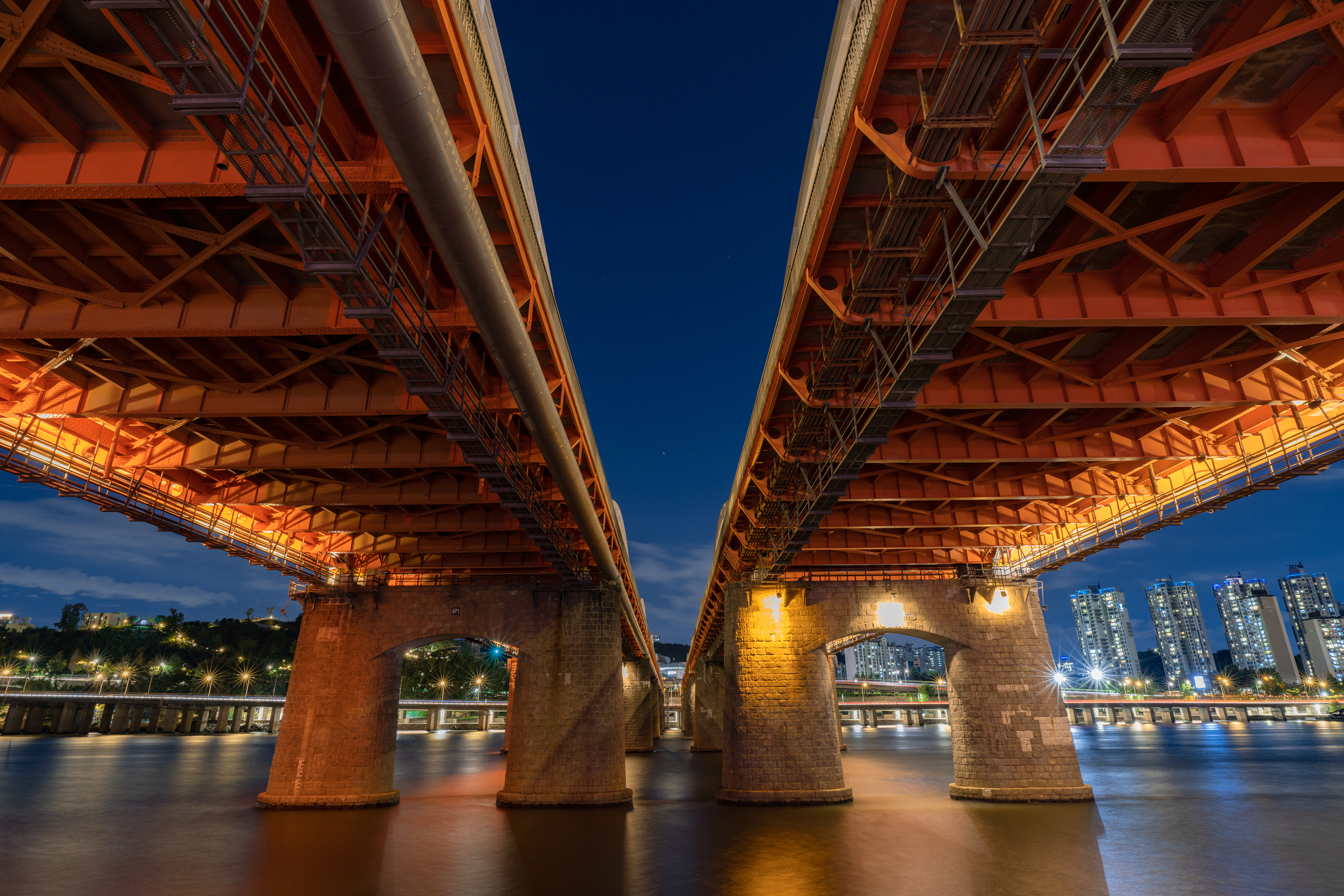 일곱시 일몰 무렵부터 늦은 밤까지 강바람 맞으며 산책을 하고 사진을 찍었습니다. 20mm F1.8로 야간 장노출과 보케, 빛갈라짐 테스트를 해 봤는데 그간 들었던 평대로 주변부 화질, 원형 보케, 빛갈라짐 모양까지 전반적으로 만족스러웠습니다.