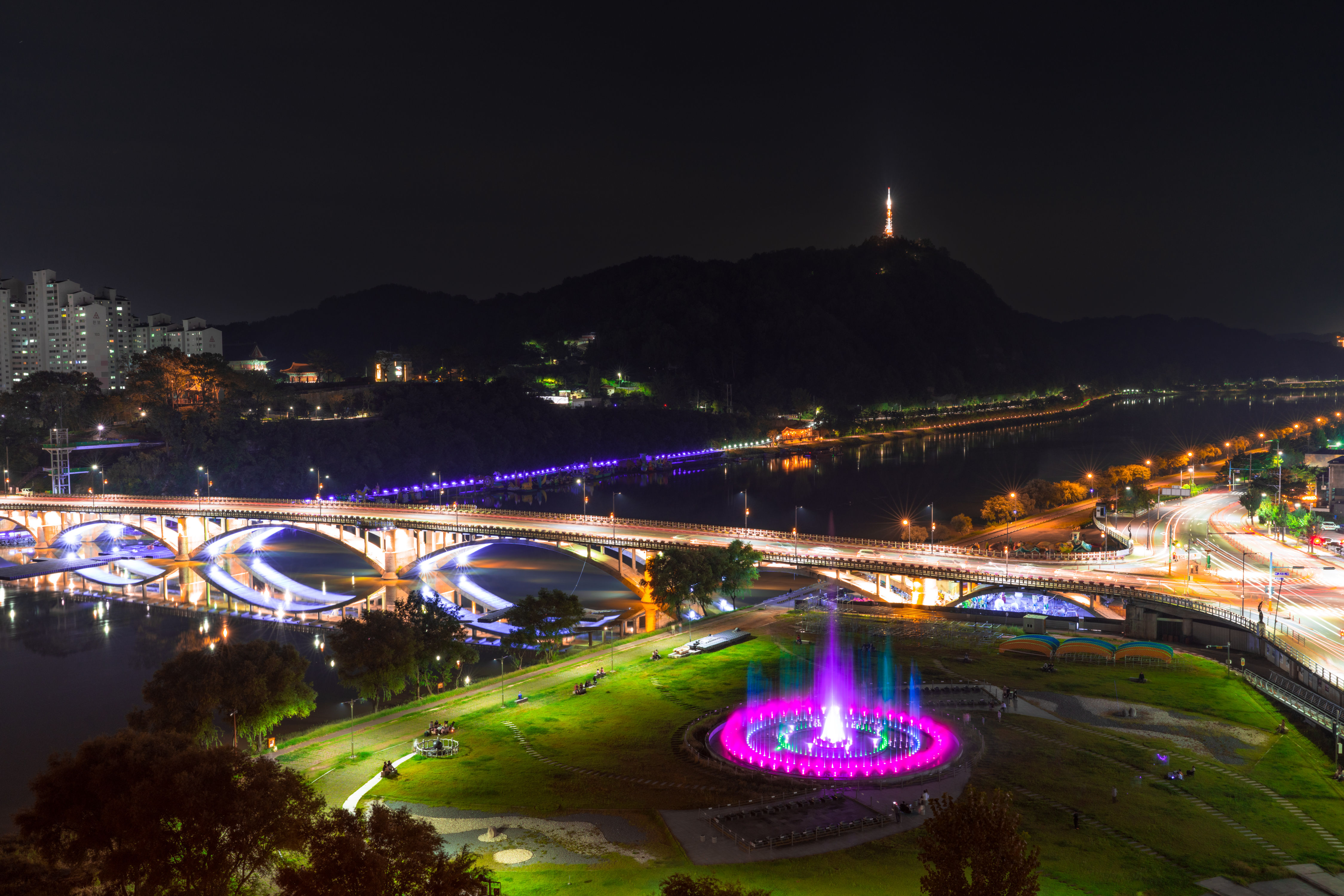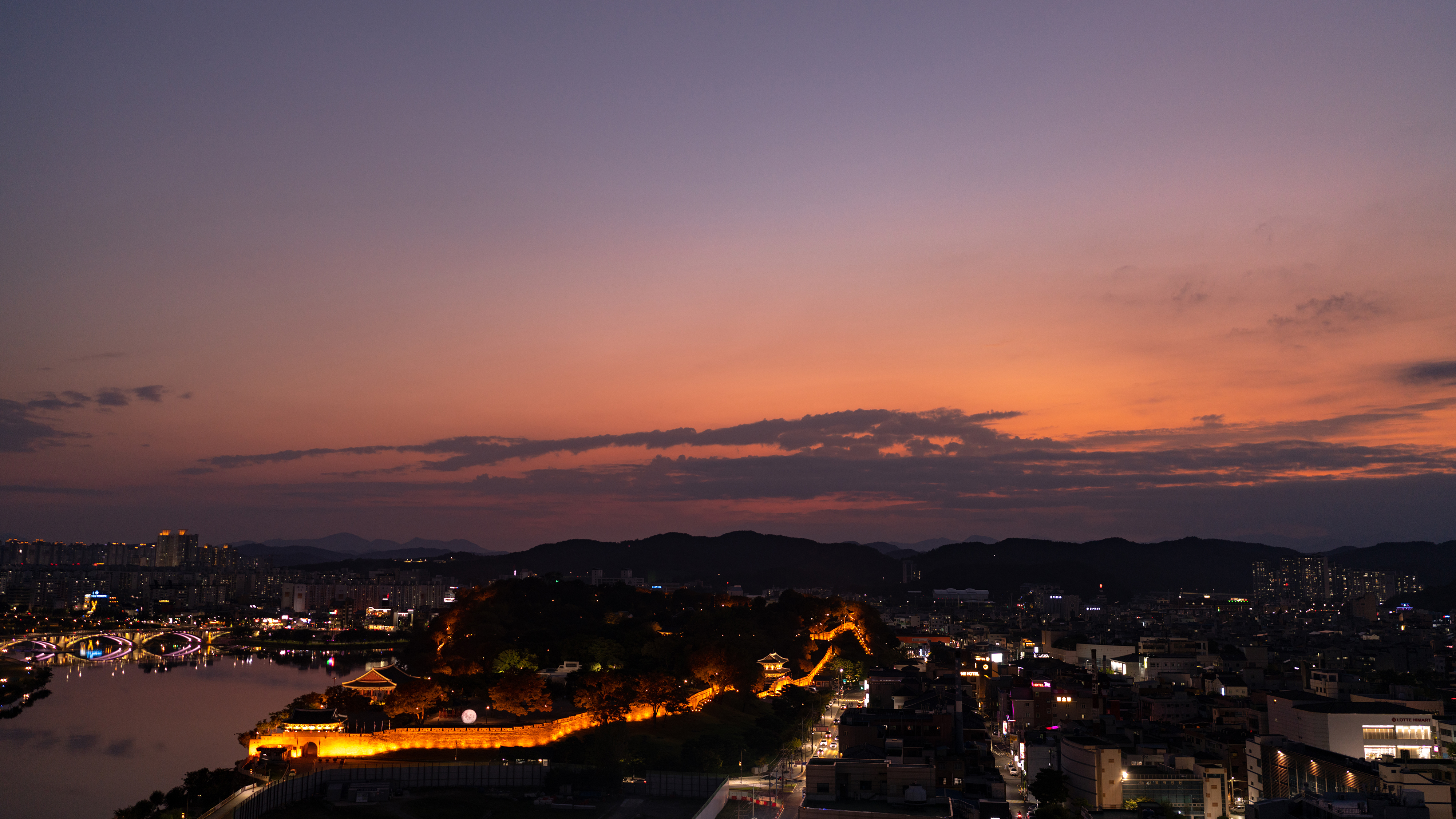 제법 큰 남강에 비치는 진주성 반영도 아름다웠지만 역시 진주성은 어둠 속에서 빛날 때가 가장 아름답습니다. 노을이 짙어질 때쯤 성곽길 조명 '짠'하고 켜지니 도시가 한결 아름다워 보입니다. 마음을 먹고 떠난만큼 손에는 카메라가 있었고 소니 A7R4와 35GM 렌즈로 노을과 야경을 담았습니다.
