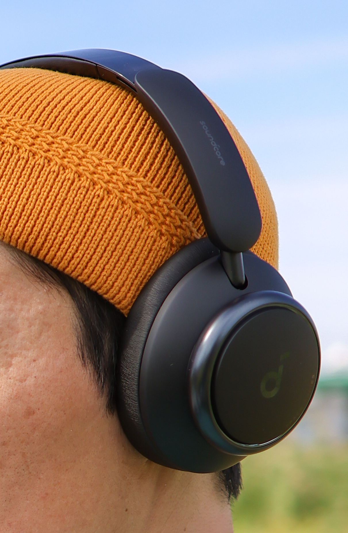 이런 구조 변화로 헤드폰을 착용했을 때 헤드폰이 옆으로 넓게 돌출되는 현상이 전보다 덜해졌습니다. Q35가 가성비 헤드폰으로 인기가 많았음에도 외형에 대한 불만이 많았다고 하는데 긍정적인 개선점이라고 하겠습니다. 실제로 Q45로 앤커 헤드폰을 처음 경험한 저는 요다 핏(?)에 대한 불만은 느끼지 못했습니다. 양 옆이 조금 더 타이트하게 붙으면 좋겠다는 생각을 했지만 그건 제 두상이 좁고 긴 탓이 큰 것 같아요.