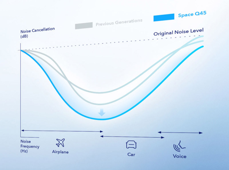 앤커 Q45는 메이저 브랜드 제품들과 비교해 가격이 20-30% 수준이지만 노이즈 캔슬링 성능은 충분히 비벼볼 만하다는 것이 제조사의 설명입니다. 내부 테스트 결과 현재 판매 중인 모든 헤드폰들 중에서도 상위, 가격까지 고려하면 최상위 권이라는 이야기를 들었습니다.