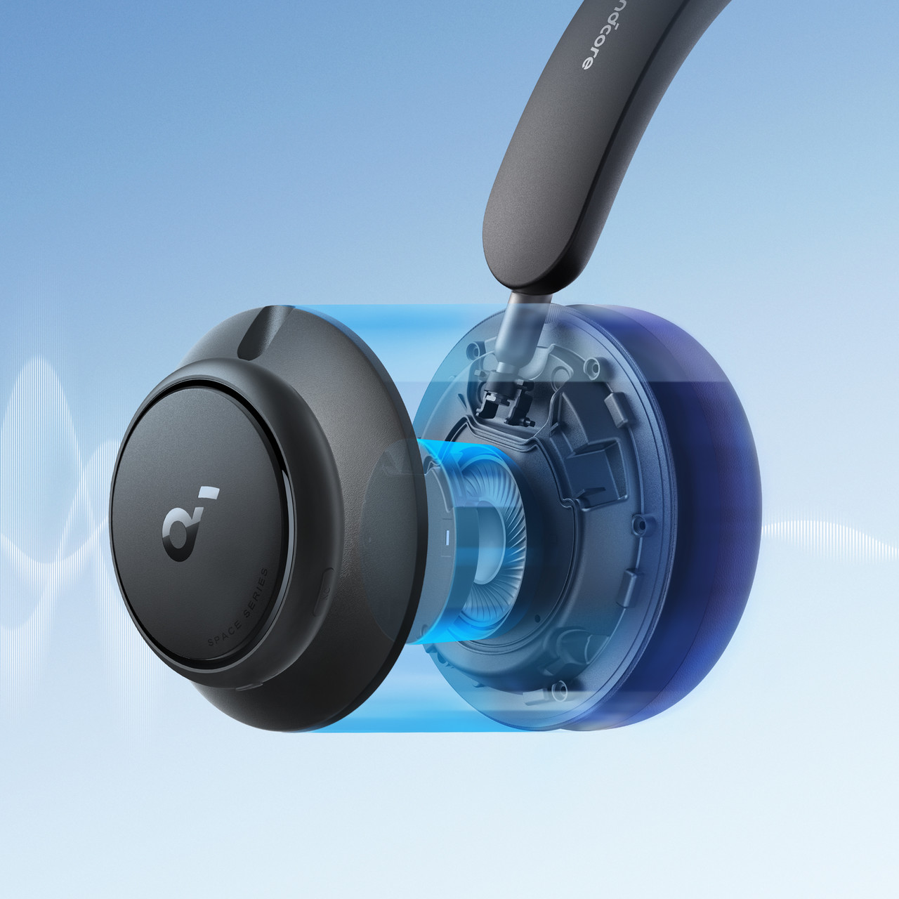 전체적인 디자인은 전작인 그간의 앤커 헤드폰 시리즈, 특히 전작 Q35와 비슷해 보입니다. 스피커 유닛과 이어패드가 두 개의 크고 작은 도넛을 겹쳐 놓은 듯한 디자인이 특히 그렇죠. 큰 틀에서 변화가 있습니다. 그간 사용자들이 건의 해 온 착용 후의 모습, 흔히 '요다 현상'을 줄이기 위해 스피커 유닛과 헤드밴드가 연결되는 힌지의 위치를 바꿨습니다.