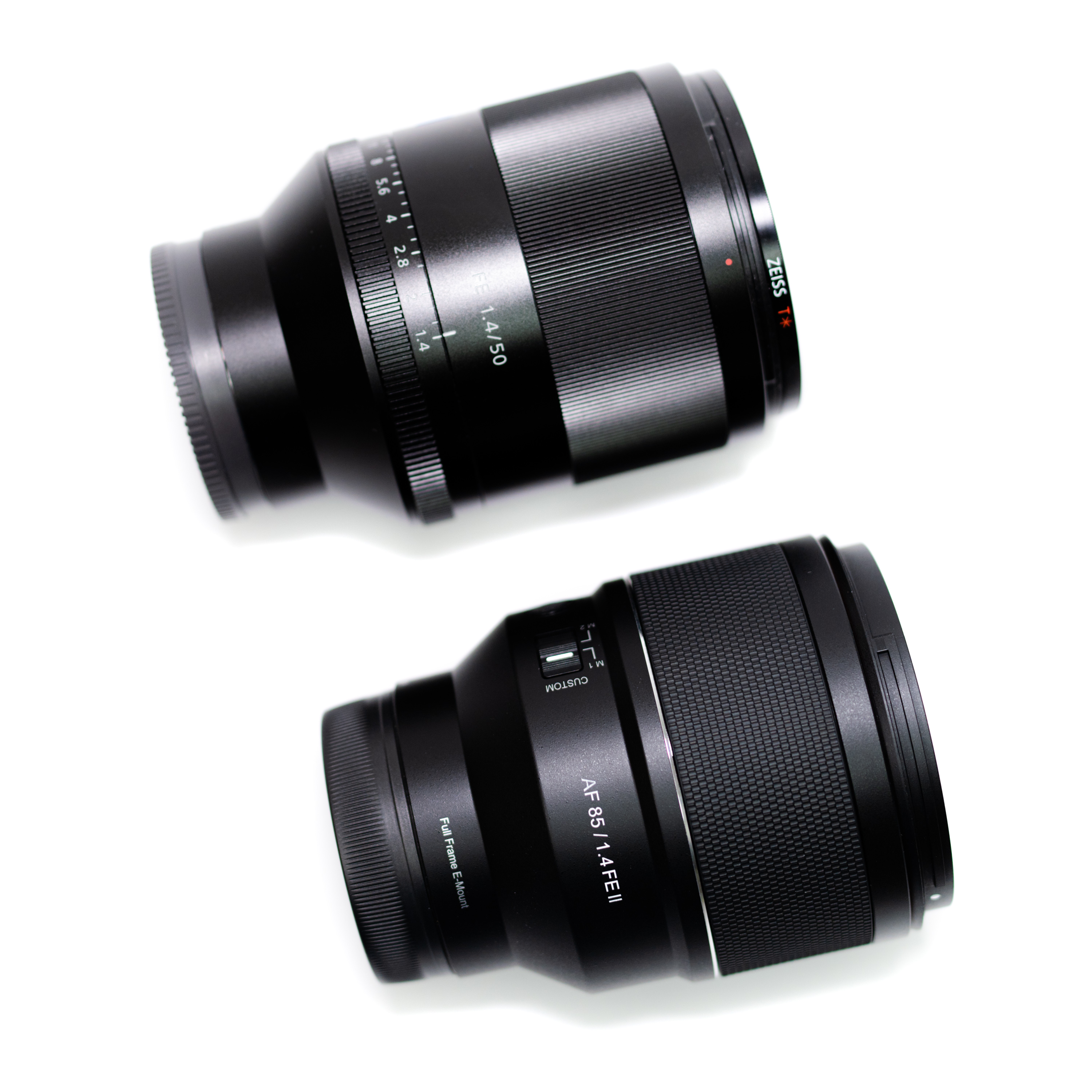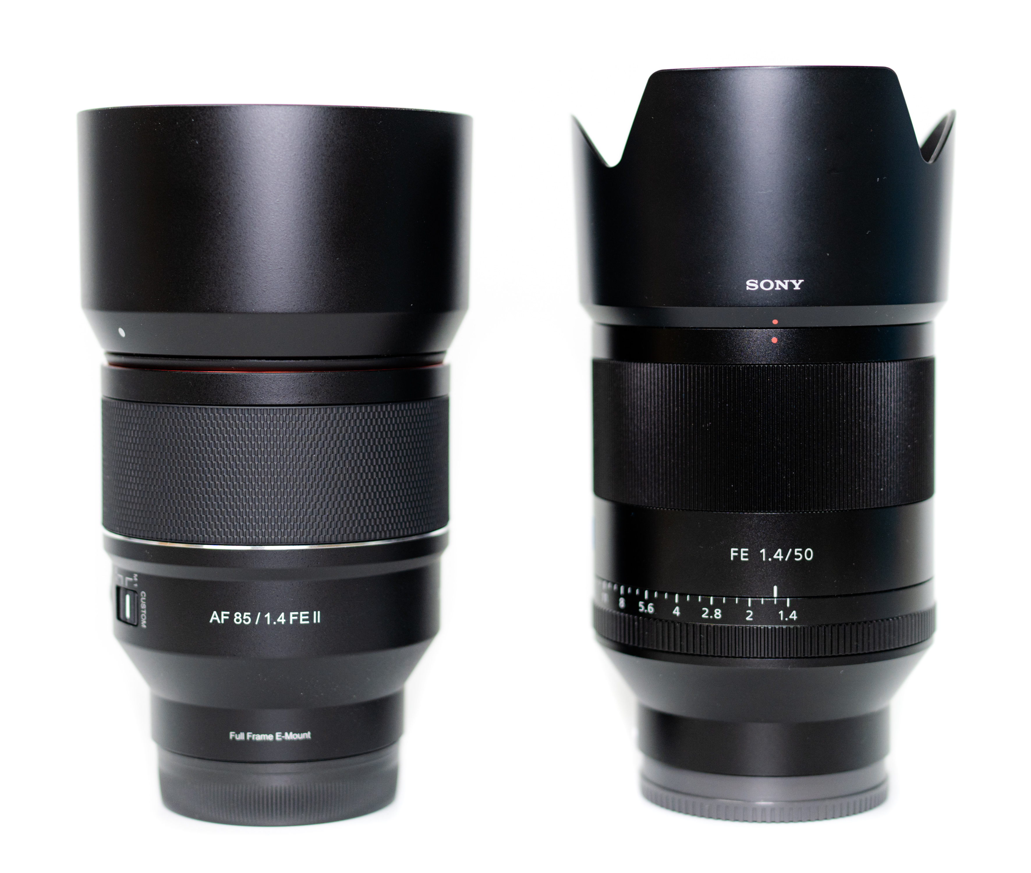 제가 가진 렌즈들 중 FE 50mm F1.4 ZA 렌즈와 크기가 비슷합니다. 경통 지름은 83.4, 83.5mm로 거의 동일하고 전체 길이가 약 1cm 정도 FE 50mm F1.4 ZA 렌즈쪽이 깁니다. 다만 무게는 509g과 778g으로 상당한 차이가 납니다. 50mm F1.4 ZA 렌즈는 장시간 촬영에 부담이 있을 정도로 육중하죠. 2/3에 불과한 AF 85mm F1.4 FE II의 무게는 확실한 장점입니다.