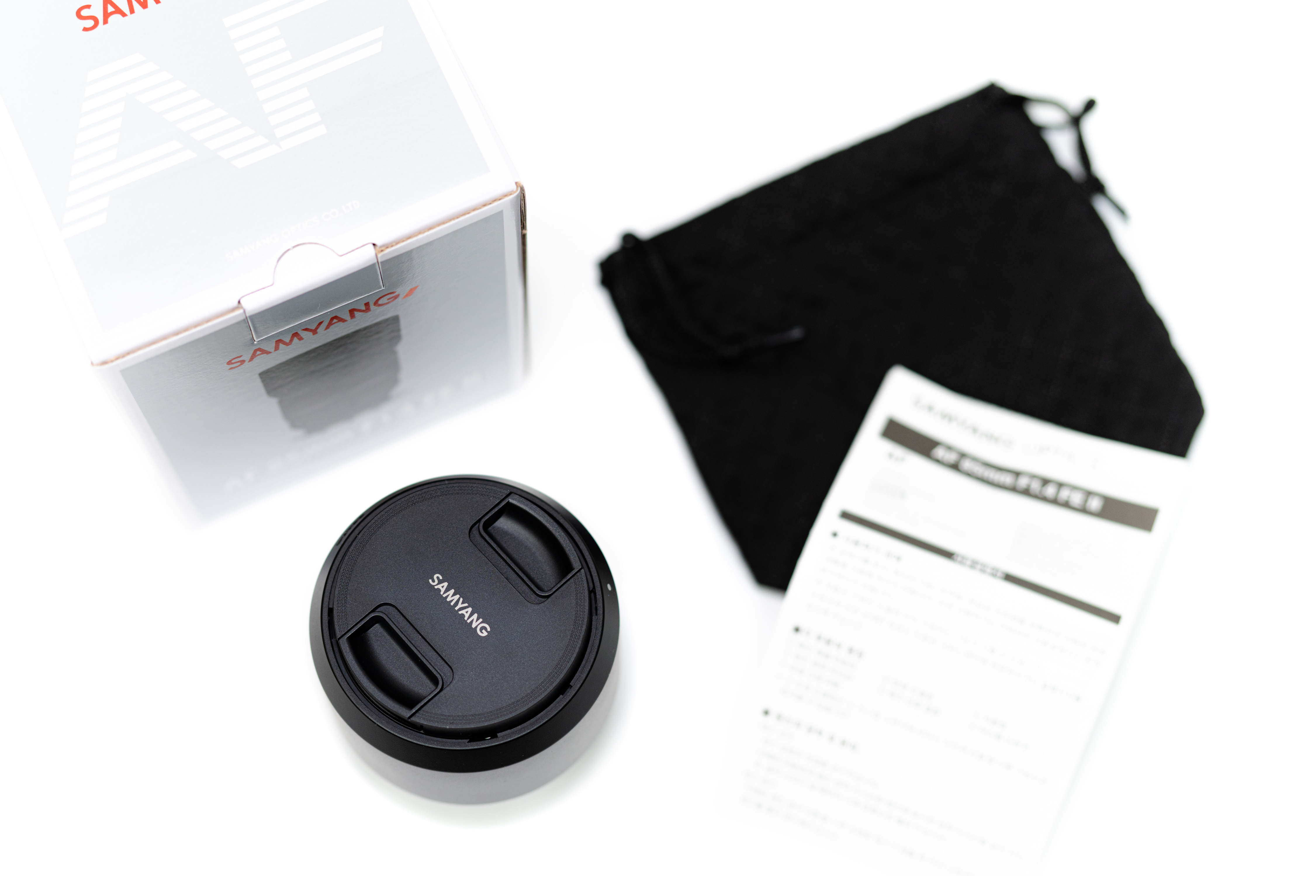 구성품은 렌즈와 파우치, 매뉴얼입니다. 삼양 렌즈는 기본 구성품에 늘 파우치 또는 캐링 케이스를 동봉해 온 것으로 기억하는데 품질이 아쉽지만 흠집을 방지하는 데 도움이 됩니다.