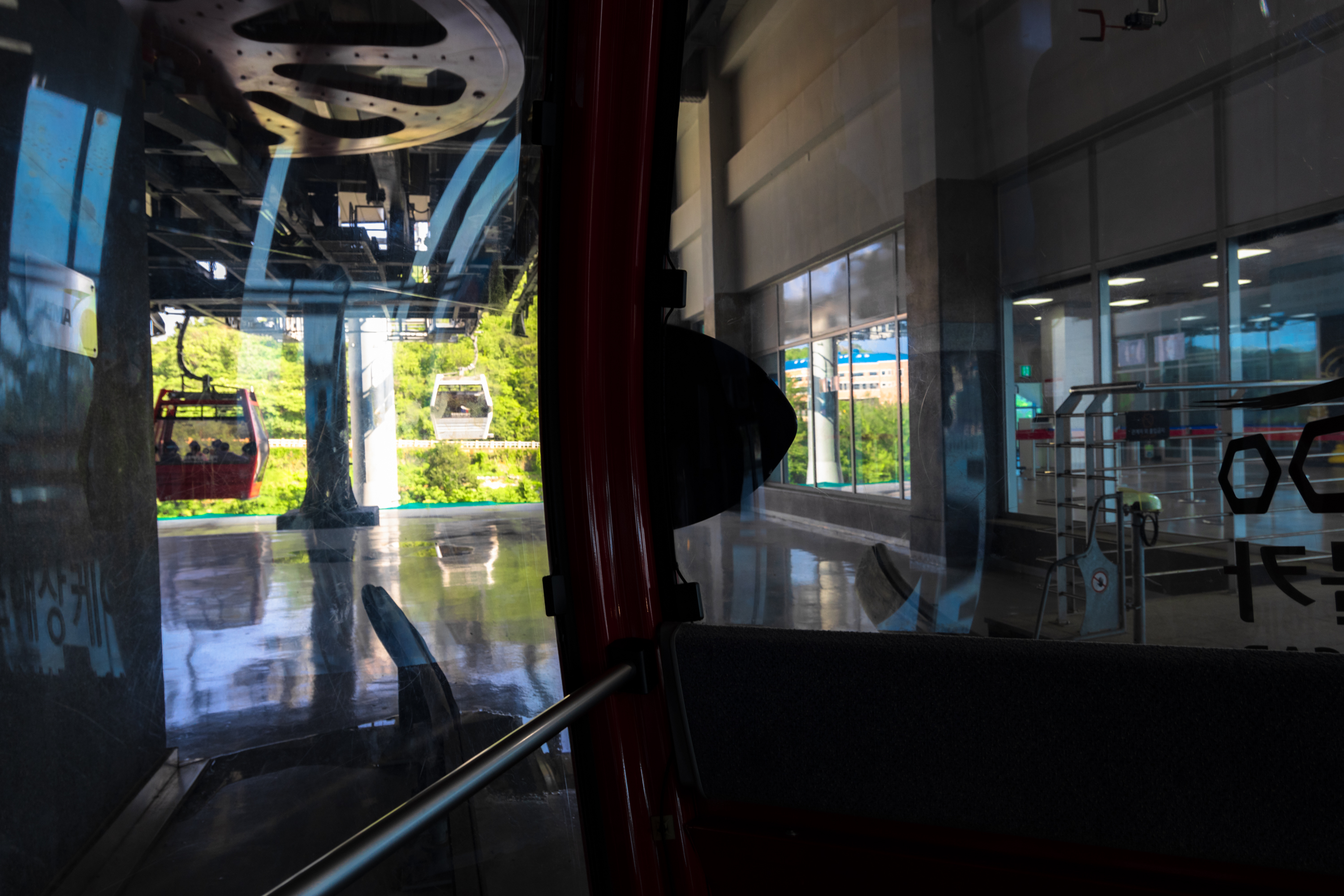 케이블카가 탑승장을 빠져 나오자마자 빠르게 움직입니다. 코스가 길어서인지 속도가 빠르게 느껴져요. 게다가 오르막길을 거침없이 올라갑니다. 고소공포 있으신 분들은 초반에 겁 먹을 수도 있을 것 같아요.