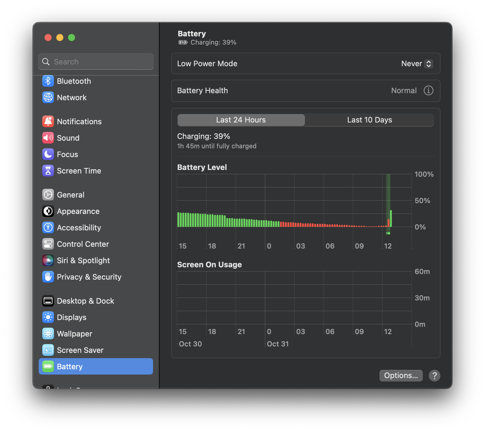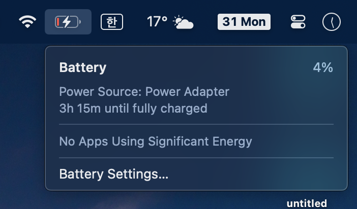 65W 1포트 최대 출력으로 맥북 프로 14인치를 충전해 보니 약 30분만에 40% 가량 충전됐습니다.