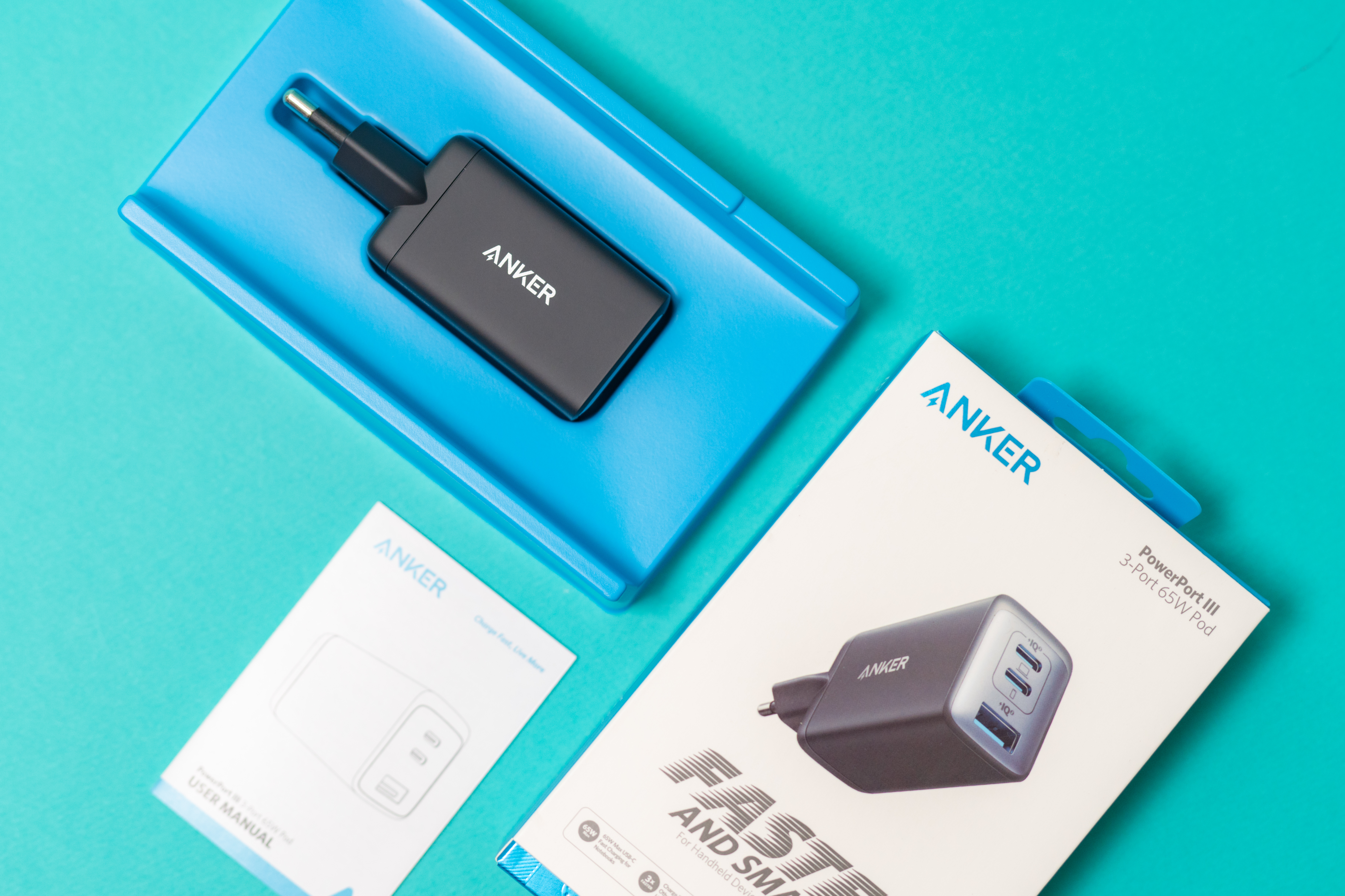 3포트에 최대 65W 출력을 지원하지만 GaN 2 기술이 적용돼 크기가 기존 나노 시리즈와 큰 차이가 나지 않을만큼 작습니다. 기존에 사용 중인 3 포트 충전기와 비교하면 두께는 비슷하지만 크기가 절반 수준입니다. 최대 출력과 포트 수 등 두 제품의 사양이 비슷한 것을 고려하면 나노2 65W 3포트 모델이 가진 휴대성의 장점이 확실하다 하겠습니다. 그 외에 삼성 고속 충전 규격인 PPS, 연결된 기기에 맞게 전원을 분배하는 PowerIQ 기술, 내부 온도에 따라 출력을 조절하는 Active Sheild 기술 등이 적용됐습니다.