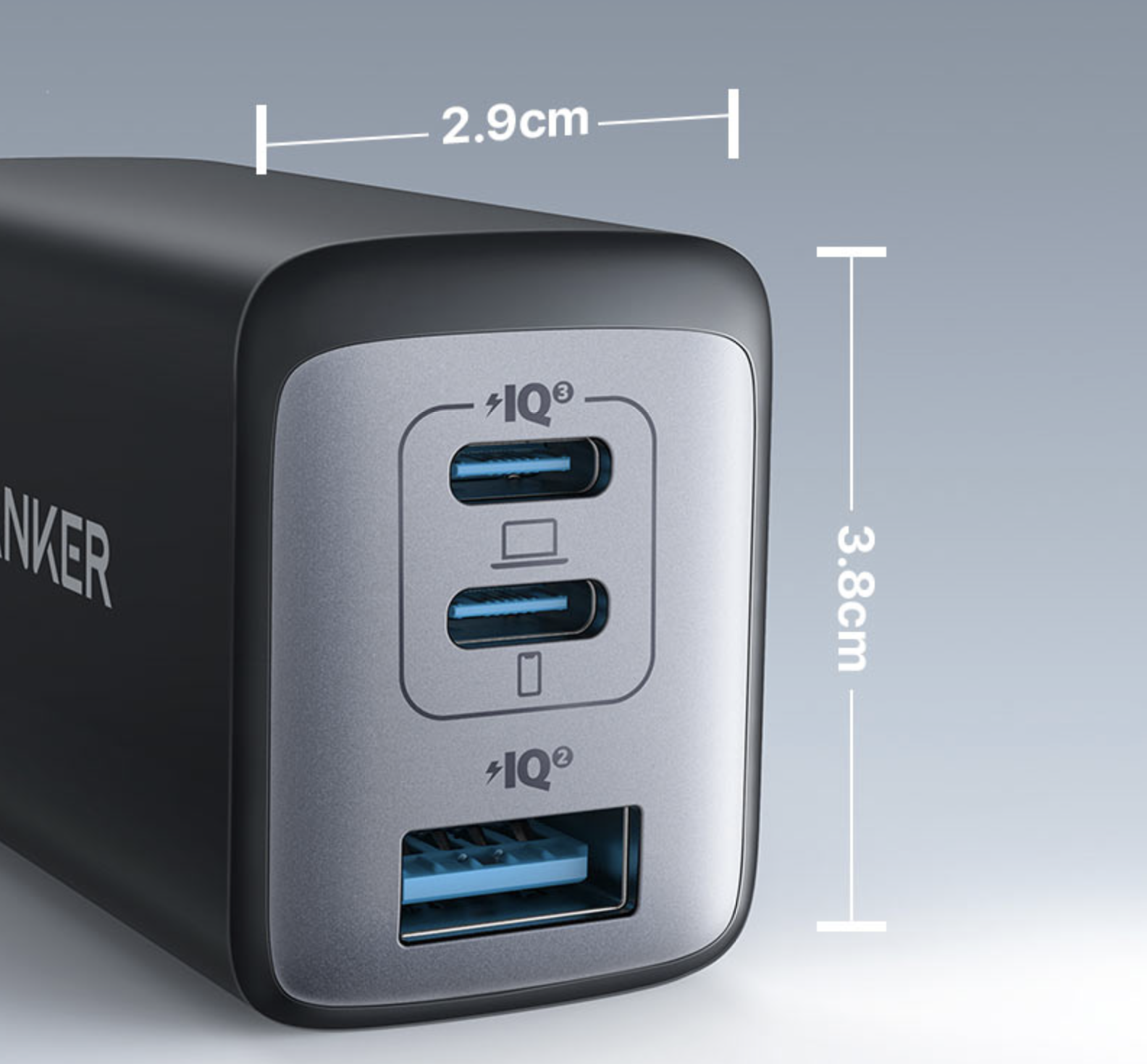 함께 사용 중인 앤커 나노 프로 40W 모델과 비슷한 디자인에 길이가 조금 더 길고 무게 역시 무겁습니다. 3개의 포트가 있는 바깥쪽을 보면 낭비 없이 타이트하게 디자인됐다는 느낌입니다. 검은색으로 나노, 나노 프로 모델과 차별화를 뒀습니다. 기존 나노 시리즈와 차별화를 위한 것으로 보이는데 색상은 마음에 들지만 브라이트 마크나 흠집이 쉽게 눈에 띄는 소재라 사용하며 신경이 쓰일 수 있겠습니다. -그래도 번쩍이는 유광 소재보단 낫습니다-