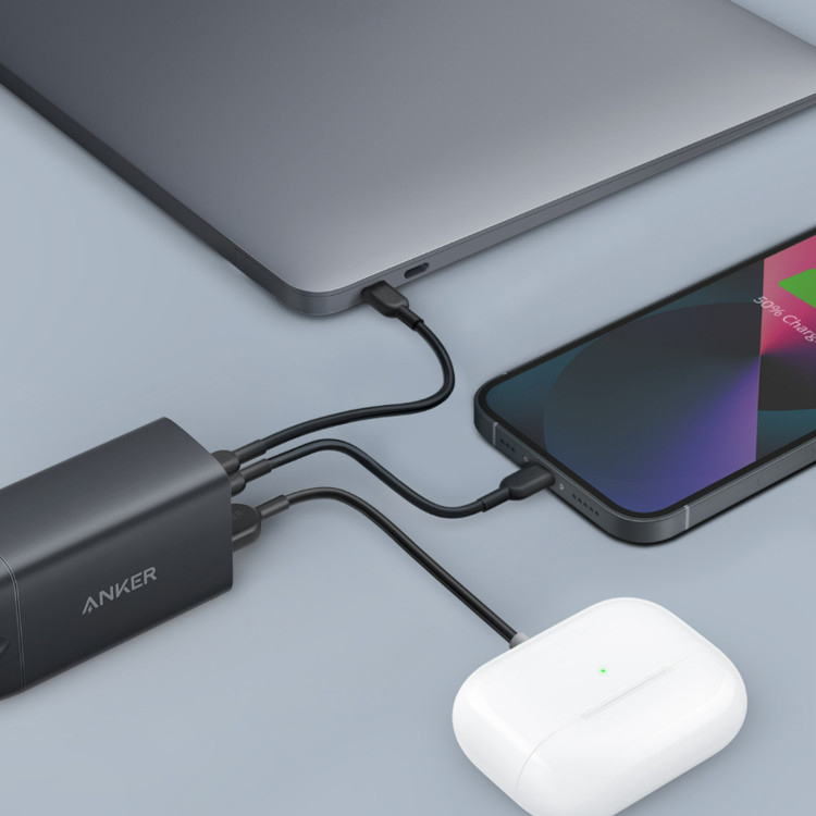 싱글 포트의 나노2 65W 모델과 함께 나노 시리즈 중 출력이 가장 높은 모델입니다. 동시에 가장 많은 3개의 포트를 탑재해 편의성을 높였습니다. 두 개의 USB-C 포트와 한 개의 USB-A 포트로 범용성이 높은 것도 장점입니다. 단독 또는 동시 연결된 포트 수에 따라 출력이 변경되는 것이 특징입니다. USB-C 단독으로 최대 65W, 두 개의 USB-C 포트를 사용할 때는 45W+20W으로 충전됩니다. 세 포트를 동시에 사용해도 최대 40W 출력을 유지하기 때문에 노트북과 스마트폰, 태블릿, 웨어러블 디바이스를 함께 충전하기에 유리합니다.