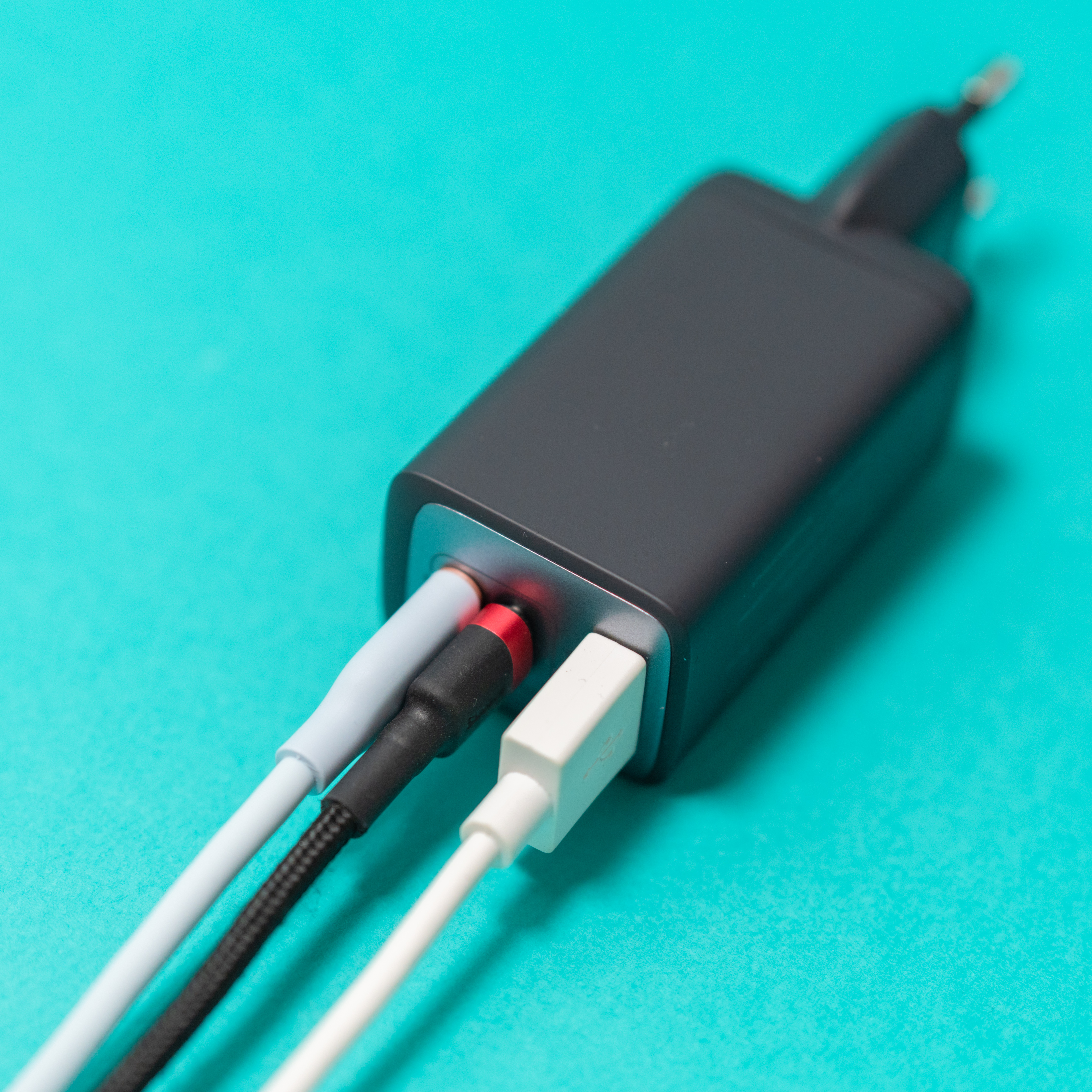 크기는 38 x 29 x 66 mm로 나노 모델 중 가장 크지만 가장 작은 나노 20W(35x34x45.5mm)와 비교해도 길이 외에는 큰 차이가 없습니다. 다만 무게는 100g 이상 무거우니 여기서 큰 차이가 있겠네요. 싱글 포트 65W 충전기(42x36x44mm)와 비교하면 길이가 약 2cm 길고, 폭과 높이는 오히려 작습니다. 무게는 멀티 포트 모델이 약 30g 무겁고요. 포트 수의 장점을 생각하면 크기, 무게 차이가 크지 않아서 저처럼 여러 기기를 사용한다면 3 포트 모델이 확실히 유용하겠습니다. 가격은 만원 가량 비싸지만요.