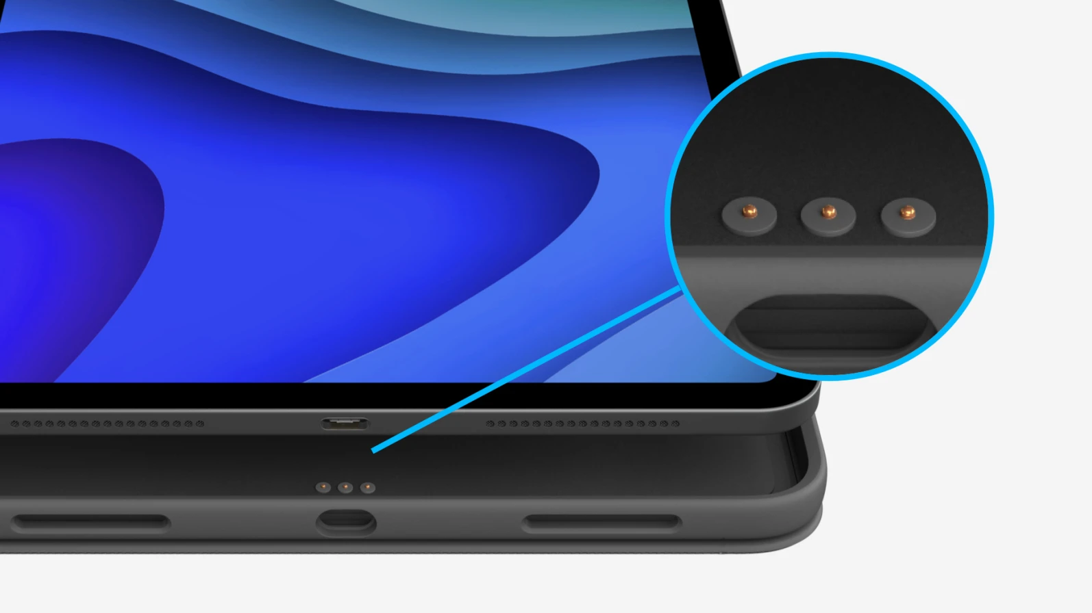 연결은 아이패드 프로 뒷면의 스마트 커넥터를 통해 이뤄집니다. 별도의 무선 페어링 과정 없이 케이스에 아이패드 프로를 결합하는 것만으로 두 장치가 연결됩니다. 전원을 아이패드에서 공급받는 방식이라 키보드를 충전할 필요가 없는 것도 좋습니다.