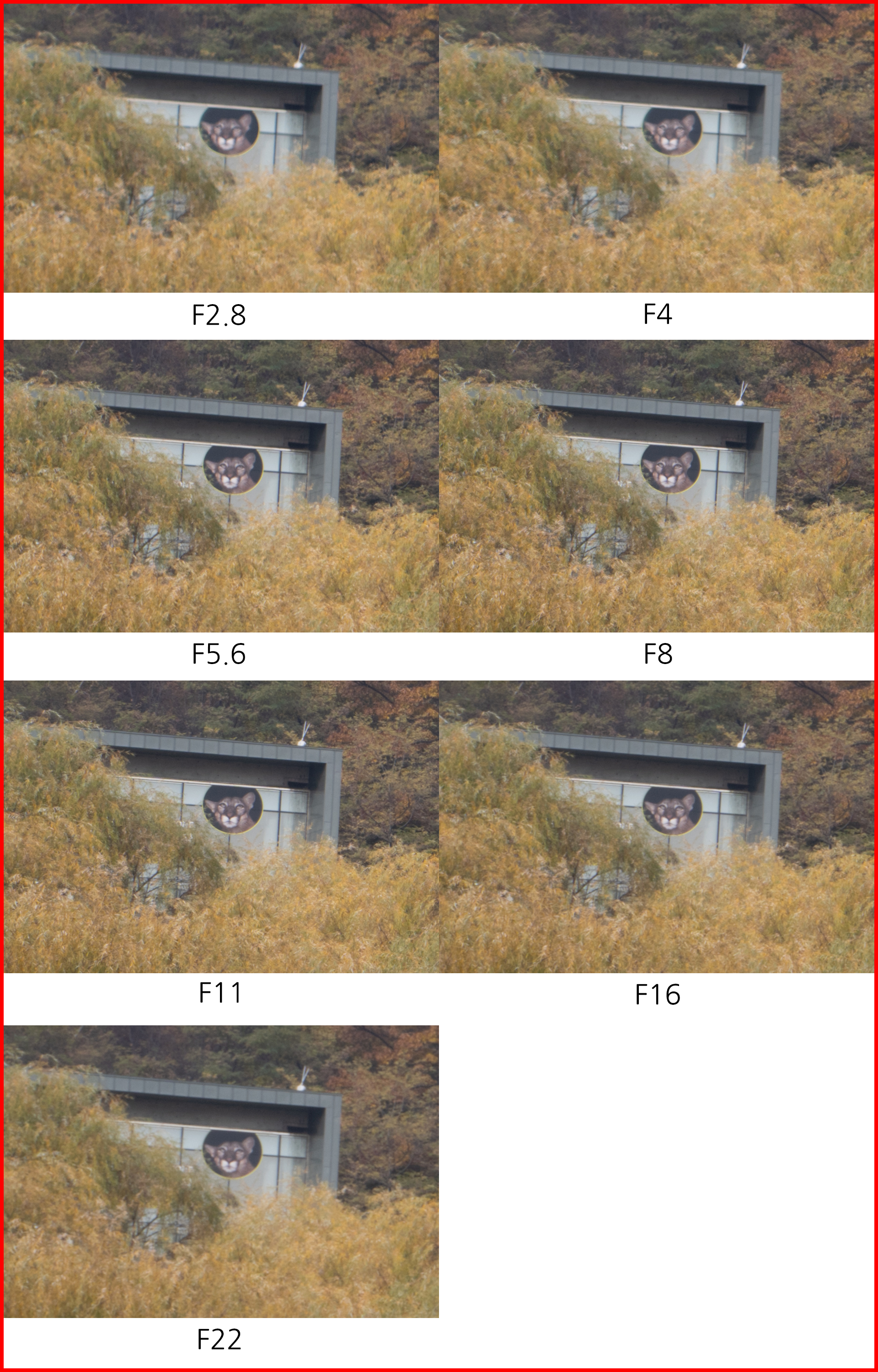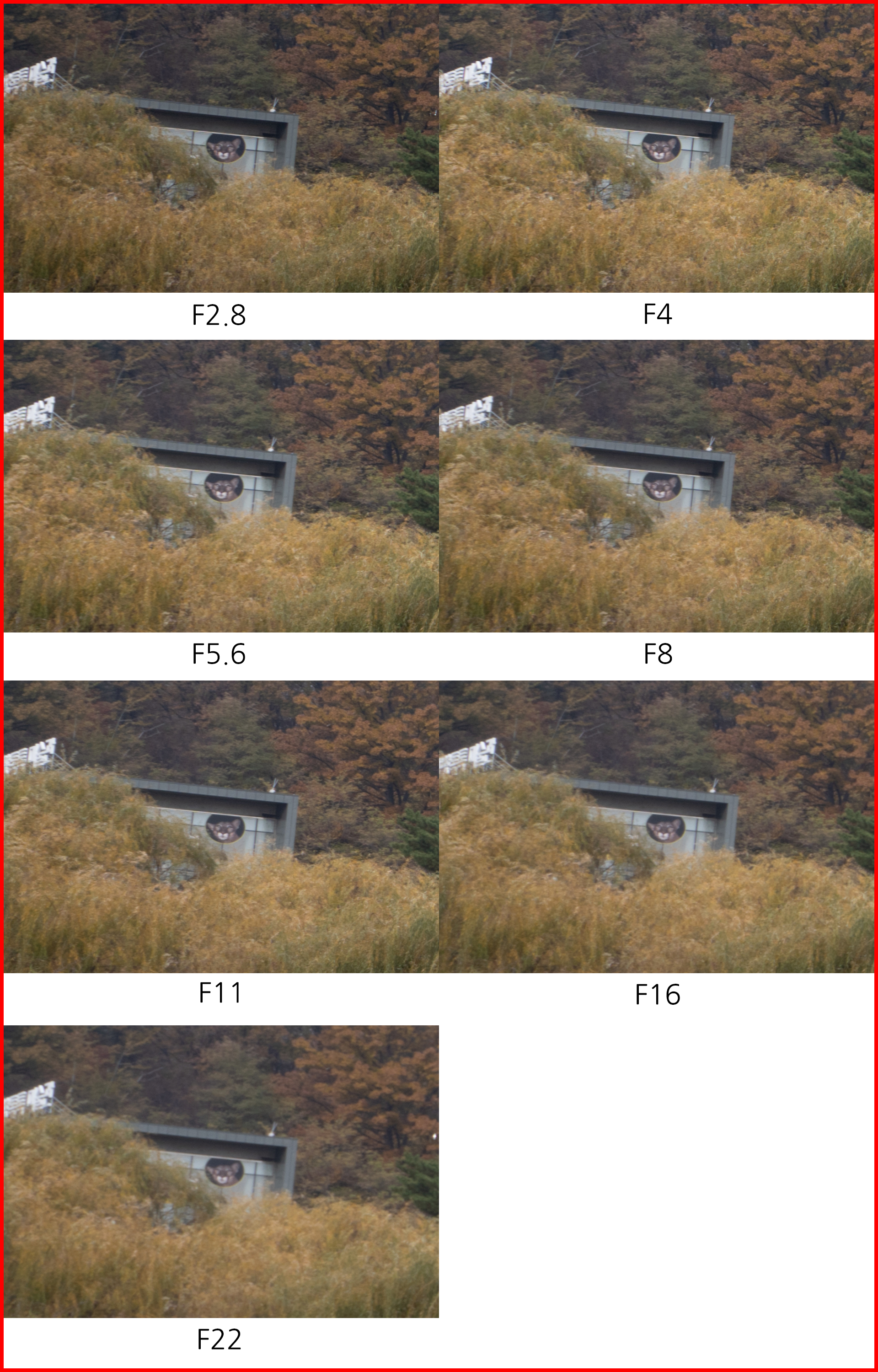 국내와 해외 사용자, 그리고 리뷰 매체들 중 상당수가 이 렌즈의 40mm 구간 화질을 지적하고 있습니다. 부피, 무게를 줄이기 위해 광학 성능을 일부 타협했다는 것은 충분히 예상됐지만 그 중에서도 40mm 구간의 이미지 품질이 눈에 띄게 떨어진다는 이야기입니다. 개인적으로 이 렌즈에서 35-40mm 구간의 사용 빈도가 높기 때문에 촬영을 진행하며 신경이 많이 쓰였습니다. 아래는 조리개 값에 따른 해상력 차이를 20/28/40mm 구간에서 비교한 것입니다.