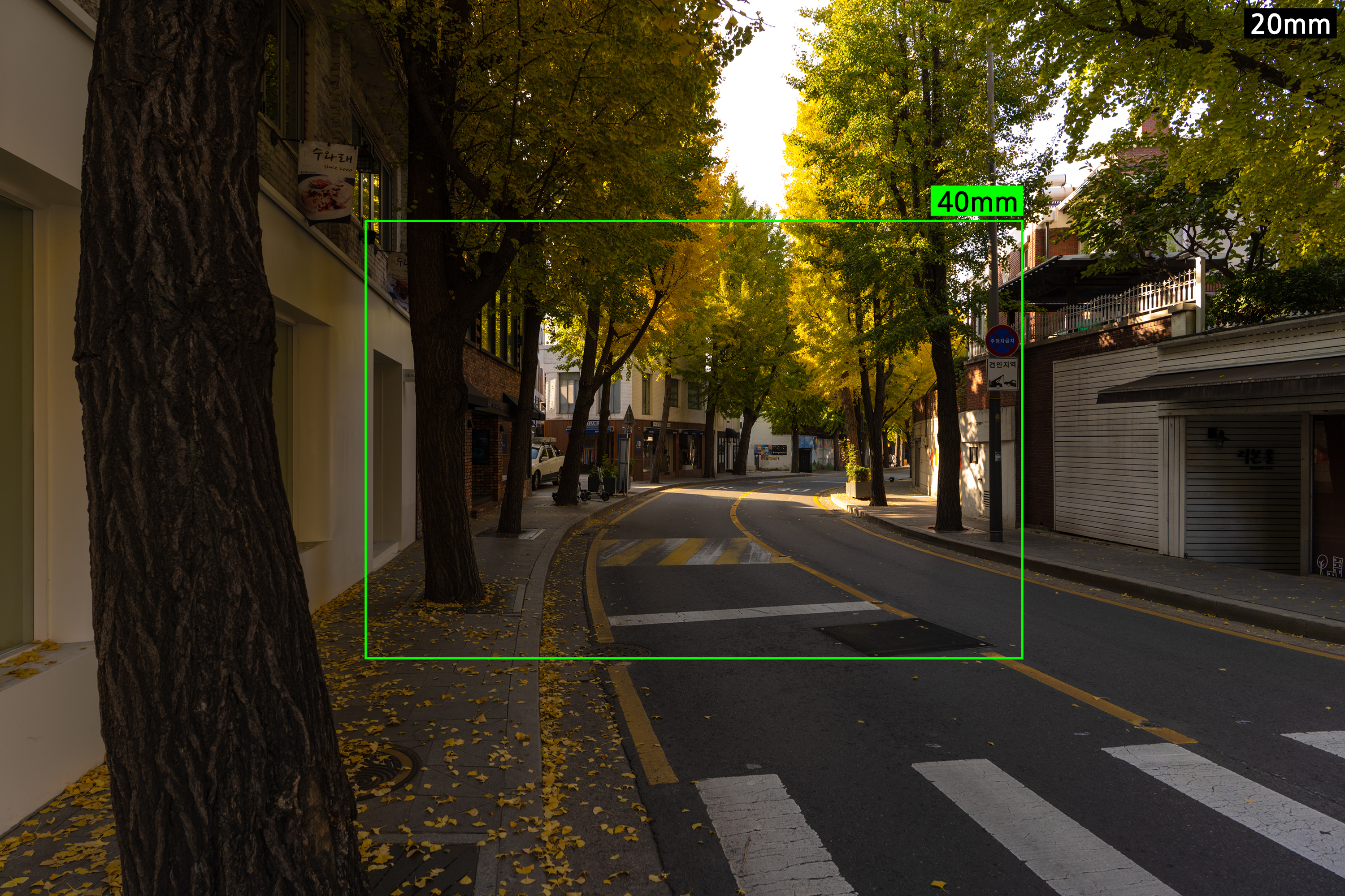 동일한 환경에서 20mm, 40mm 프레임을 비교해 보니 생각보다 그 차이가 큽니다. 표준-망원보다 1mm 차이가 큰 초광각-광각 구간의 특성을 실감할 수 있습니다. 관점에 따라 이 렌즈는 16-35mm 렌즈의 시원시원함, 24-70mm 렌즈의 다채로움 중 어느 쪽도 없는 렌즈기도 하지만 어떤 사용자에게는 가려운 곳을 시원하게 긁어주는 렌즈가 될 수 있습니다. 24mm보다 조금만 더 넓게, 35mm 보다 약간만 더 다가가면 좋겠다는 생각을 해 왔다면.