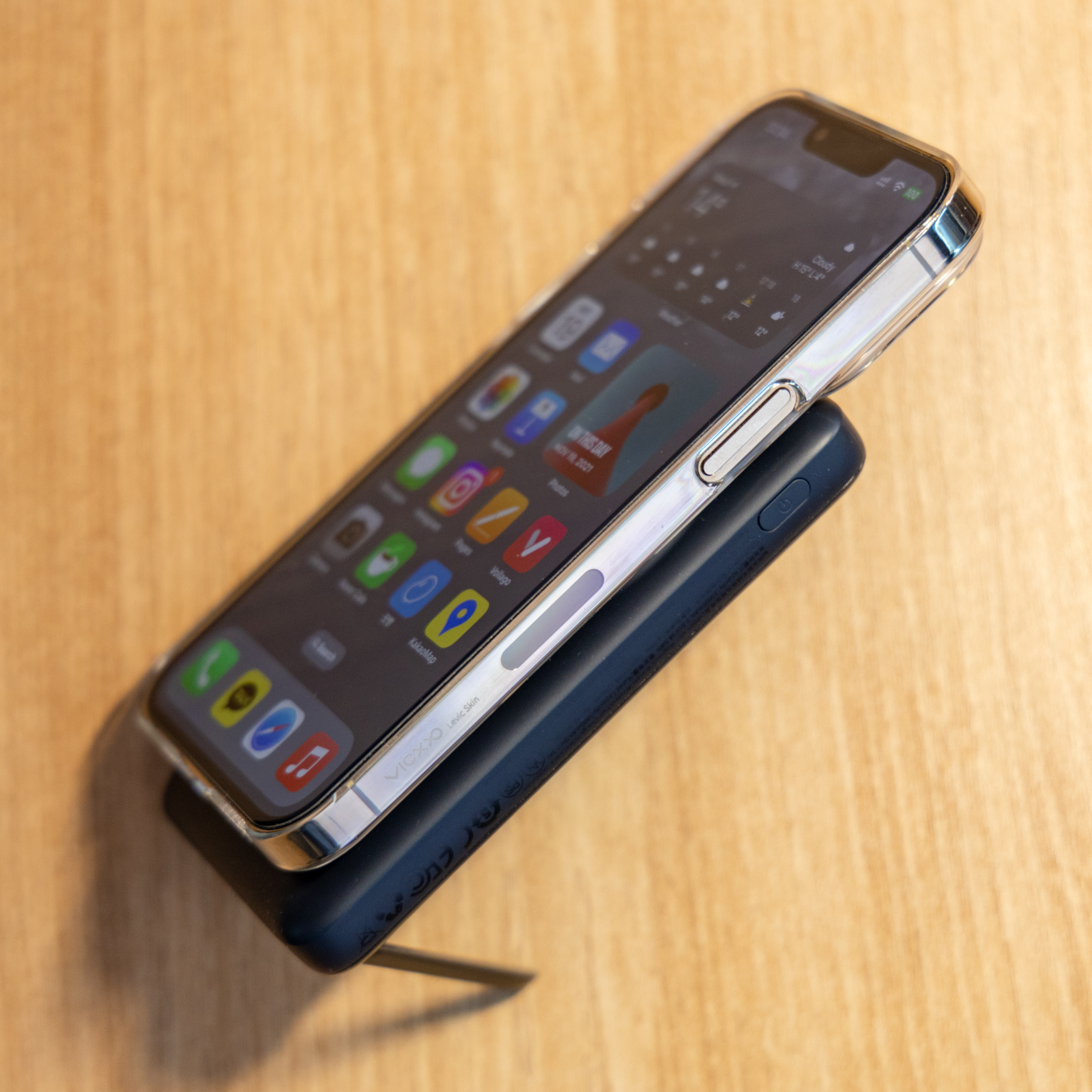 후면 자석은 애플 정품 케이스보다 자성이 더 강한 느낌입니다. 무선 충전기나 카드 지갑 액세서리를 사용할 때 더욱 안정적으로 부착됩니다. 정품 케이스와 동일한 위치로 기존에 사용하던 맥세이프 액세서리를 문제 없이 사용할 수 있습니다. 저는 맥세이프 지원 카드 지갑, 보조 배터리, 스탠드형 무선 충전기에 사용 중입니다. 각각의 기능을 사용하는 데 문제 없고 자성이 더 강해서 만족스럽게 사용 중입니다. 표면을 작은 도트 패턴으로 마감해서 유막 현상이 없는 것도 인상적입니다.