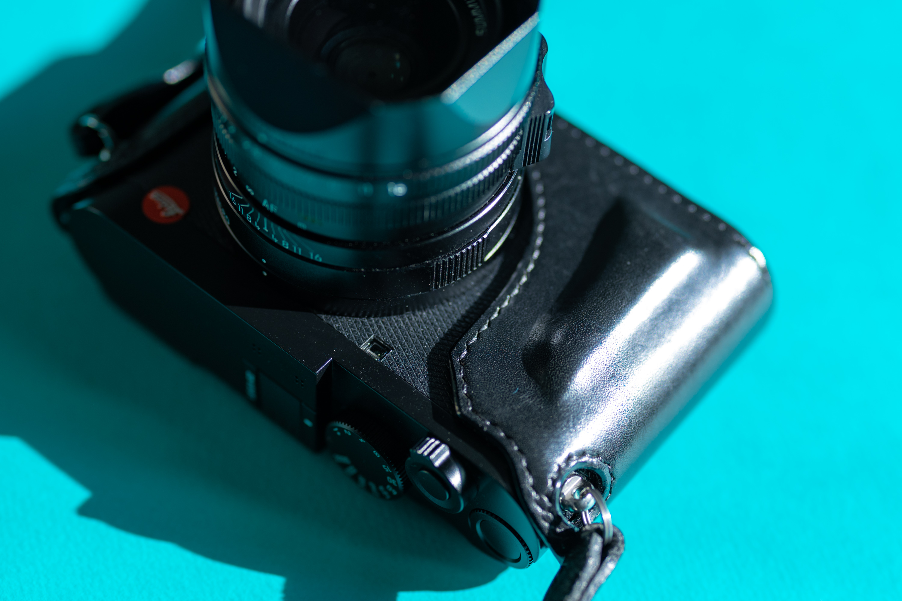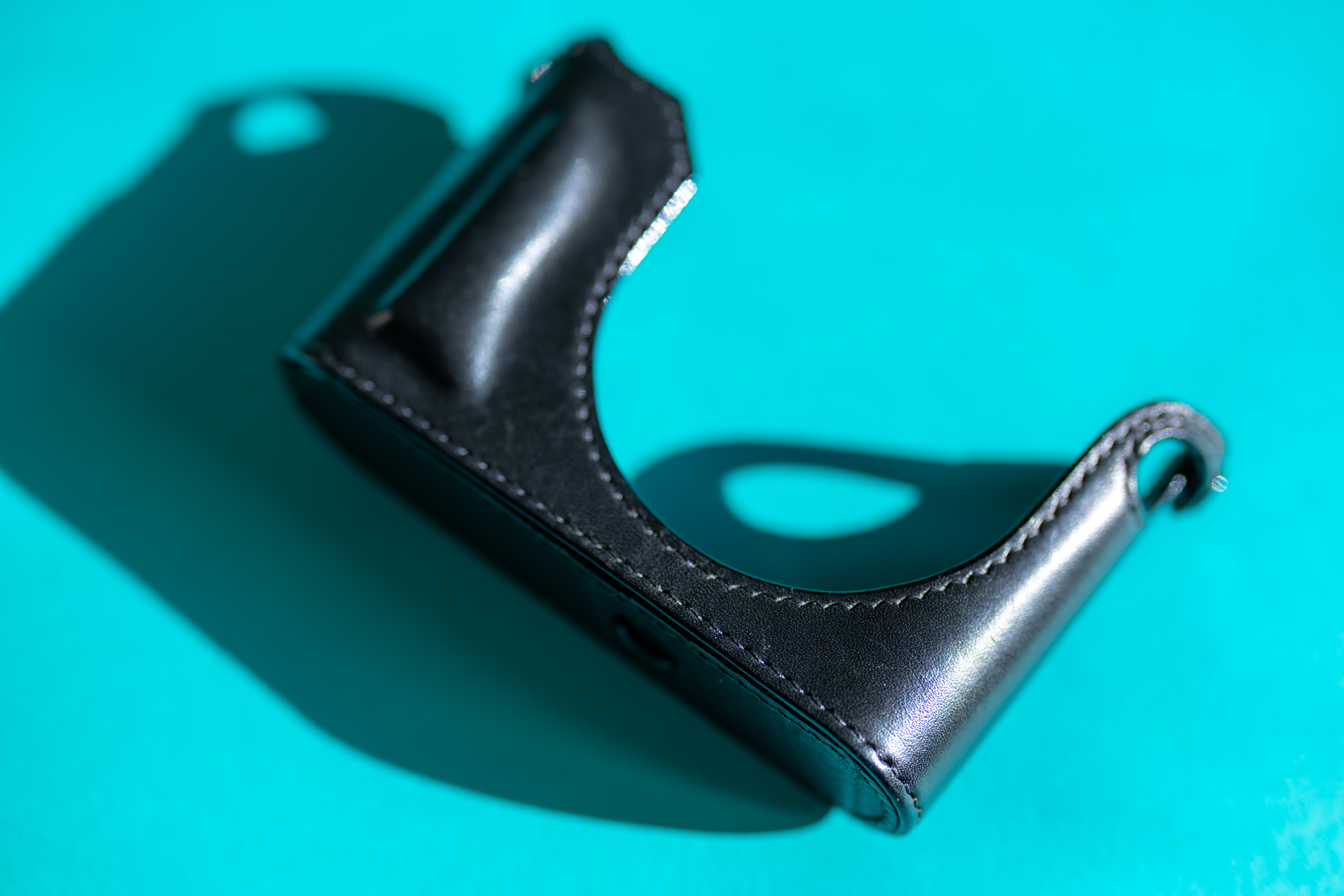 평소 제품 보호 그리고 드레스 업 목적으로 가죽 케이스를 선호합니다. 특히나 라이카 카메라는 필수인 것이 케이스 손상에 따른 감가가 매우 크거든요. 가장 접근성 좋은 케이스야 역시 정품 케이스입니다. 언젠가부터 라이카에서 제품에 맞는 케이스, 스트랩 등의 액세서리를 함께 출시하고 있습니다. 가격도 시중에 판매되는 액세서리와 얼추 맞춰서 생각보다 꽤 경쟁력이 있어요. 다만 고급 소재로 제작하는 업체/공방 제품보다는 소재와 마감이 떨어지는 편입니다. 가죽 소재로 제작했고 표면을 본체 그립과 유사한 패턴으로 마감했습니다.