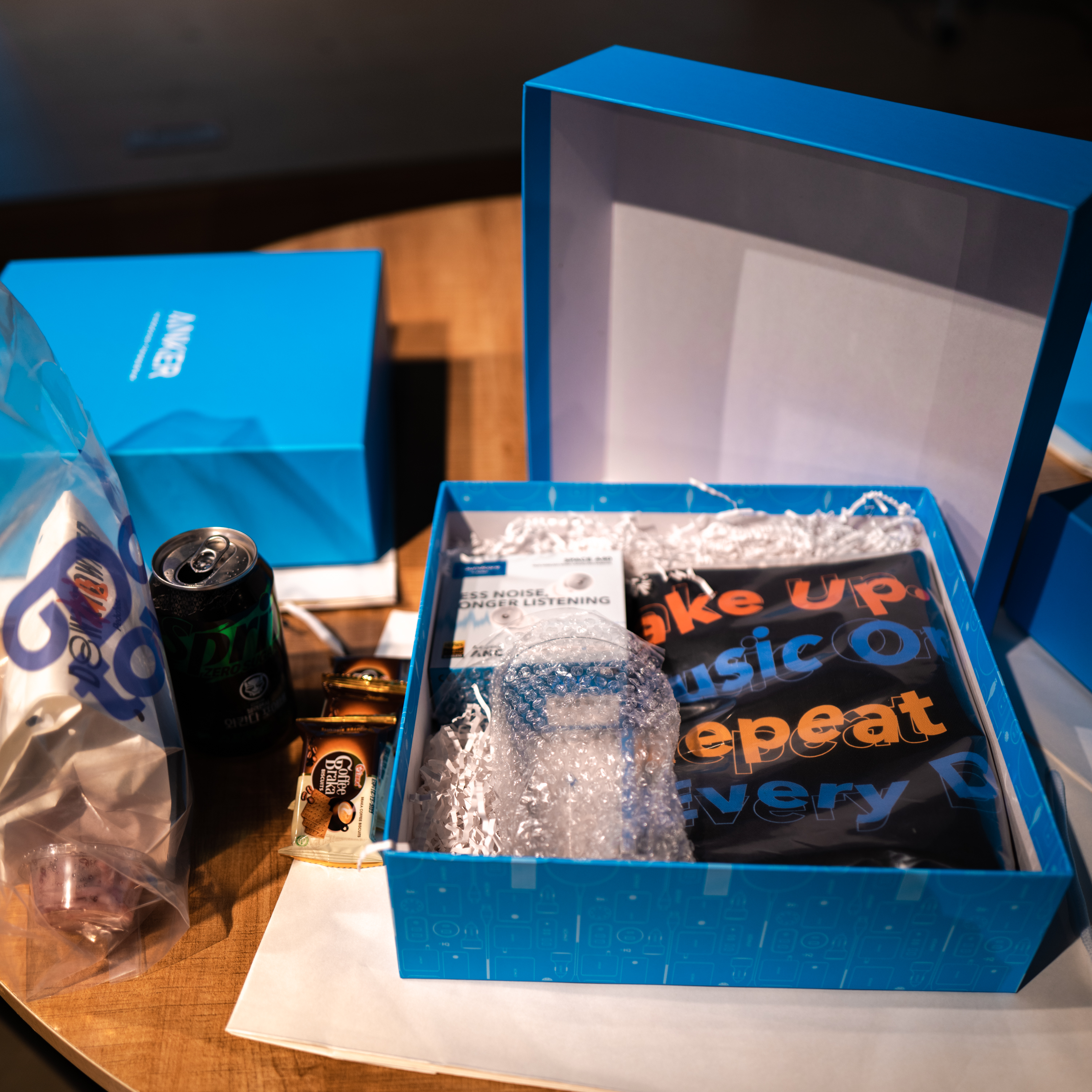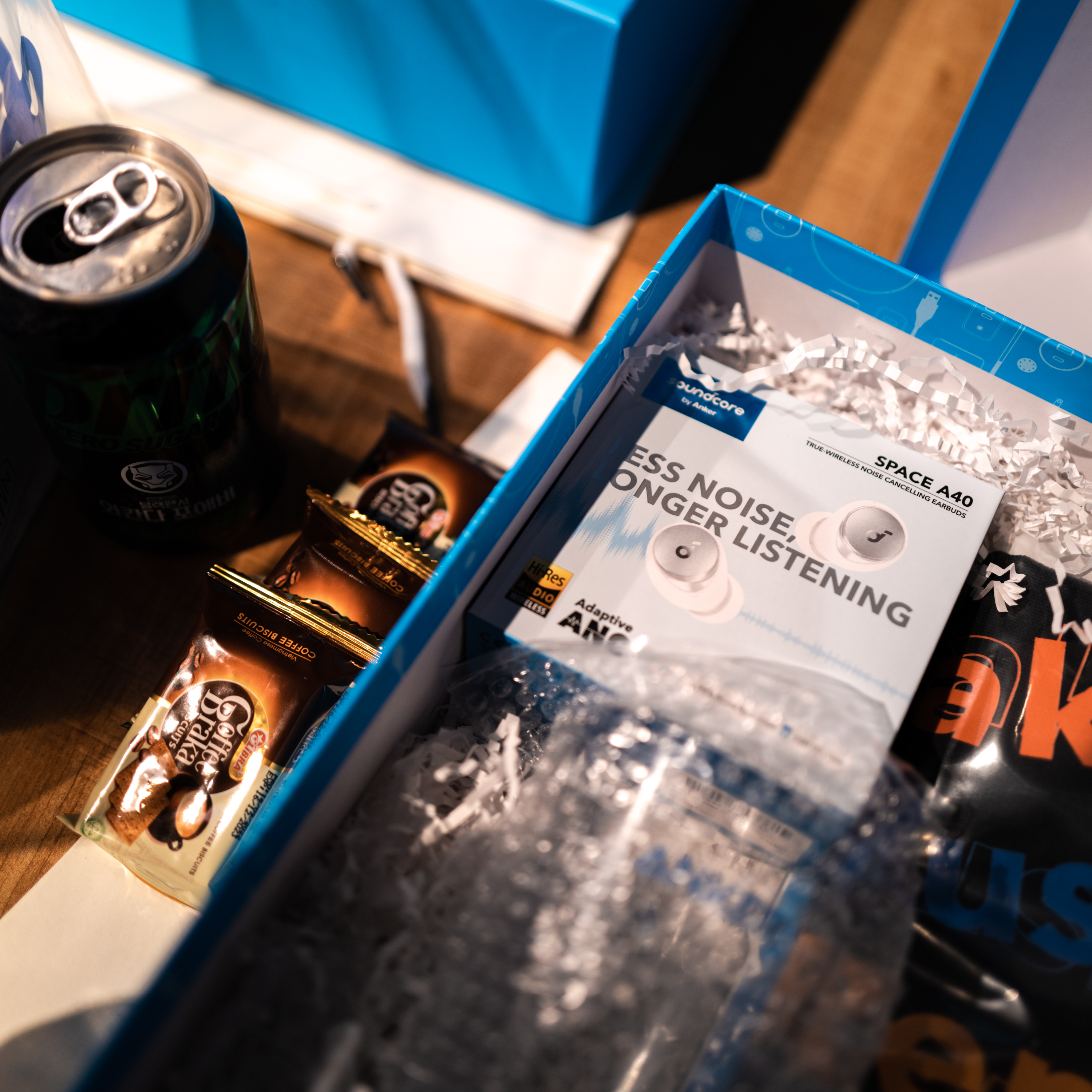 자리마다 놓인 앤커 상자를 보니 6개월 전 발대식이 기억 납니다. 마지막 모임에도 선물을 받았습니다. 최신 무선 이어폰인 스페이스 A40. 10만원대 무선 이어폰 중 음질이며 성능이 최상급이라는 후기를 많이 봤습니다. 갖고 싶었던 제품인데 선물로 받아 기쁩니다. 그 외에도 브랜드 굿즈들이 있었어요.