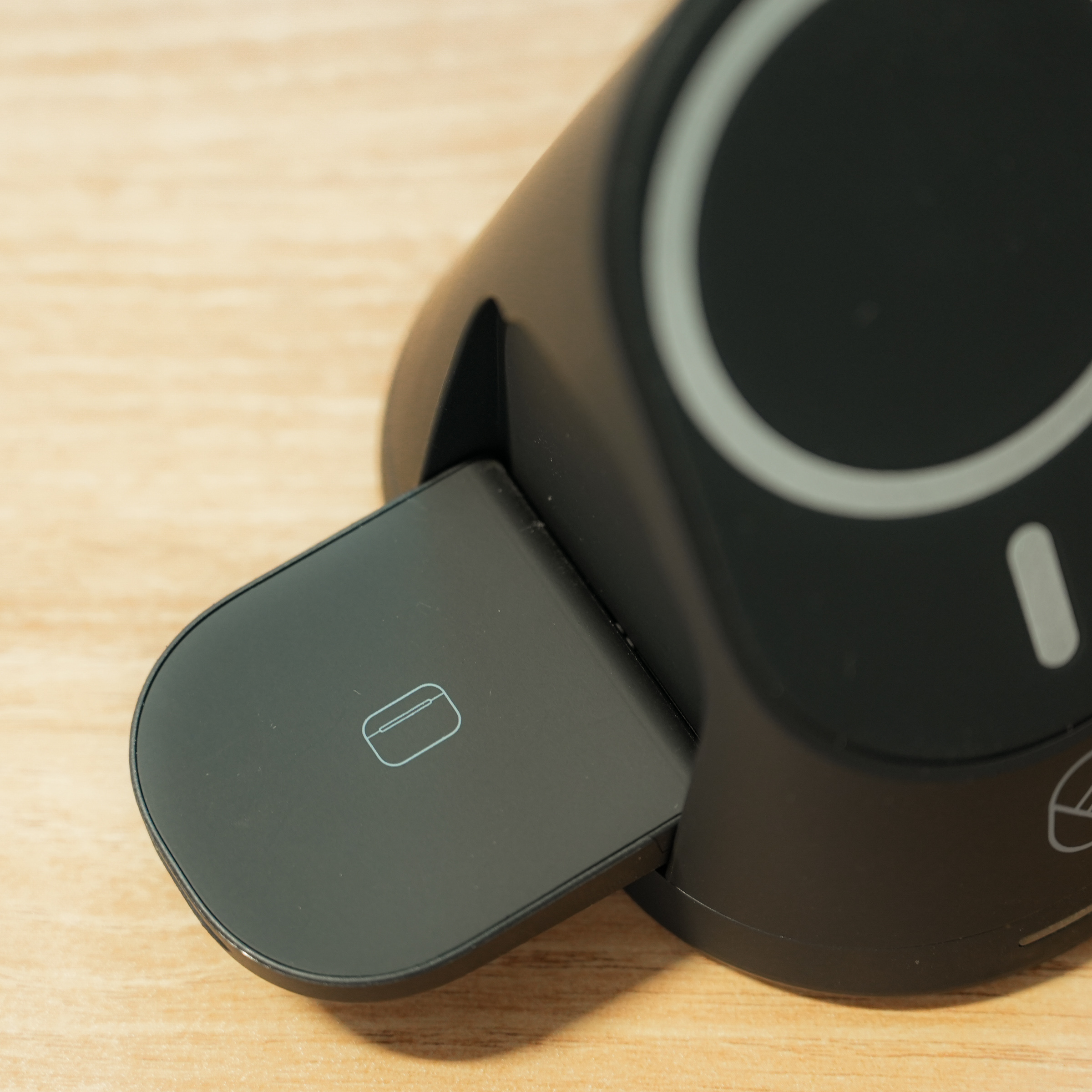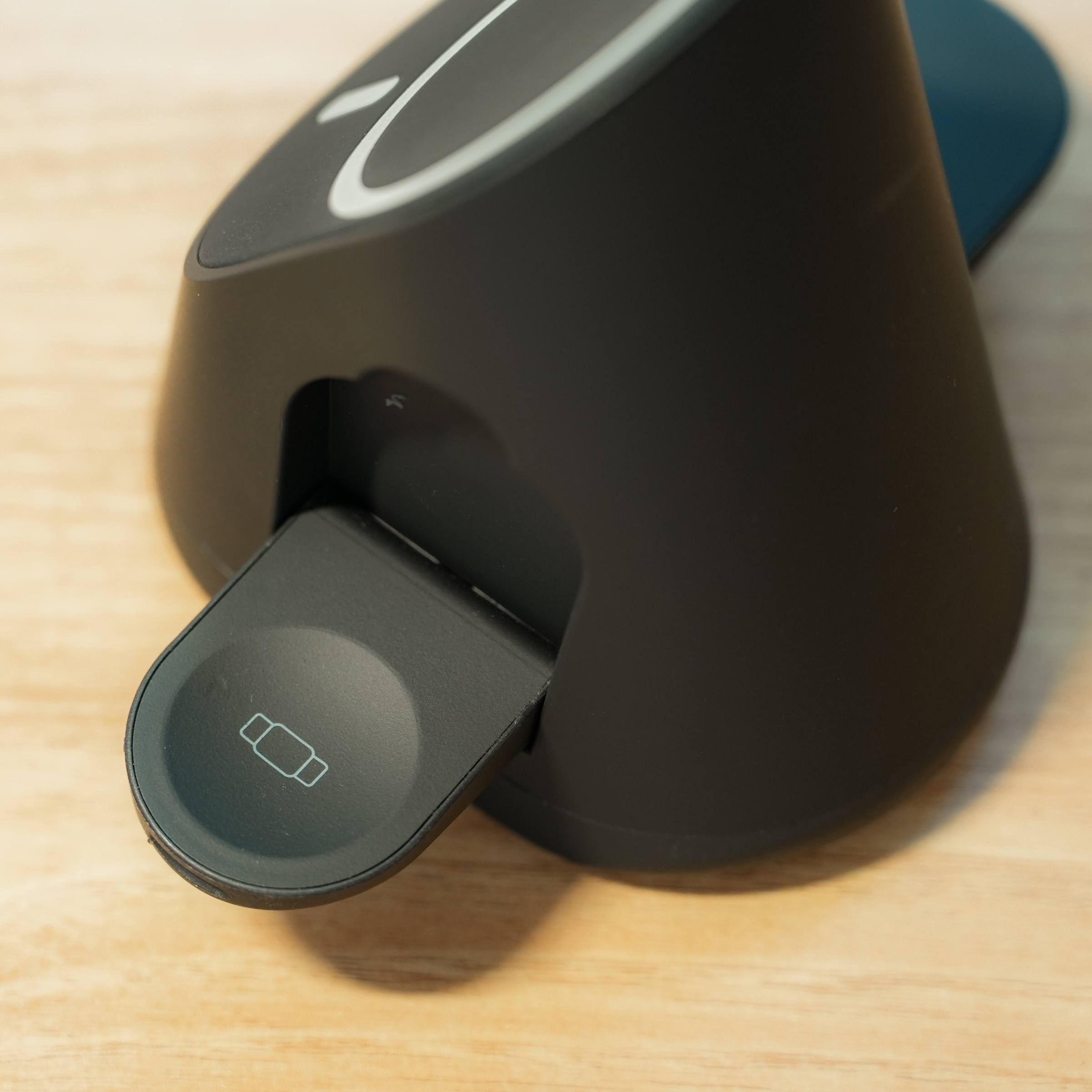 USB C 케이블은 제품 하단 포트에 연결됩니다. 단자와 케이블을 수납할 수 있는 홈이 있어 외관상 깔끔하게 정리할 수 있는 것이 마음에 듭니다. 미끄럼 방지용 고무 패킹도 배치돼 있습니다.