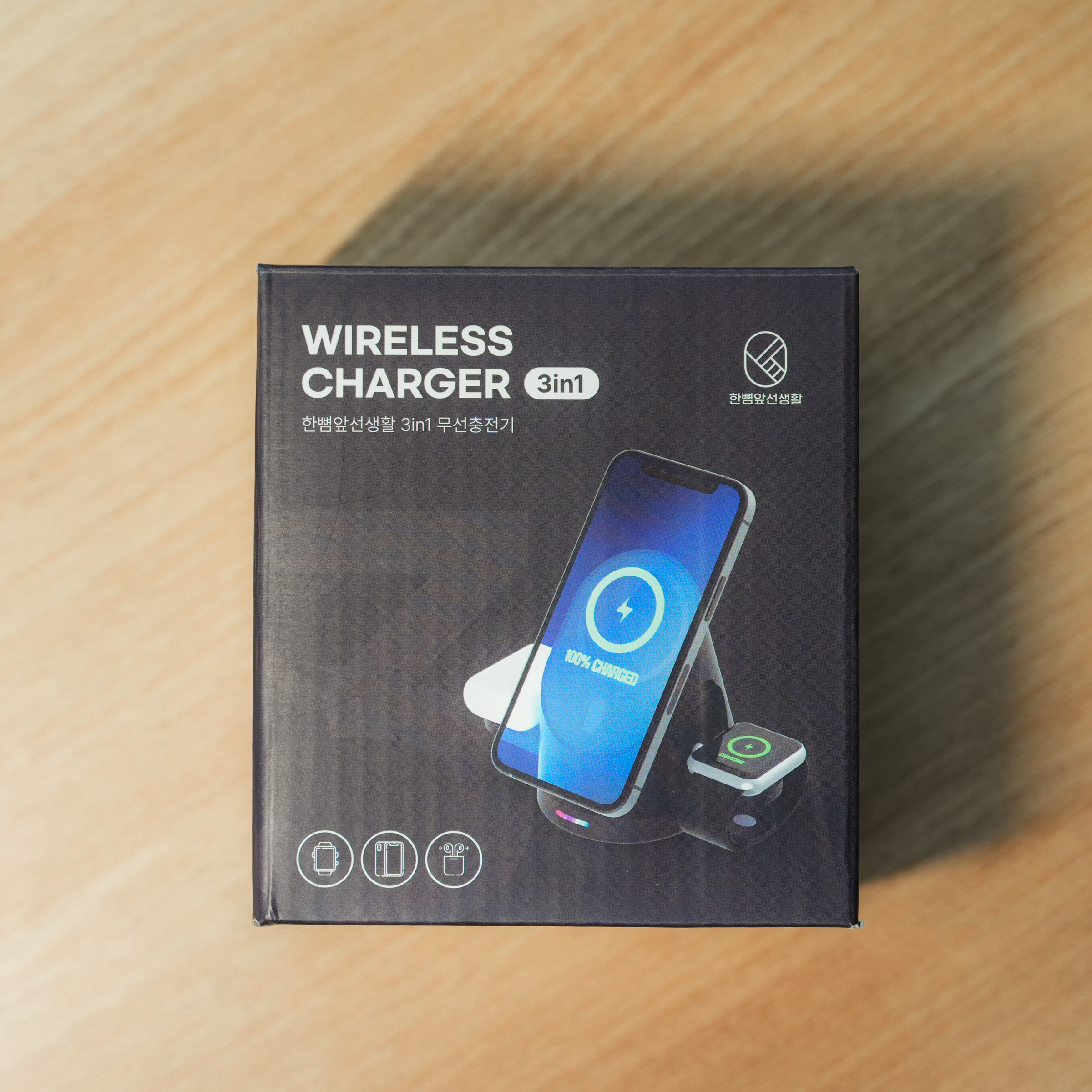 오늘 소개할 제품은 국내 제조사 한뼘앞선생활에서 출시한 3in1 무선충전기입니다. 브랜드 이름에서 친근함이 묻어납니다. 대표의 말을 빌리면 애플 제품을 다수 사용하는 본인의 불편함과 요구사항을 반영해 2019년부터 충전 제품을 기획/제작하고 있다고 합니다. 합리적인 가격으로 판매하기 위해 개발 단계부터 제조사와 협업을 했다고 하고요. MFM 인증을 받지 않은 제품에서 발생하는 발열 등의 문제를 해결하는 데 특히 신경썼다고 합니다. 그간 사용해 온 미인증 제품들이 애플워치 충전에 문제가 있어서 이후로는 인증여부를 신경쓰고 있는데 이번 제품은 대표의 자신감을 믿고 사용해보기로 했습니다.