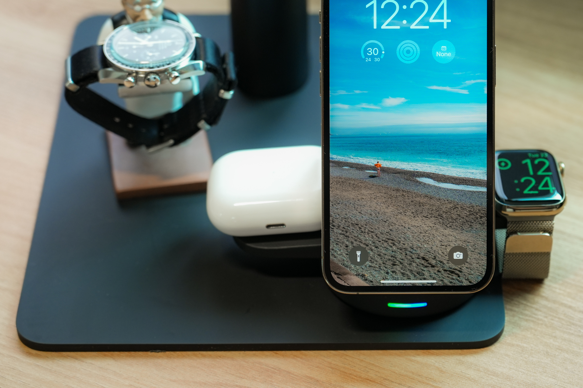 결과적으로 책상 위 공간을 효율적으로 사용할 수 있는 작은 크기. 튀지 않는 깔끔한 디자인 그리고 애플워치 충전 문제 없이 3in1 충전이 가능하다는 점에서 제품에 만족하고 있습니다. 고속 충전이 종종 아쉽고 애플워치 스트랩이 바닥에 닿는 것이 신경 쓰일 때가 있지만 장점이 더 많은 제품입니다. 제품보다 먼저 받은 한뼘앞선생활 대표의 상품에 대한 자신감과 애정을 수긍하게 됐습니다.