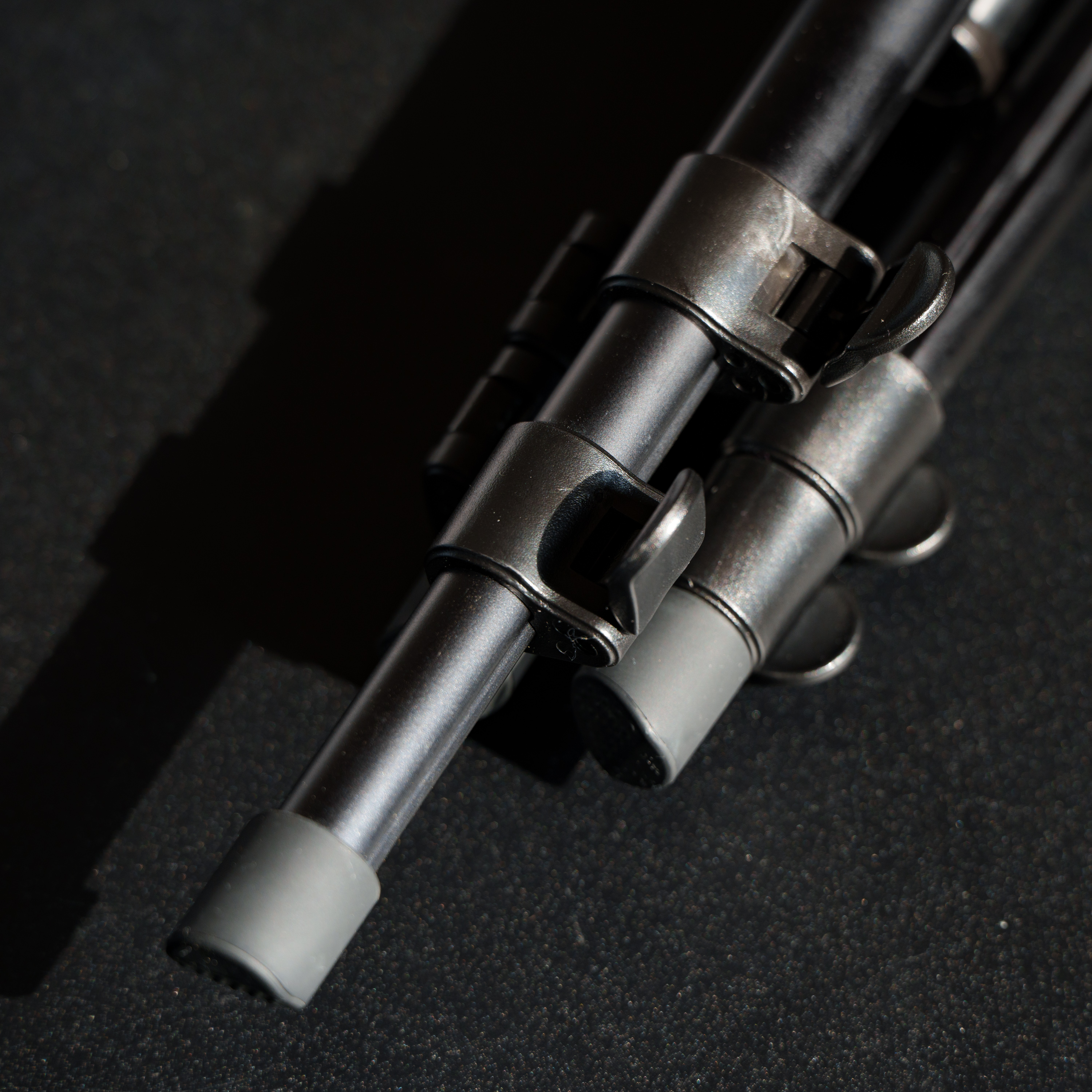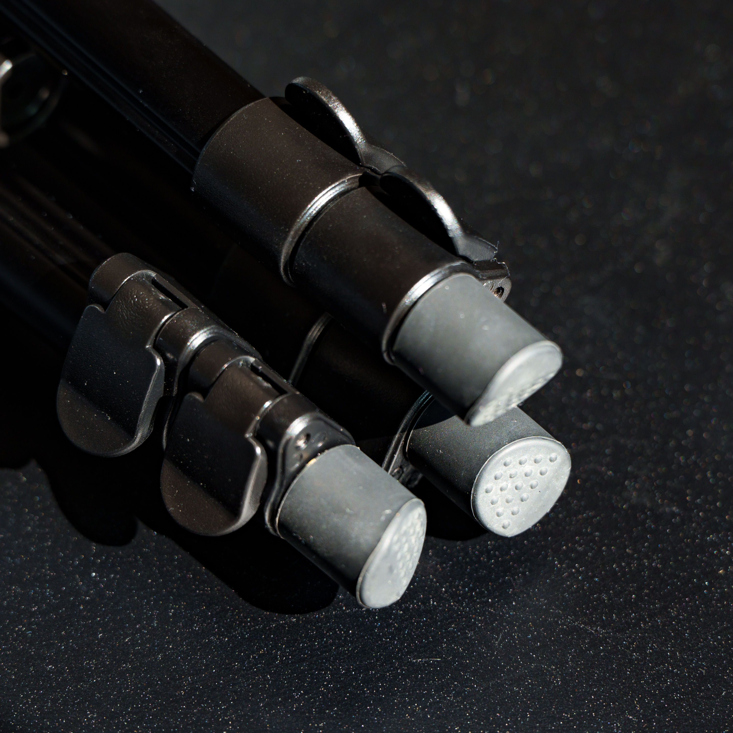 삼각대를 지지하는 끝부분은 마찰력 높은 고무 소재로 덧대여져 있습니다. 바닥면엔 요철을 둬 삼각대가 미끄러지는 것을 방지합니다. 스파이크 등 별도 액세서리는 기본 제공되지 않지만 이것만으로도 대부분의 상황에 충분히 대응할 수 있습니다.
