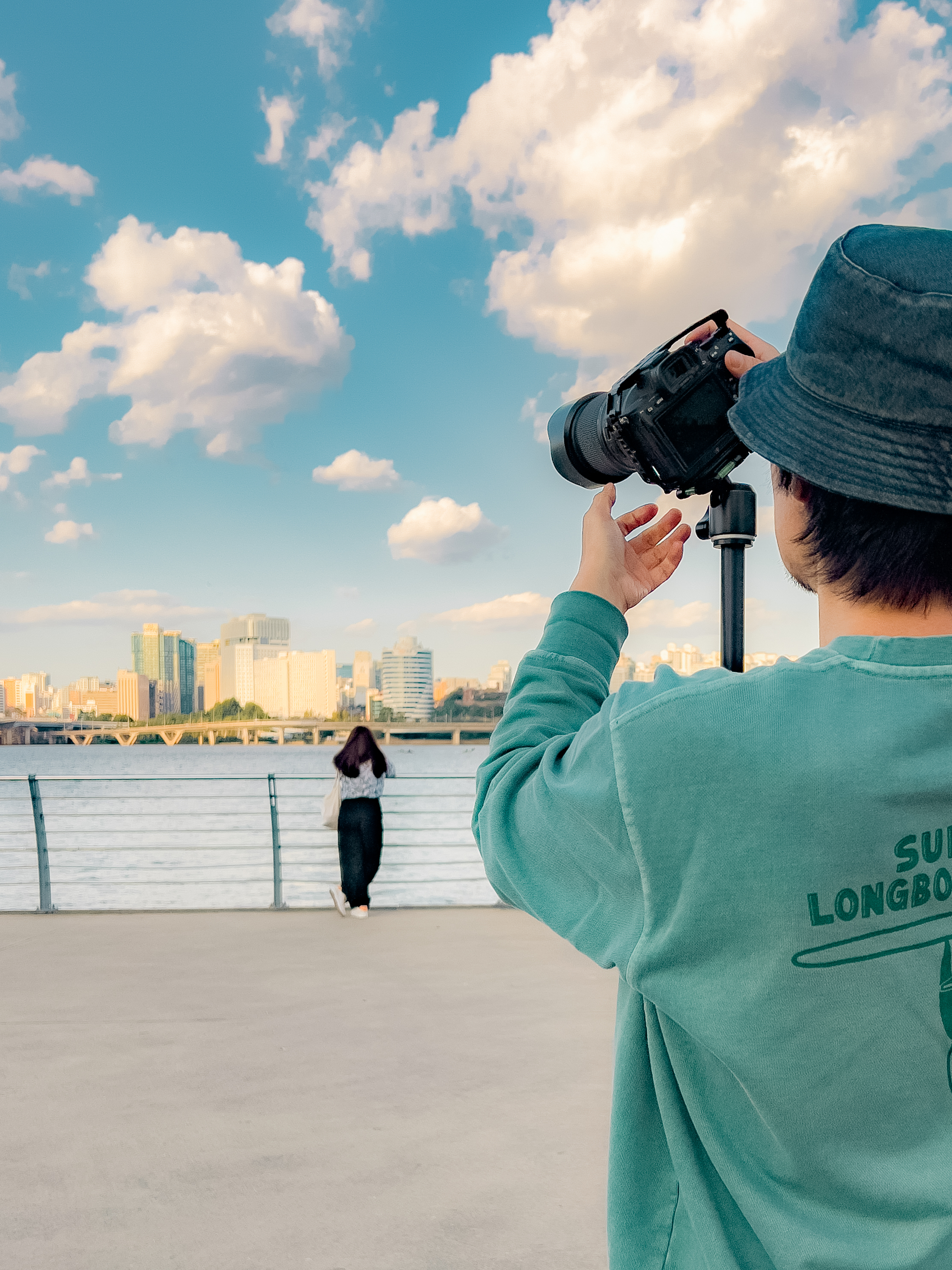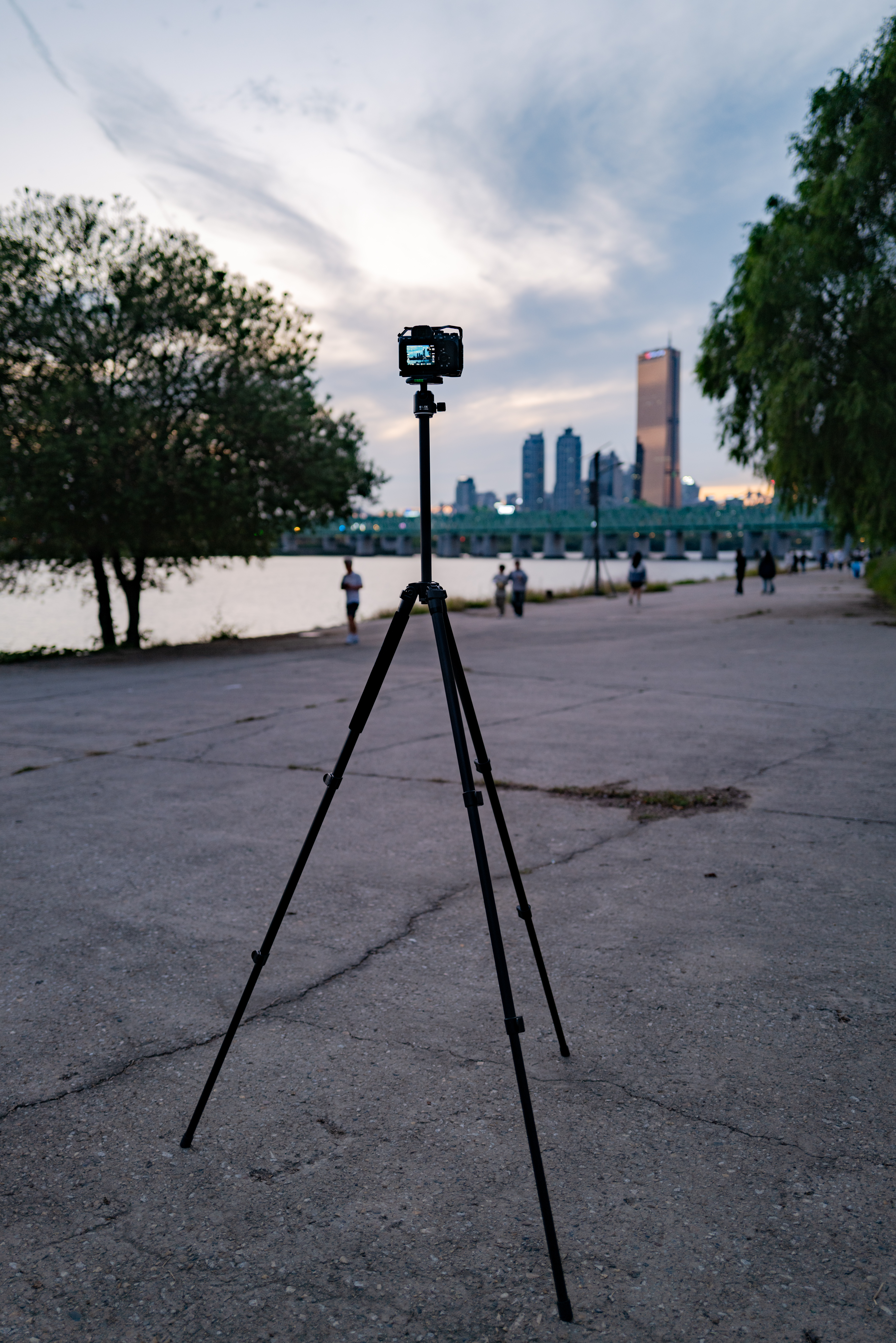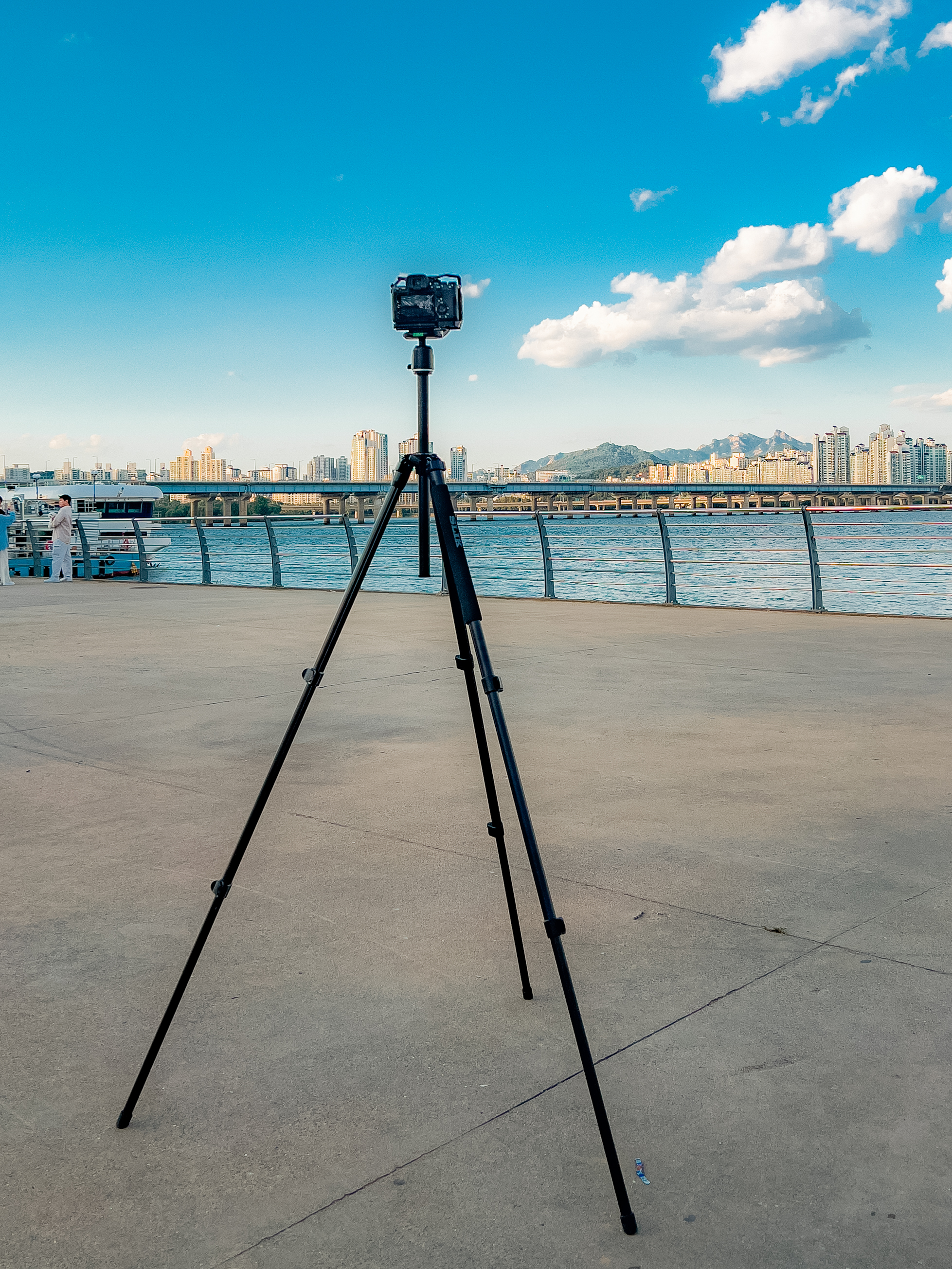 그간 여행하며 전망대나 공원 난간 앞에서 소형 삼각대를 어떻게 조금이라도 더 늘릴 수 있을지 고민한 시간이 많았는데 슬릭 ABLE 413b은 그런 고민없이 센터컬럼만 쭉 뽑아도 난간을 가뿐히 뛰어 넘습니다. 카메라 화면을 보기 위해 까치발을 들어야 할 정도로 높았어요. 낑낑대며 들고 온 보람이 있던 순간이었습니다. 사실 제가 사용 중인 카본 소재의 경량 삼각대의 무게가 1.1kg이니 둘의 차이는 약 500g인데 사용 중인 삼각대의 최대 높이가 늘 아쉬운 분이라면 어느정도 감내할 만한 차이일 수도 있겠다 싶습니다. 물론 접었을 때의 부피 차이는 꽤 나지만요.