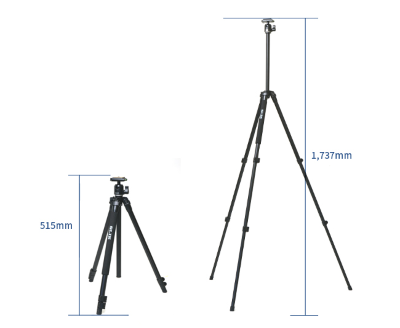 최대 높이 1.73m 촬영이 가능한 삼각대입니다. 그간 사용해 본 휴대성 위주의 삼각대들은 최대 높이가 늘 아쉬워서 여행 중 전망대 난간에 가려 아쉬울 때가 많았는데 제 키만큼 올라오는 삼각대를 사용해 보니 상쾌한 기분까지 들더군요. 다리가 3단으로 접히는 구조로 접었을 때의 길이는 약 63.5cm입니다. 최대 5kg의 장비를 지지할 수 있기 때문에 소형 미러리스카메라는 물론 DSLR, 중형 카메라와 렌즈 세트까지 올릴 수 있습니다. 무게는 1.65kg로 카본 소재를 사용한 삼각대보다는 무거운 편이지만 최대 1.73m 높이와 5kg 하중을 지원하는 삼각대 중에서는 경량화 설계가 적용된 제품입니다.