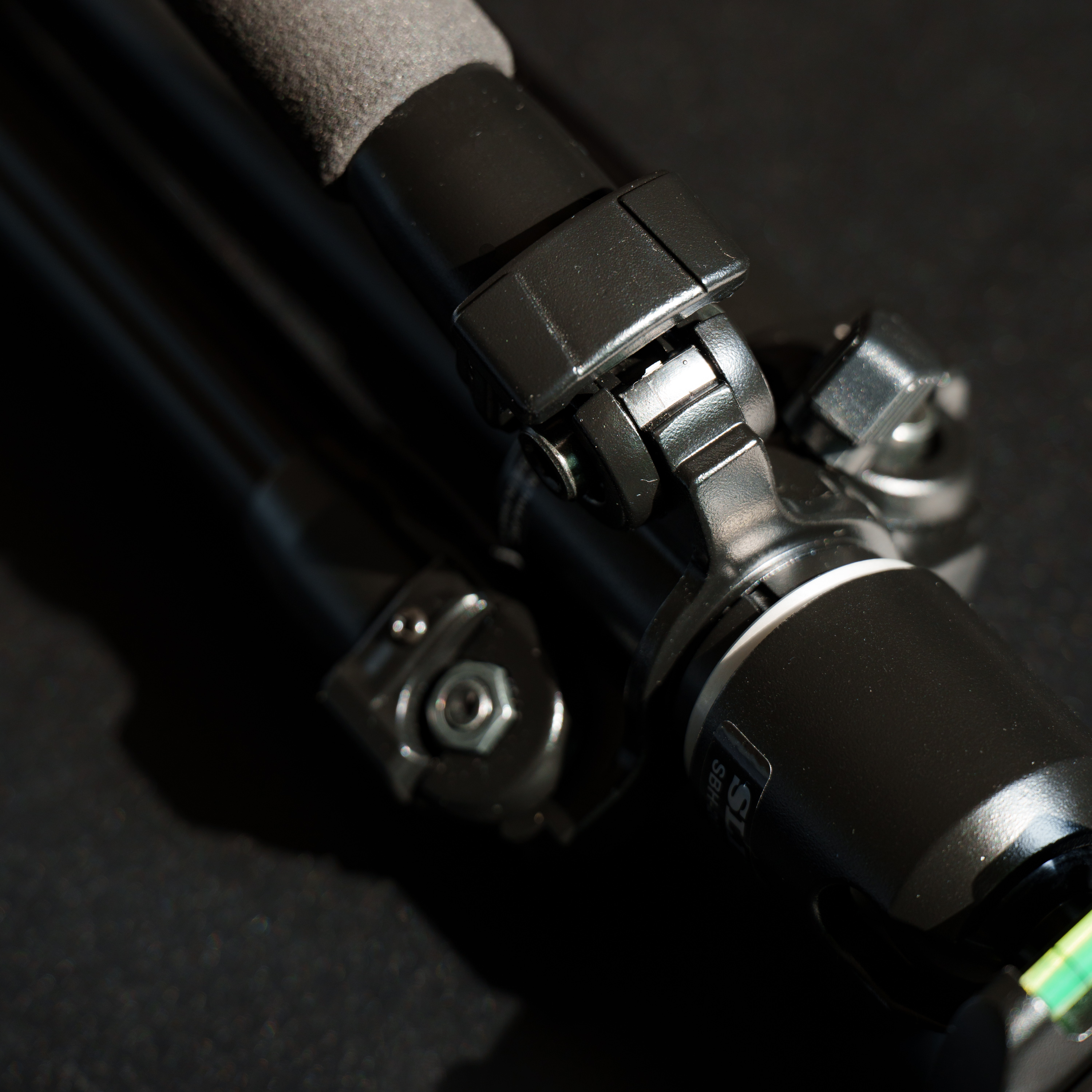 3단으로 확장되는 다리, 역시 길이가 확장되는 센터컬럼, 세 가지 각도로 조절할 수 있는 멀티 포지션 등 일반적인 삼각대의 틀을 따르고 있습니다. 다리 조절은 잠금 레버로 이뤄져 빠른 속도로 조작할 수 있습니다. 주요 파트가 메탈 소재로 되어있어 차가우면서 단단한 인상을 주고 볼헤드는 전체 크기에 비해 작은 편입니다. 경량화를 위한 구성으로 보입니다.
