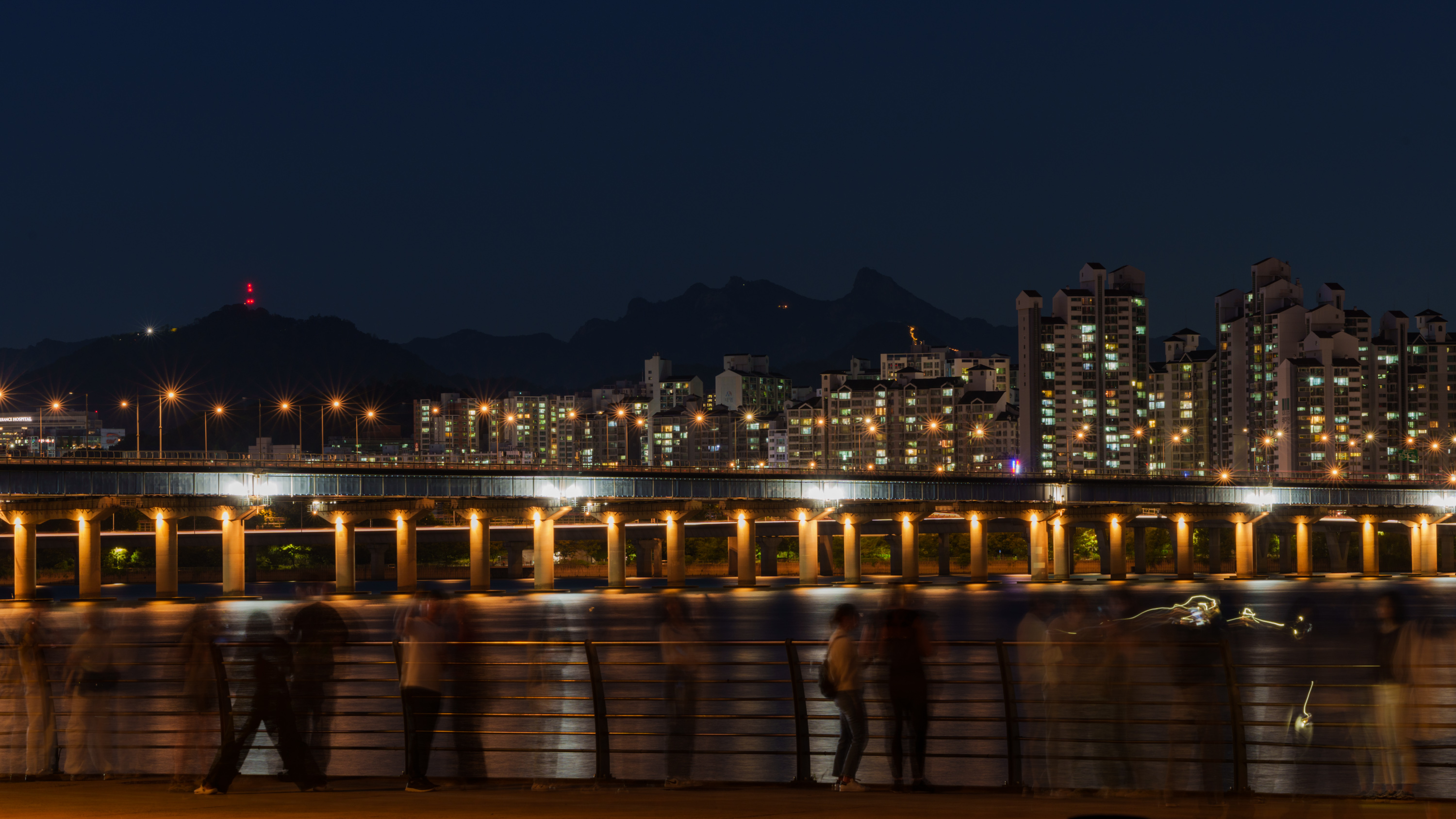 광원을 직접 촬영했을 때의 비교입니다. 광원 주변으로 빛이 부드럽게 퍼지는 모습을 볼 수 있습니다. 퍼지는 면적도 상당히 넓어졌습니다. 이에 더해 배경인 하늘과 도시 풍경의 표현 역시 명암 대비가 줄어 이미지가 전체적으로 부드러워졌습니다.