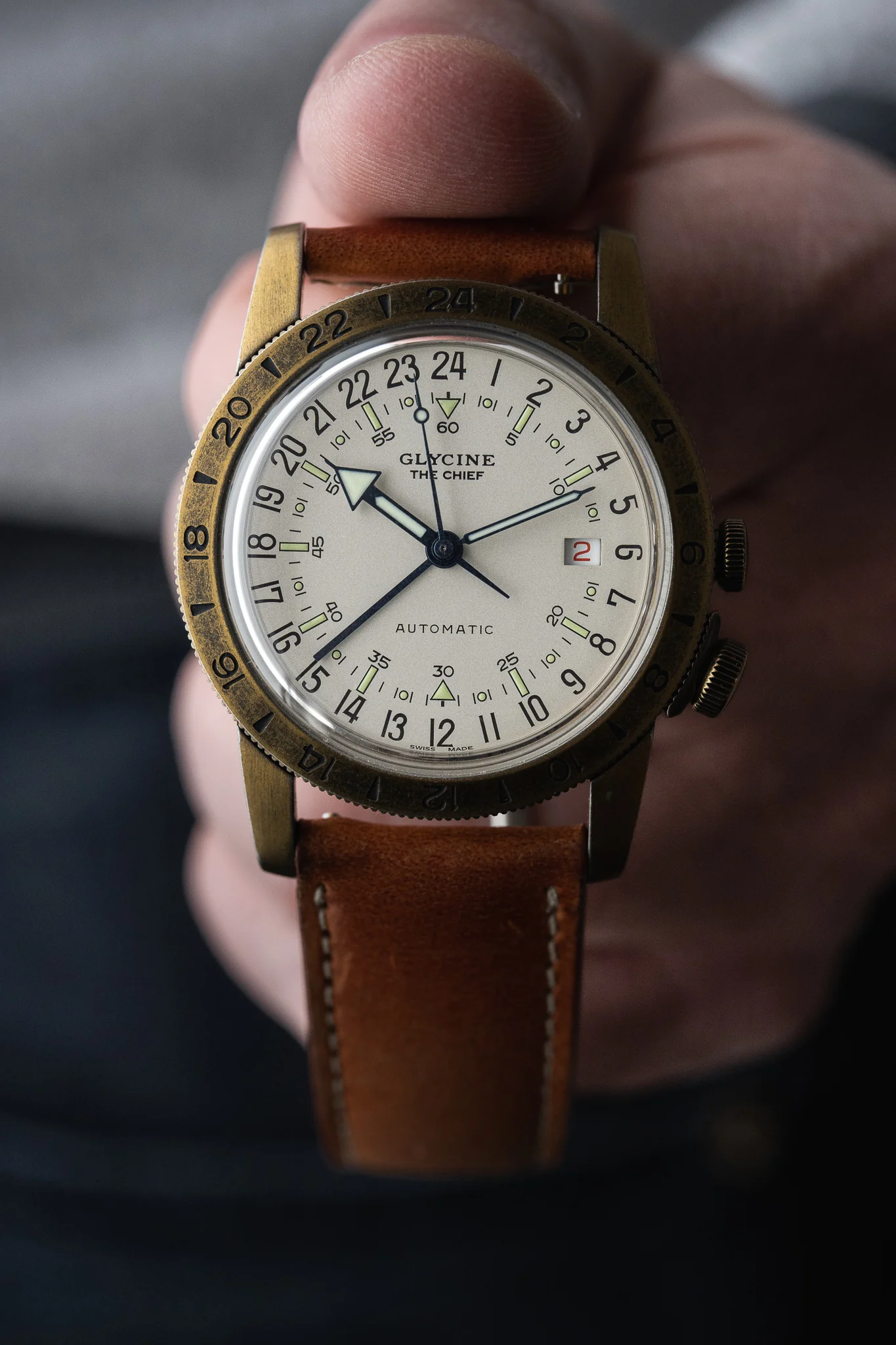 에어맨은 더 치프 40 모델로 경험해 보았습니다. 브론즈 스타일로 에이징 처리한 스테인리스 케이스에 크림색 다이얼이 매력적이었죠. 무엇보다 독특한 24시간계 시스템이 마음에 들었습니다. 스토바 플리거와 라인업이 겹친다고 판단해 곧 방출했는데 얼마 지나지 않아 후회했어요.