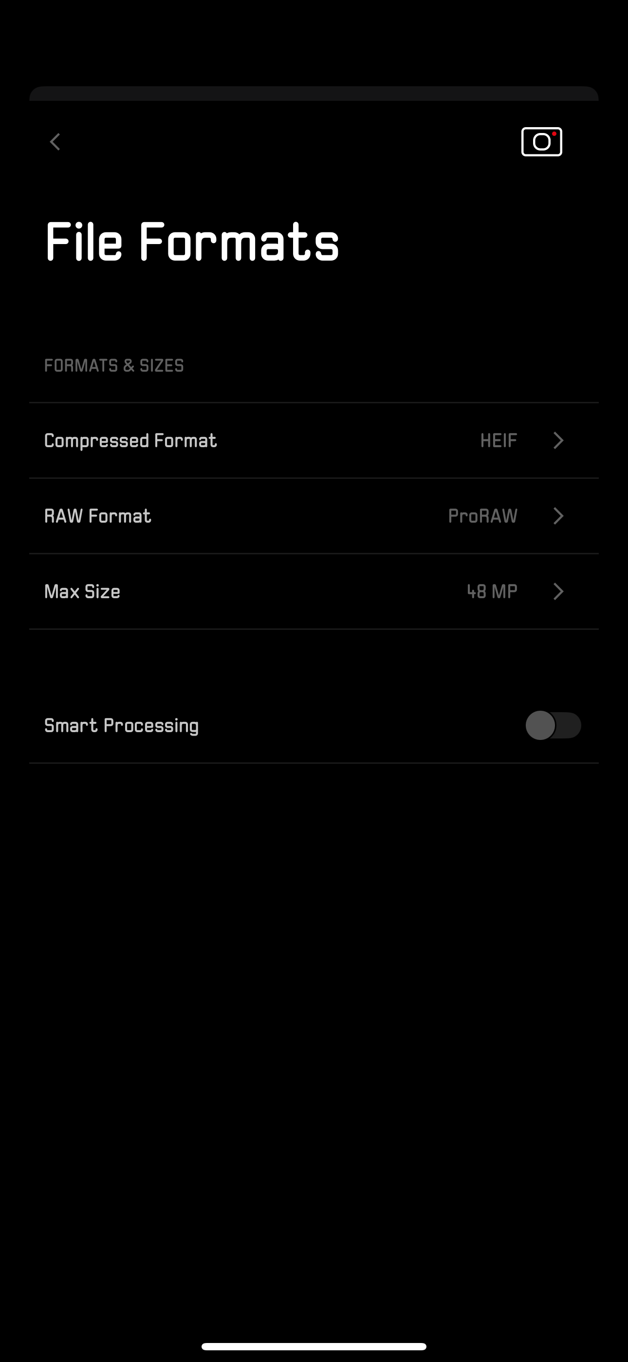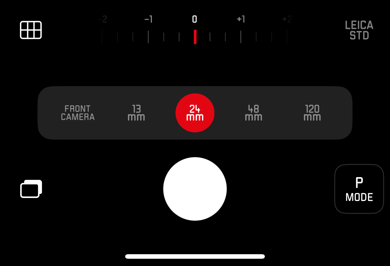 제가 사용하는 아이폰 15 프로 맥스의 하드웨어에 맞춰 13mm 초광각 카메라, 24mm 광각 카메라, 120mm 5배 망원 카메라를 선택할 수 있도록 했습니다. 2배 디지털 줌에 해당하는 48mm 카메라도 둔 게 인상적입니다. 4개의 초점거리를 전환할 수 있도록 했고 추가로 줌을 사용하는 것은 불가능합니다. 손가락을 이용한 핀치 투 줌이 비활성화 되는 것이죠. 단렌즈 중심의 라이카 M 시리즈를 생각나게 합니다. 촬영 모드는 P모드와 A모드가 제공됩니다. 일반적인 카메라에서 P모드는 Program을 뜻하지만 이 앱에서는 Photo를 뜻하는 것 같네요. A 모드는 Aperture, 조리개 우선 모드로 아이폰/갤럭시의 인물 모드와 비슷한 배경 흐림 효과가 더해집니다.