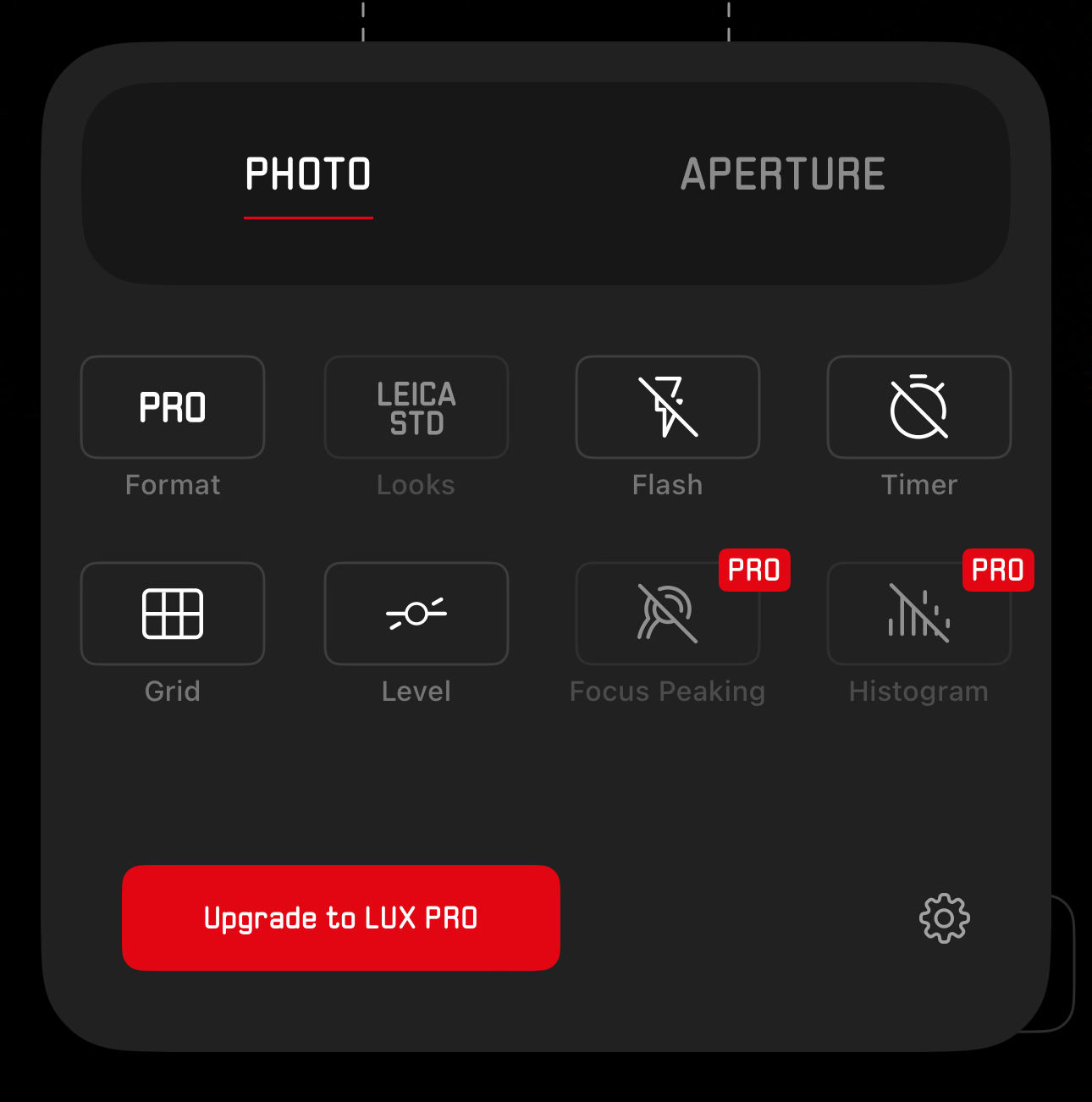 앱 이름은 라이카 룩스(LEICA LUX). 사용자라면 익숙한, ‘빛’을 의미하는 명칭입니다. 설치는 무료고 일부 기능을 무료로 사용할 수 있습니다. 앱을 실행하니 검은 화면에 빨간 라이카 로고가 나오는데, 왠지 가슴이 두근. 많은 사람들이 동경하는 라이카 스타일의 사진을 찍을 수 있을지 기대됩니다. 저도 그런 생각으로 설치해서 잠시 사용해 봤습니다.