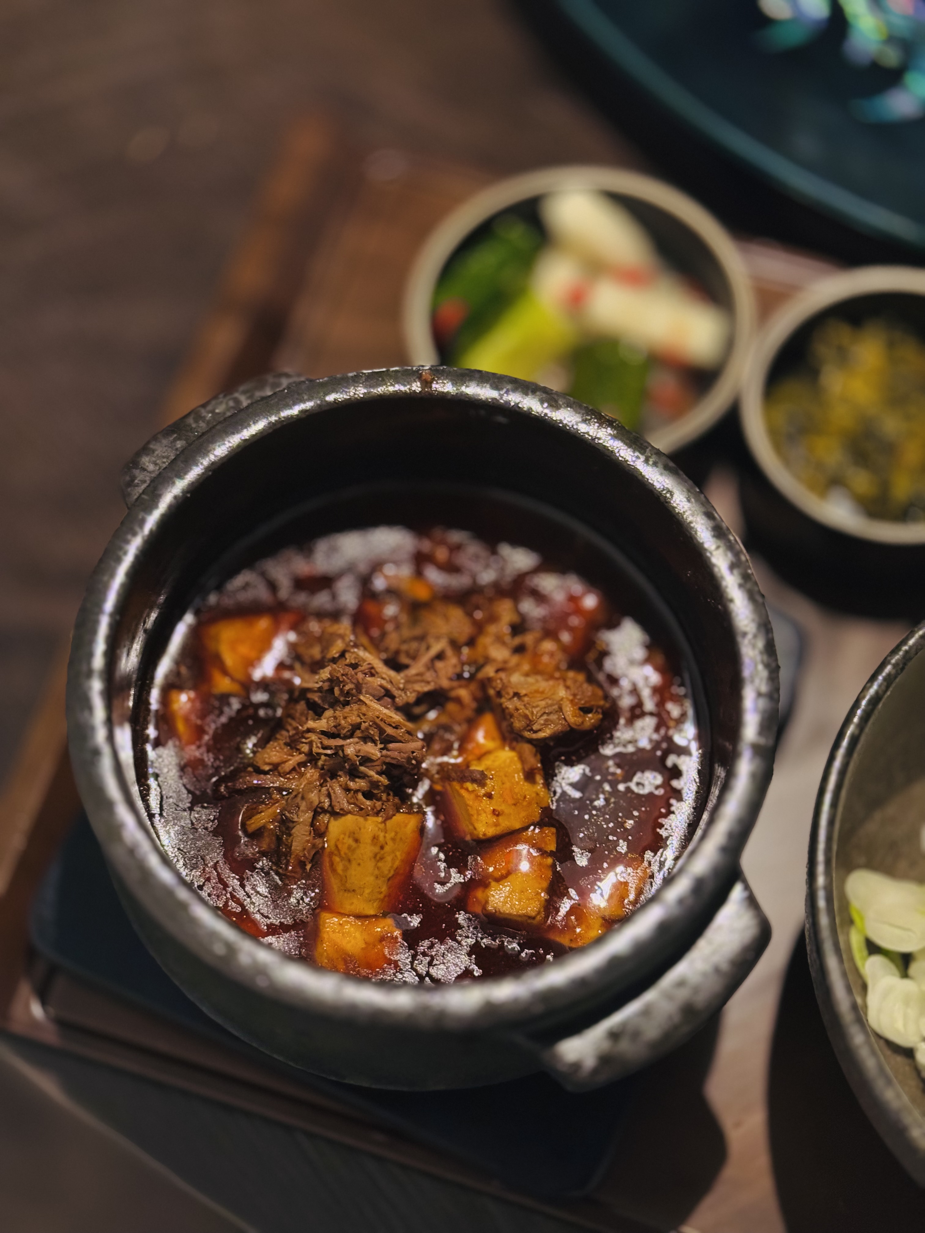 마파두부를 좋아해서 종종 먹는데 이집 우육 마파두부는 맛이 완전히 다릅니다. 사진으로 보는 것처럼 맵고 칼칼한 맛이 강해서 맵찔이들에겐 좀 힘들 수 있어요. 걸죽한 소스와 깍뚝썰기 한 두부는 다른 마파두부와 동일합니다. 그 위에 찢은 소고기를 올렸습니다.