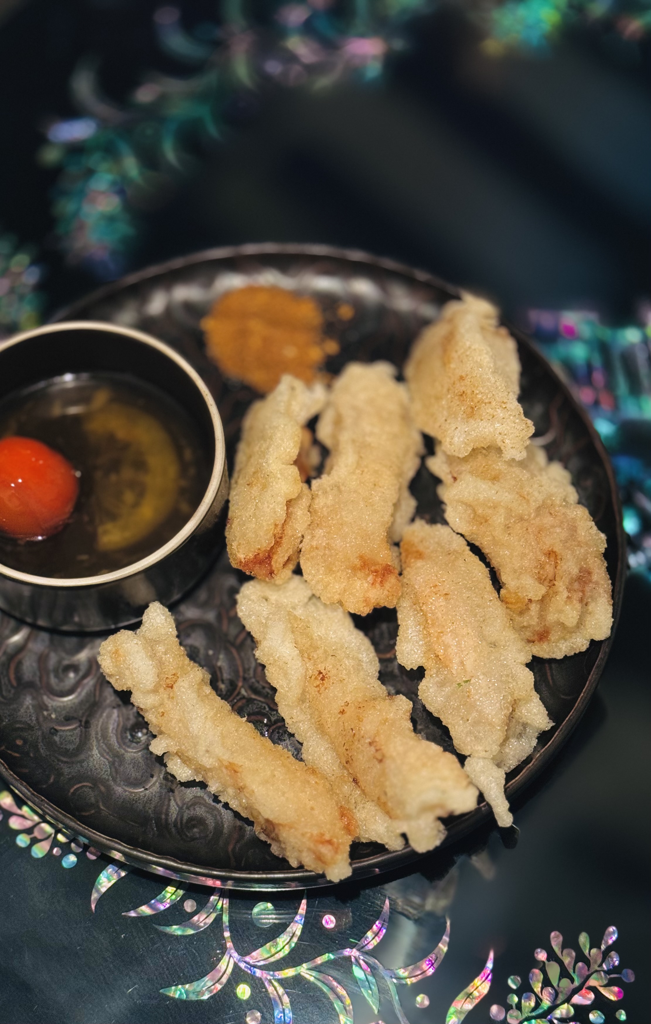 사이드 메뉴인 탕수육. 양은 적지만 역시 맛은 꽤 좋습니다. 식사가 끝날 때까지 바삭함이 느껴질 정도로 튀김 상태가 좋았고 흔히 양고기에 곁들이는 즈란에 고기 튀김을 먹는 맛도 새로웠습니다. 찍어먹는 소스는 일반 탕수육 소스 대비 단맛이 적고 신맛이 강해서 안주용으로 좋다는 생각이 들었어요. 양이 적은 것 빼고는 합격. -찍먹인 것도 합격-