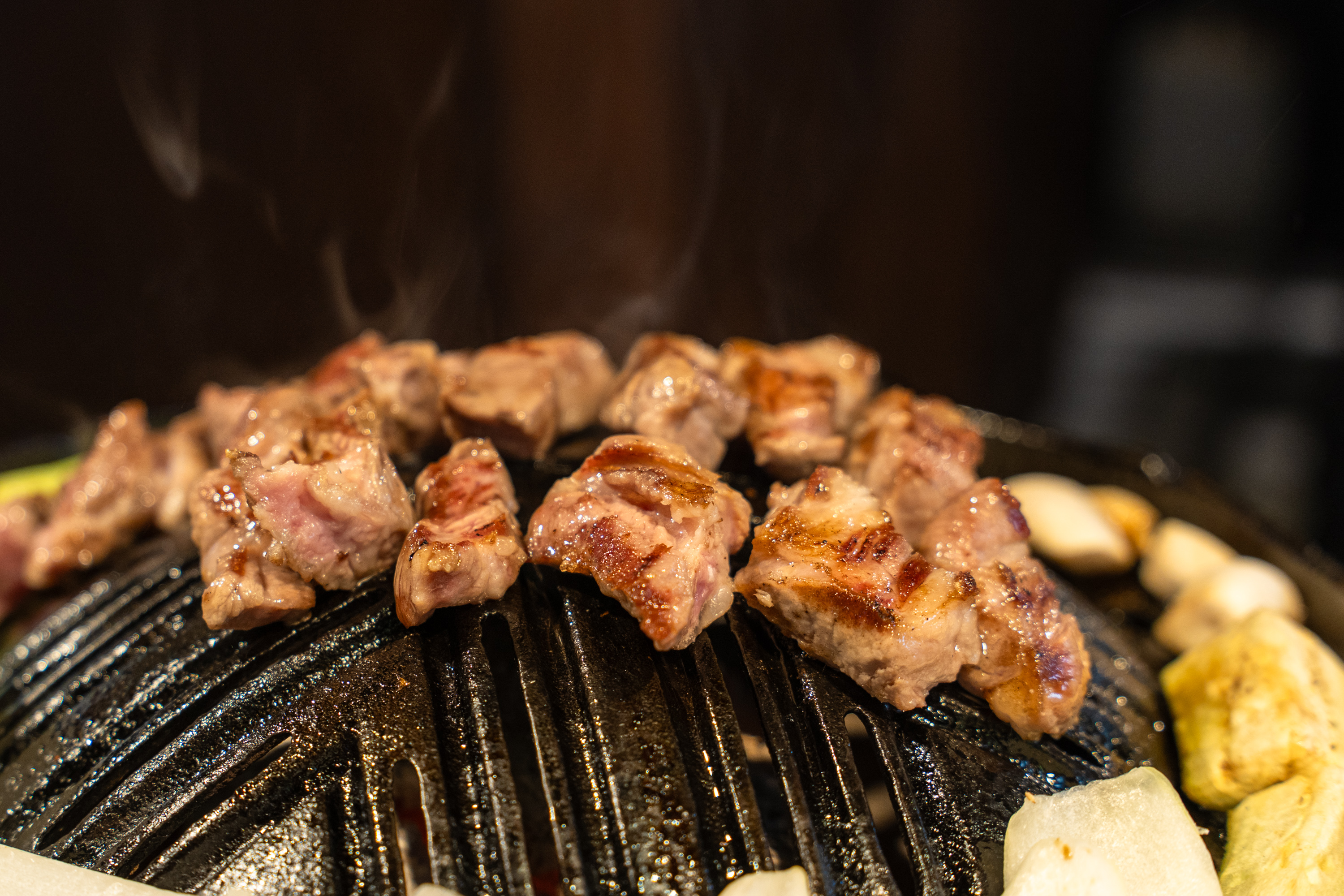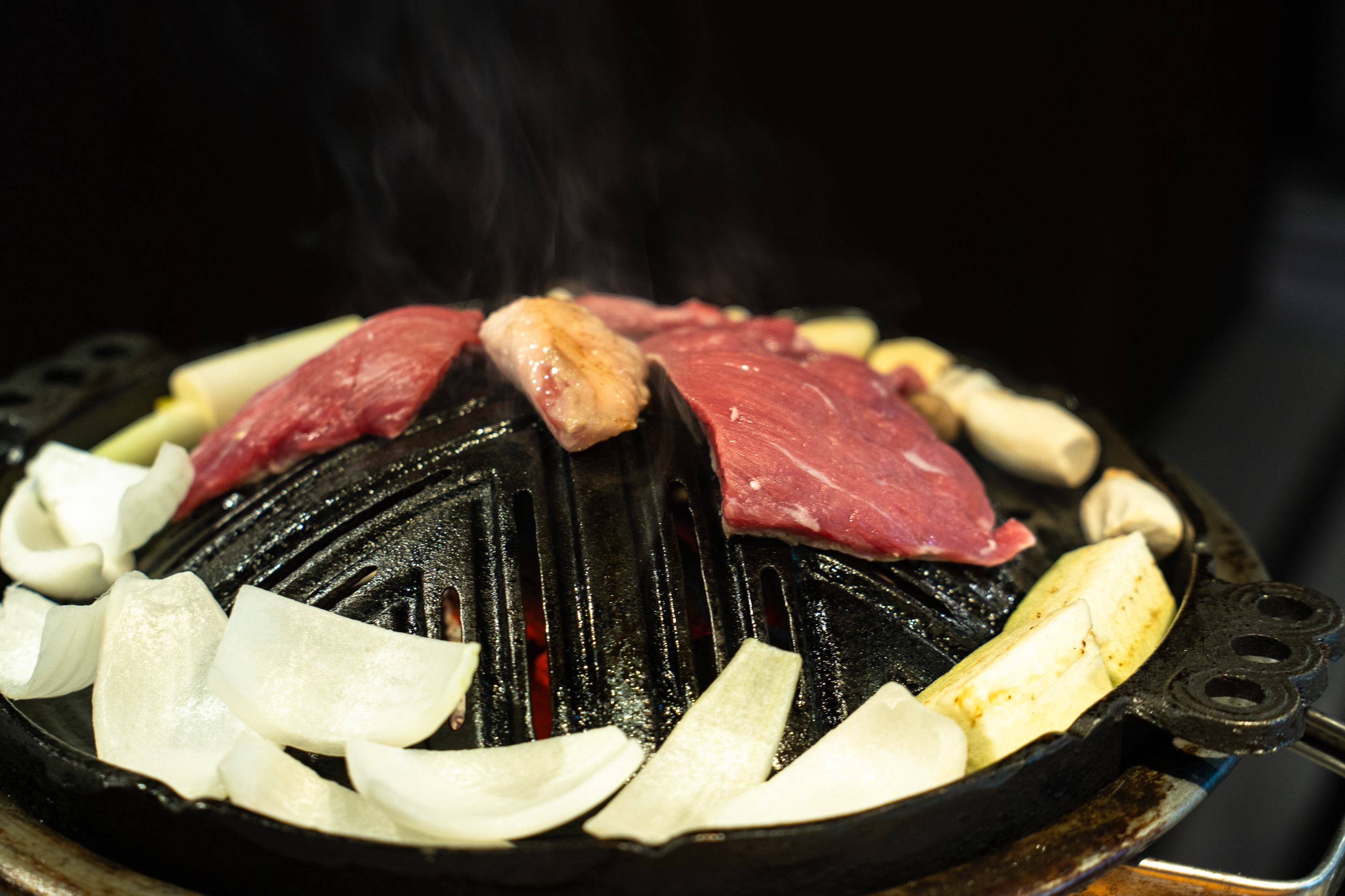 일반적인 양갈비집과 같은 방식입니다. 바 테이블에 팬이 놓여있고 직원들이 고기부터 채소까지 일일이 구워주는 방식. 테이블에 서빙 해 주는 곳도 가봤지만 역시 눈 앞에서 보는 즐거움, 구워지자 마자 먹는 맛과는 비교할 수 없습니다. 이태원이었나, 다 구워진 양고기를 먹으니 금방 식고 냄새도 좀 났고.