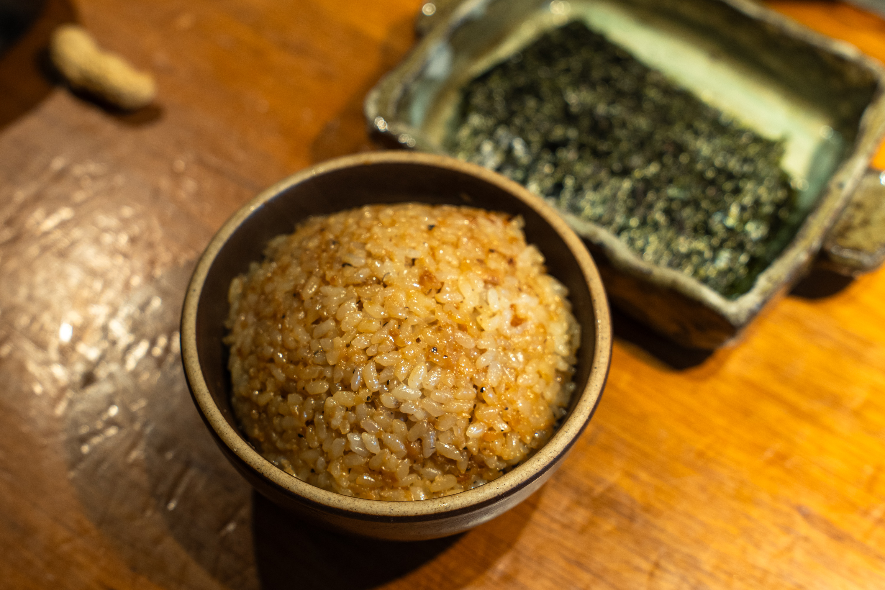 이 집 사이드 메뉴 중 가장 유명한 마늘밥. 감칠맛 강한 양념이 밴 밥을 김에 싸서 먹습니다. 고시히카리 쌀로 지은 밥 자체가 맛이 좋습니다. 역시 고기에는 탄수화물이 있어야죠.