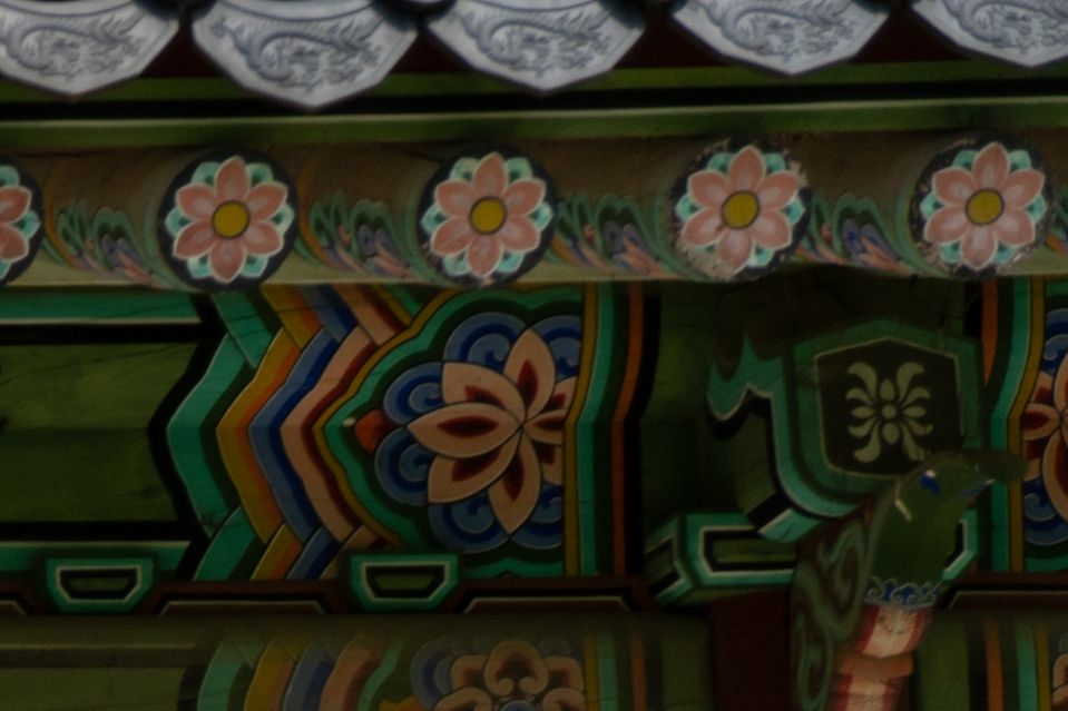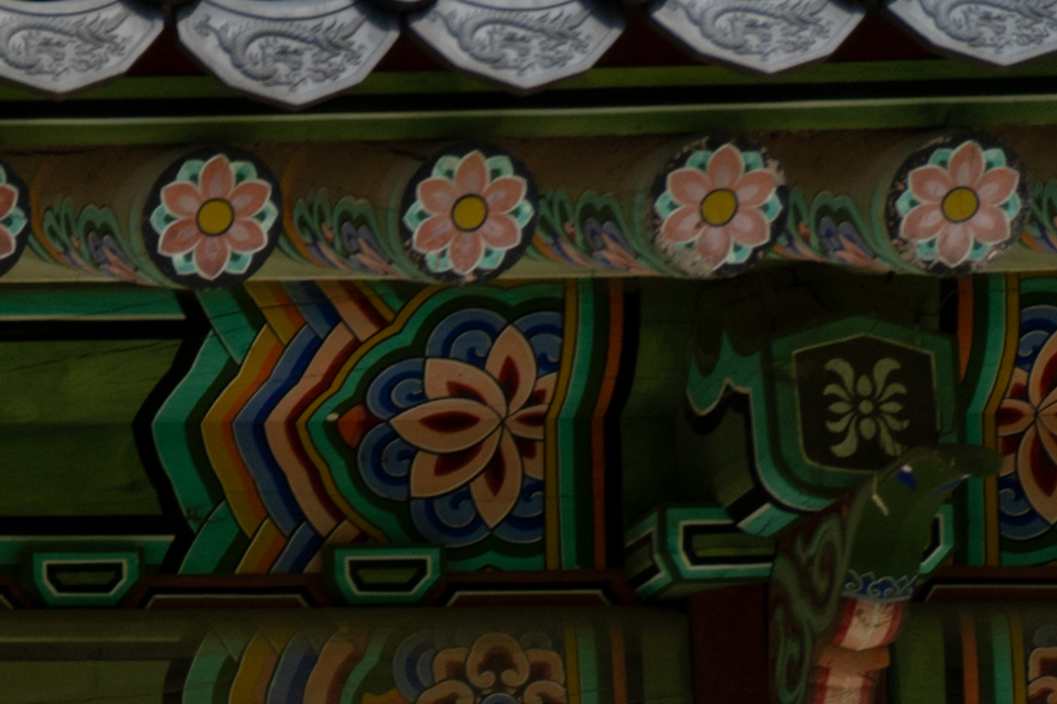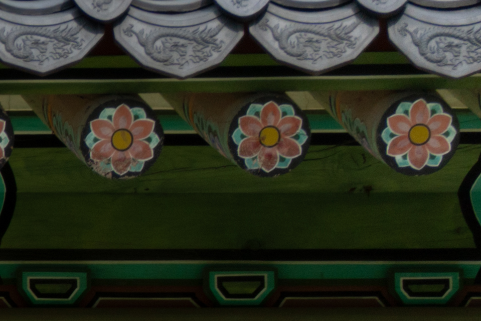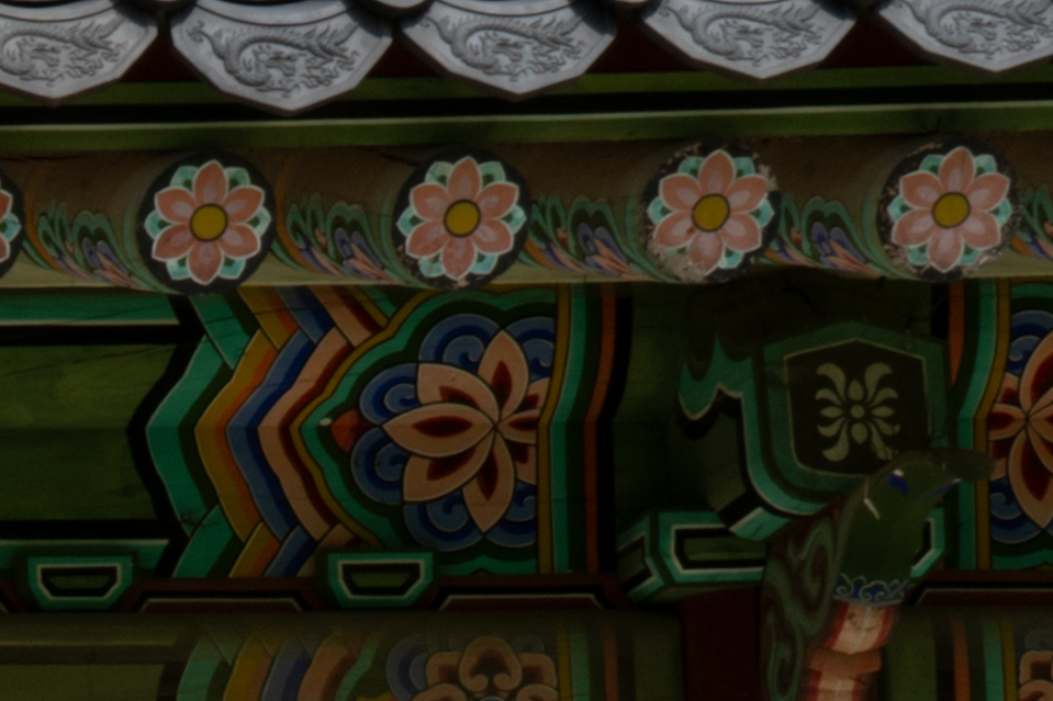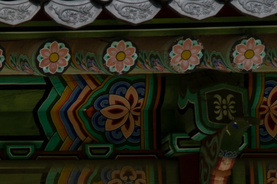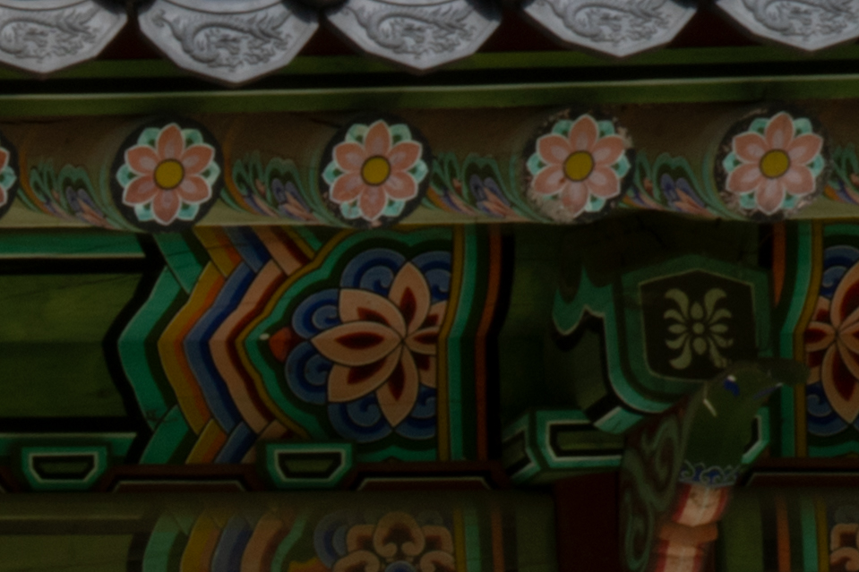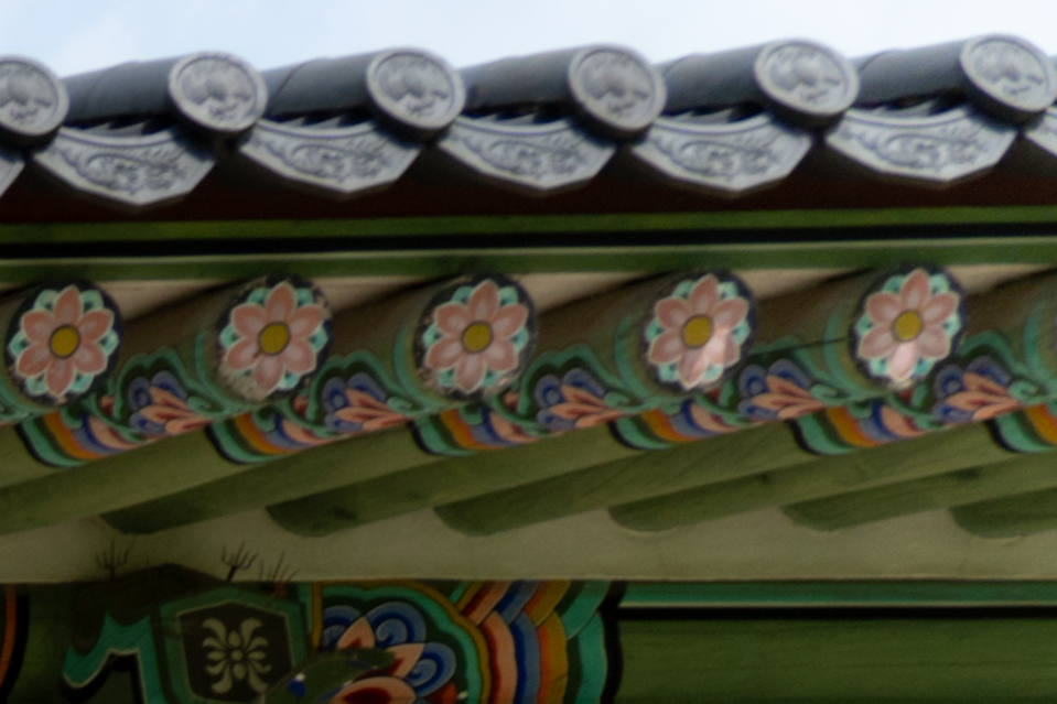 아래는 17mm 최대 광각, 광학 2배 줌에 해당 하는 35mm, 70mm 최대 망원 초점거리에서 조리개 값에 따른 해상력을 비교해 본 것입니다. 라이트룸의 렌즈 프로파일을 적용한 최종 결과물 기준입니다. 공통적으로 F2.8 최대 개방에서 약간의 해상력 저하가 있지만 그 차이가 크지 않습니다. 35/70mm에서는 중심부 못지 않게 주변부 해상력이 좋은 편입니다.