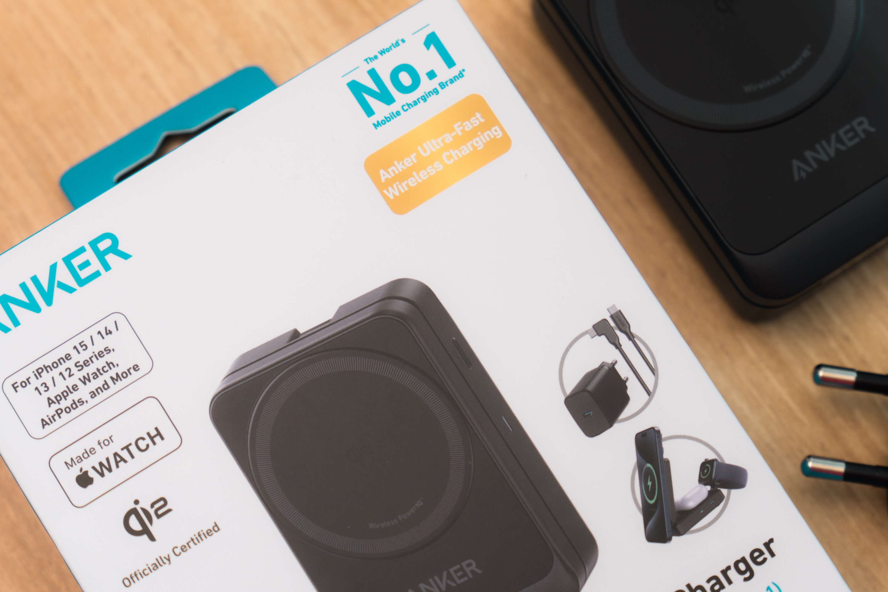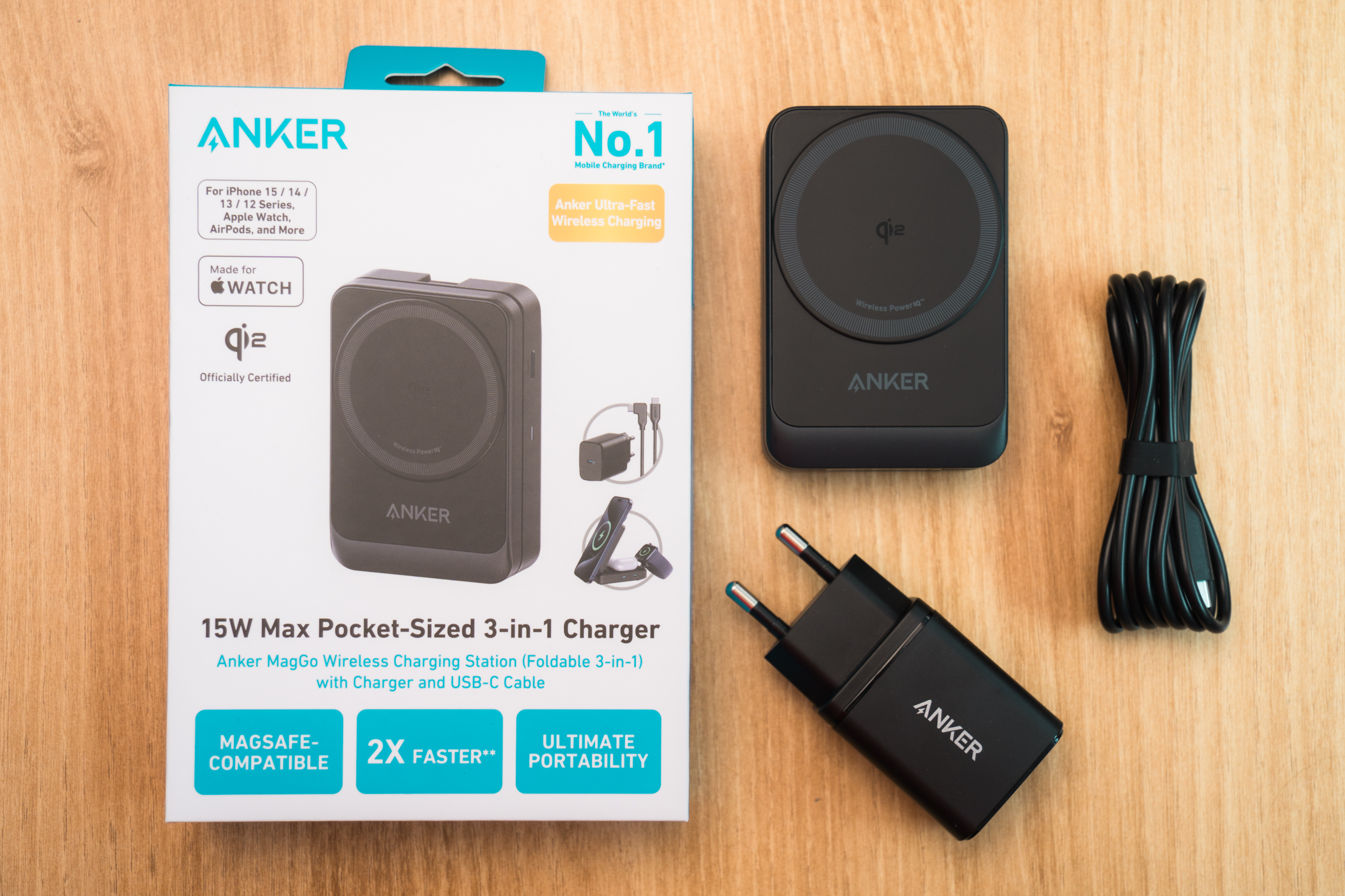오랜만에 구매한 앤커 제품. 아이폰과 애플 워치, 에어팟을 함께 충전할 수 있는 3 in 1 무선 충전기입니다. 기존 맥세이프 인증 대신 차세대 무선 충전 규격 Qi2를 채용했고 폴딩 방식으로 휴대성이 뛰어난 것이 장점입니다. 여행, 출장용으로 사용 할 올인원 무선 충전기를 찾던 차에 이 제품이 눈에 띄었어요. 마침 할인 행사를 통해 저렴하게 구매했고요.