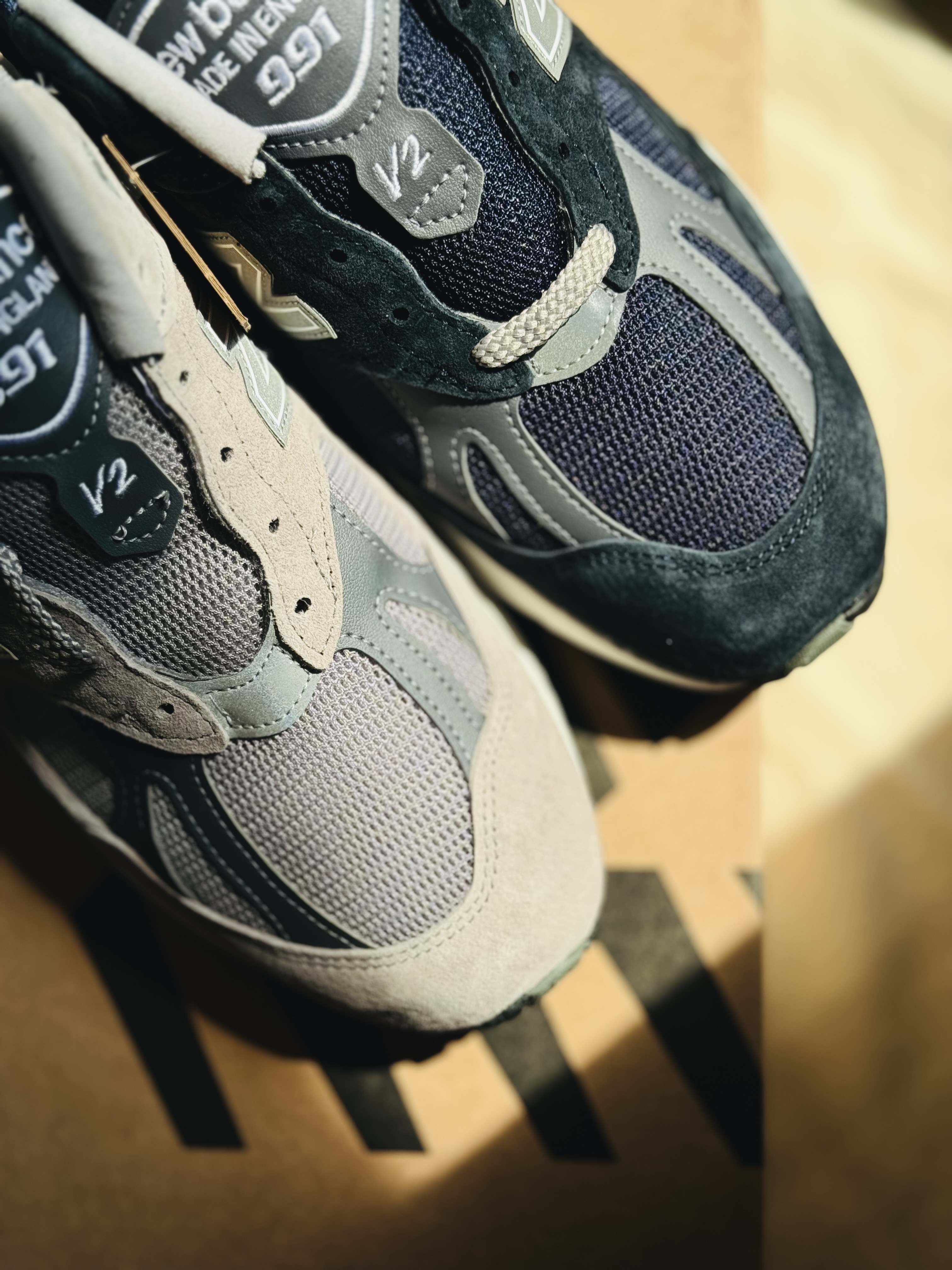 뉴발란스 신발에 관심을 갖게 되면서 자연스레 991 시리즈에 대한 욕심이 생겼습니다. 다른 시리즈보다 날렵한 실루엣이라 캐주얼 뿐 아니라 포멀한 옷차림에도 충분히 매치할 수 있다는 이야기에 혹해서. 1600과 990V6는 여행할 땐 좋았는데 좀 투박한 형태라 평소 옷차림에는 잘 안 어울리더라고요. 그러다 알게 된 것이 991V2입니다. 2023년 출시 된 신상품으로 20여년 전 출시한 991 모델의 업그레이드 버전.