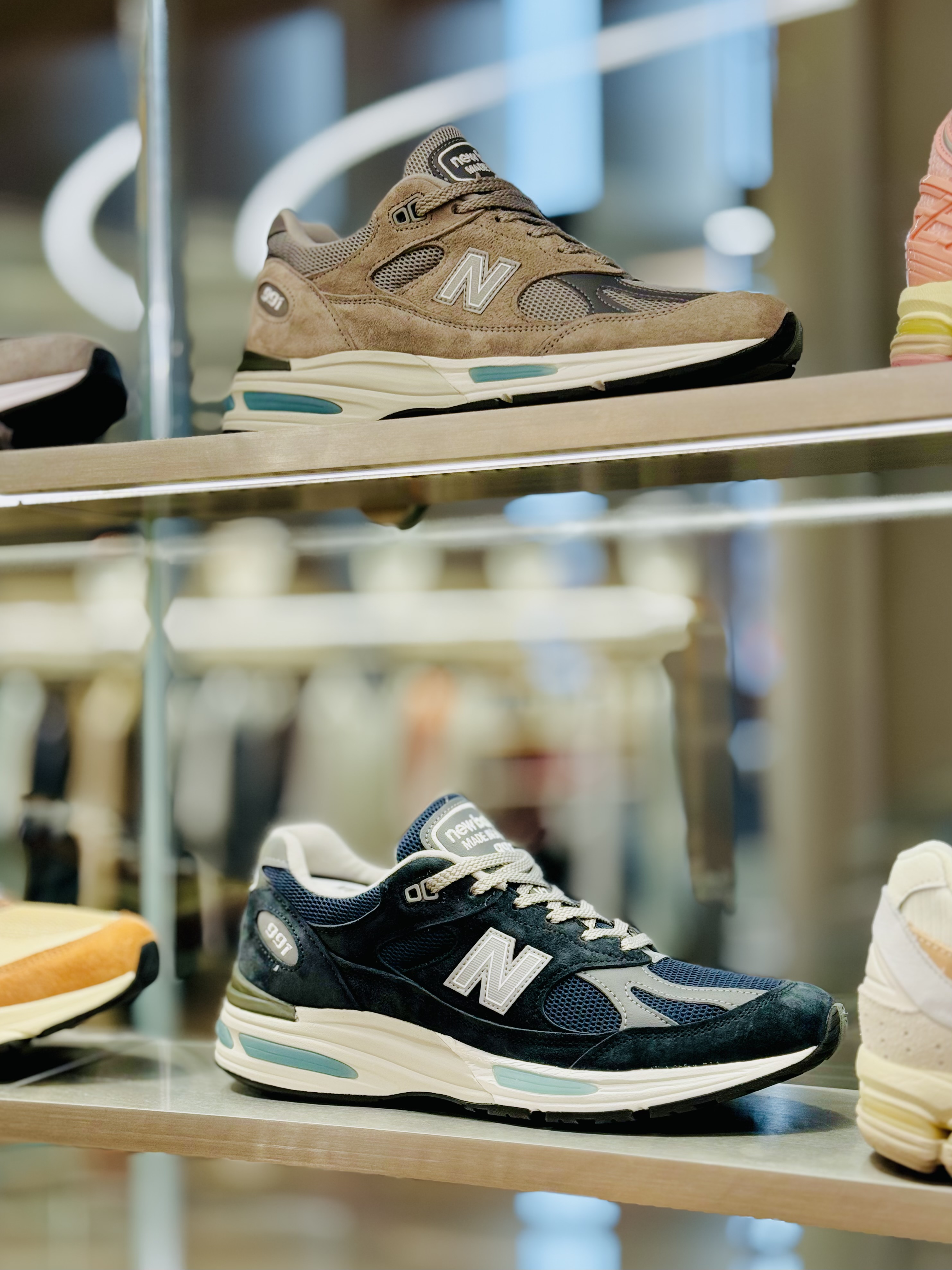 이 모델의 존재를 미국에서 뒤늦게 접했던 터라 뉴욕 시내에 있는 스토어들을 다니며 실물을 보았습니다. 뉴발란스 스토어에는 재고가 없었고 Kith 매장에 그레이, 네이비 두 모델이 있더군요. 991은 네이비가 최고라는 세간의 평, 뉴발란스의 정신인 그레이 컬러 사이에서 잠시 고민했지만 그 고민이 무색하게도 그레이 모델은 남성 사이즈가 모두 품절이었습니다.