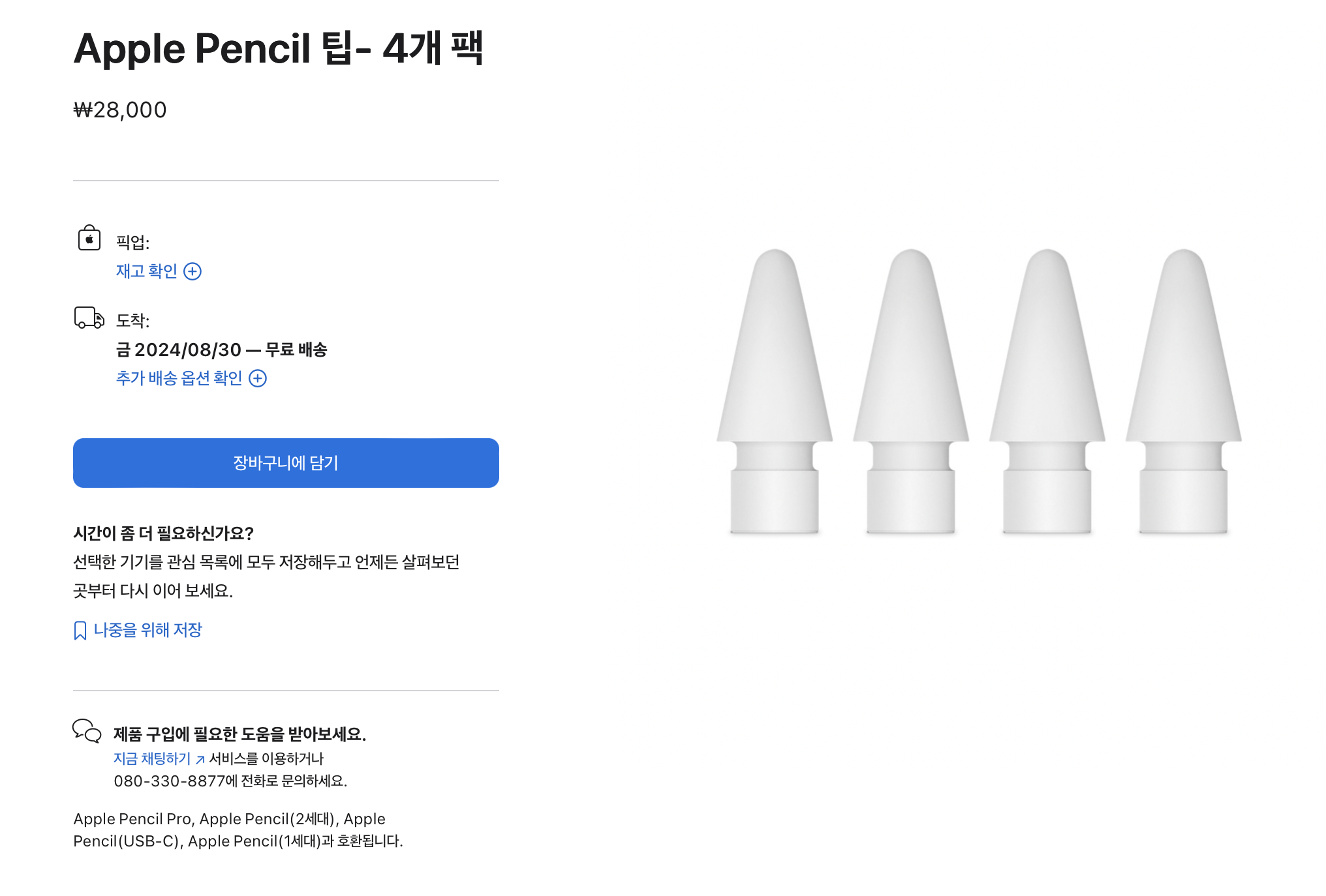 펜슬 팁을 구매했습니다. 정품의 가격은 28000원. 네 개가 한 세트니 개당 7000원입니다. 사고에 비하면 가벼운 지출이지만 저 작은 플라스틱 덩어리의 가격 치고는 호되게 비싼 것이기에 호환품을 사 볼까도 했지만 평이 하나같이 극명하게 나뉘더라고요. 아예 인식을 하지 않는다는 것부터 스퀴즈, 호버링 등 특정 기능이 동작하지 않는다는 얘기, 새제품을 받을 때부터 이미 변색이 되어 있었다는 것까지. 고민 끝에 정품을 구매하기로 했습니다.