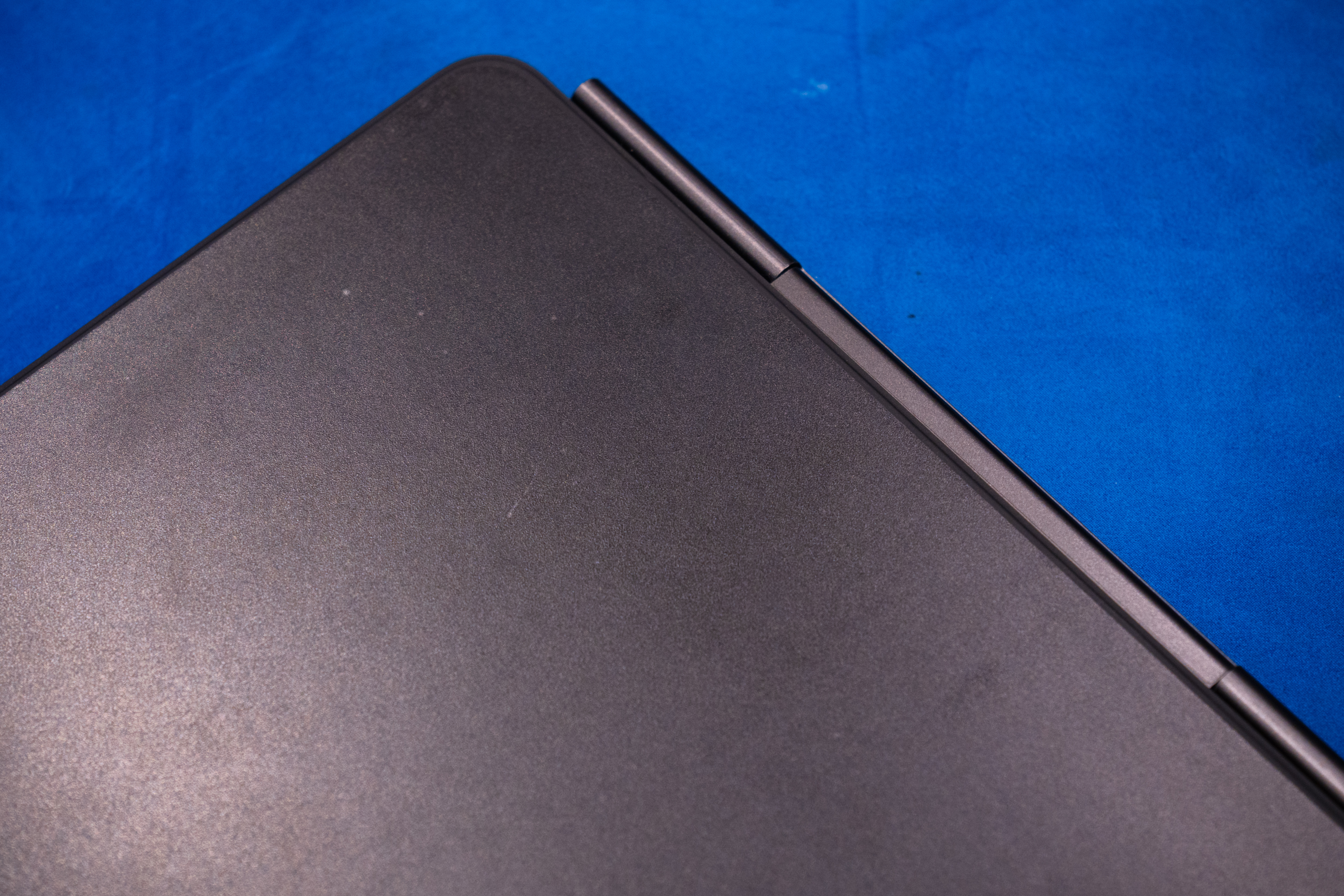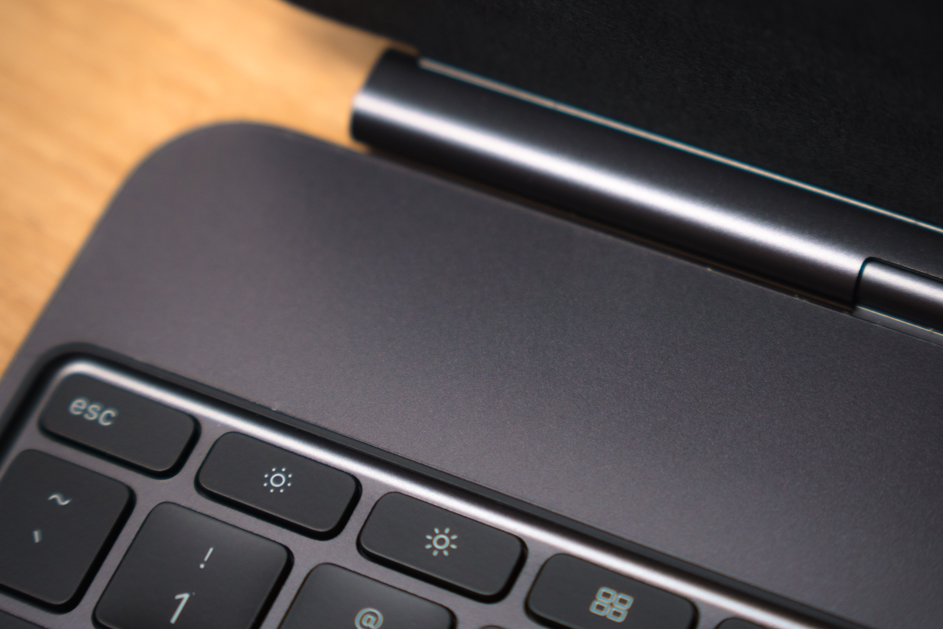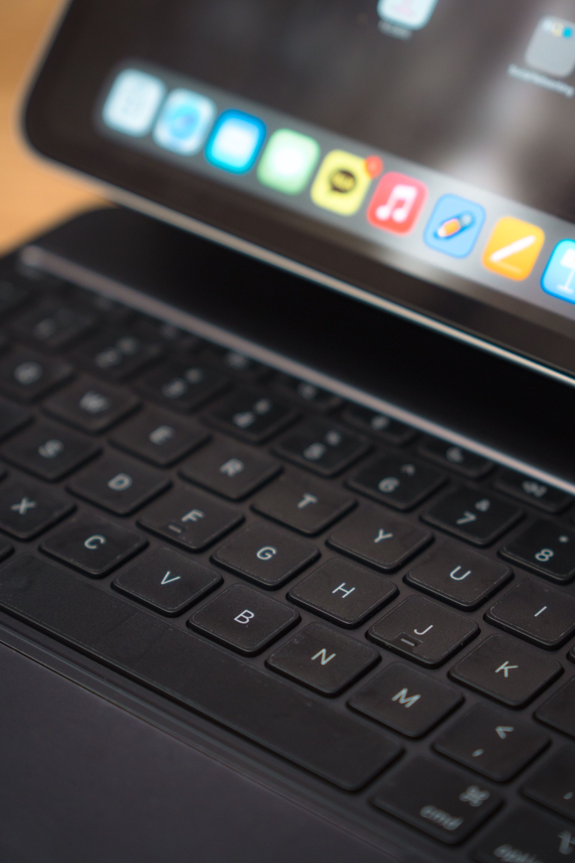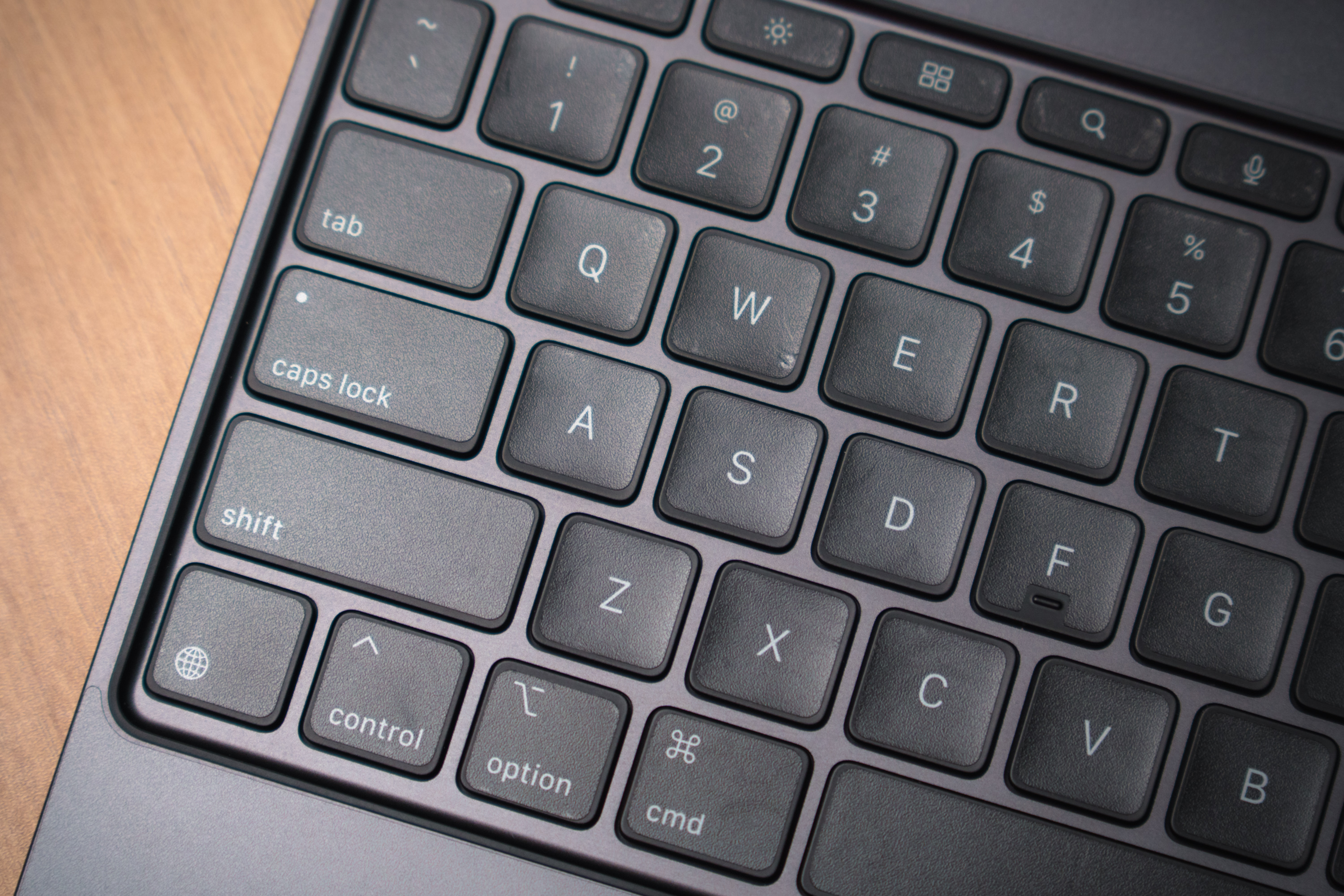 내구성 역시 끊임없이 지적돼 왔습니다. 과거 키보드 폴리오 시절엔 모서리가 찢기거나 벌어지기 일쑤였고 아예 벗겨지기까지 했다죠. 새 모델을 받아보니 11인치 아이패드 프로와 함께 사용했던 이전 모델보다 나아지긴 했습니다. 팜레스트쪽 소재가 메탈로 바뀌면서 내구성뿐 아니라 오염도 덜 신경쓰게 됐어요. 외부 소재도 전보다 단단한 느낌입니다만 소재 특성상 스크래치나 찍힘 등의 사용감이 쉽게 드러나는 건 여전해요. 그래서 보호 필름을 사용해 보기로 했습니다.