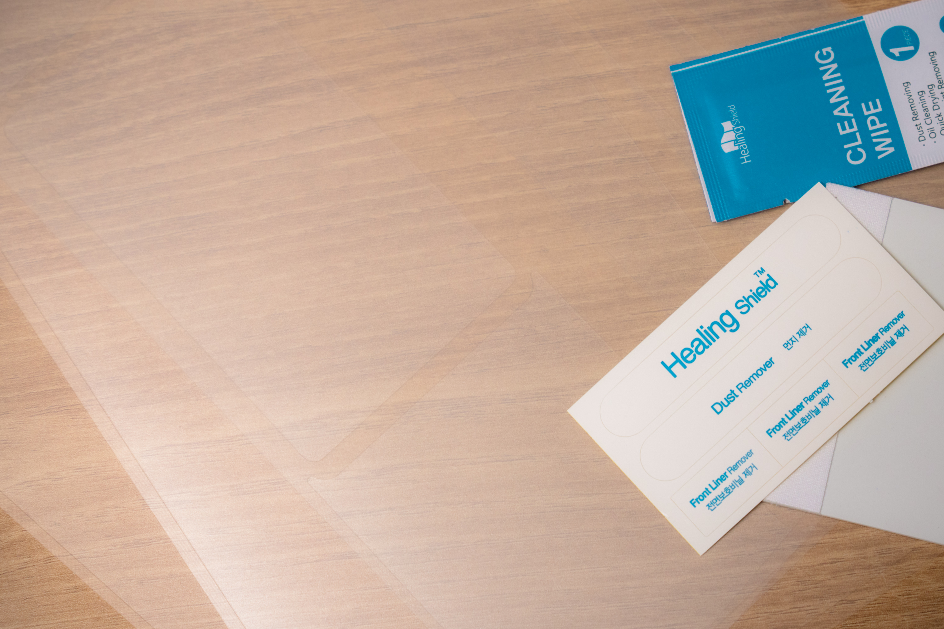 패키지엔 파츠별 보호필름 총 3장과 클리닝용 알콜스왑, 비닐제거/먼지 제거용 스티커, 밀개, 설명서가 있습니다.